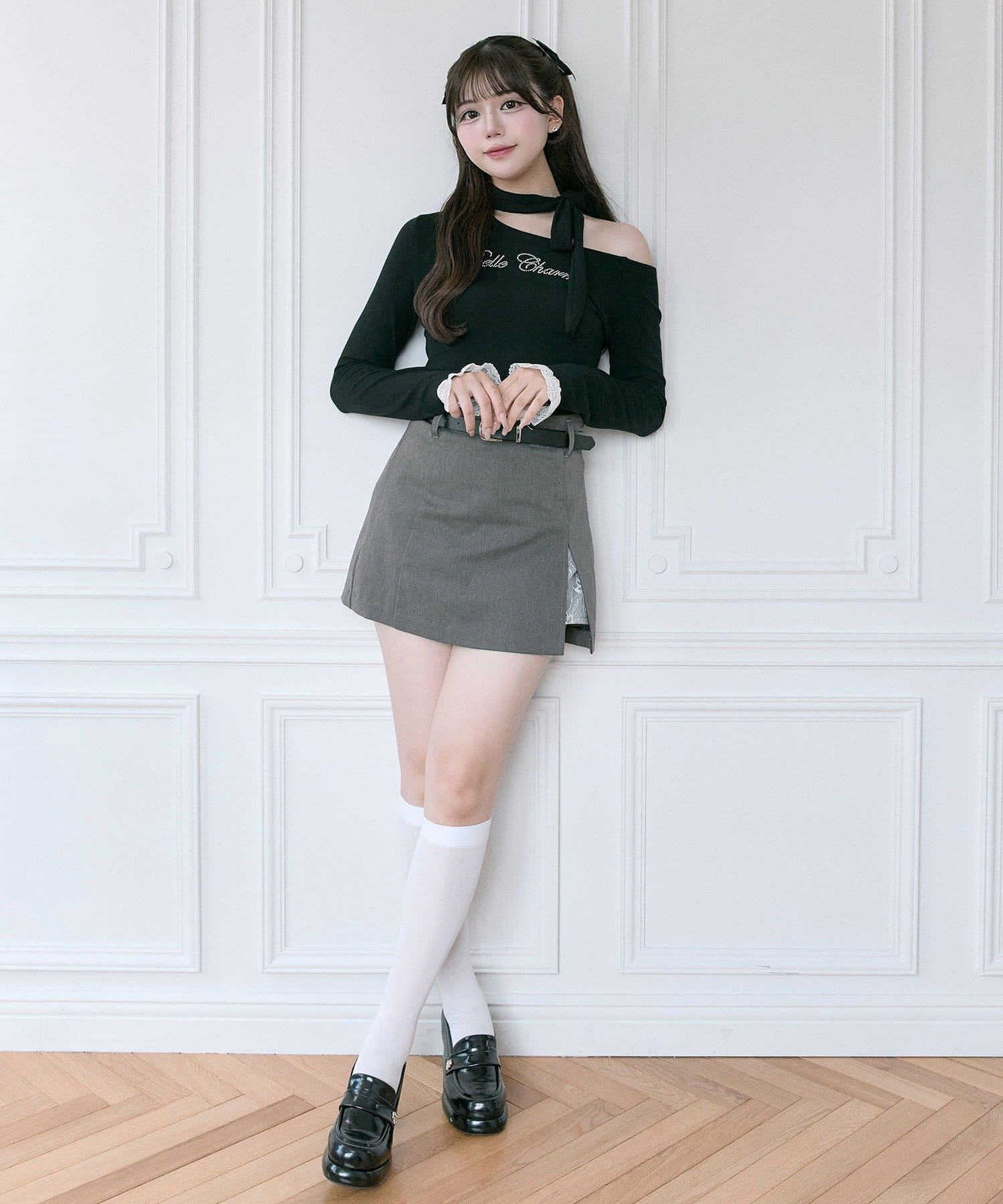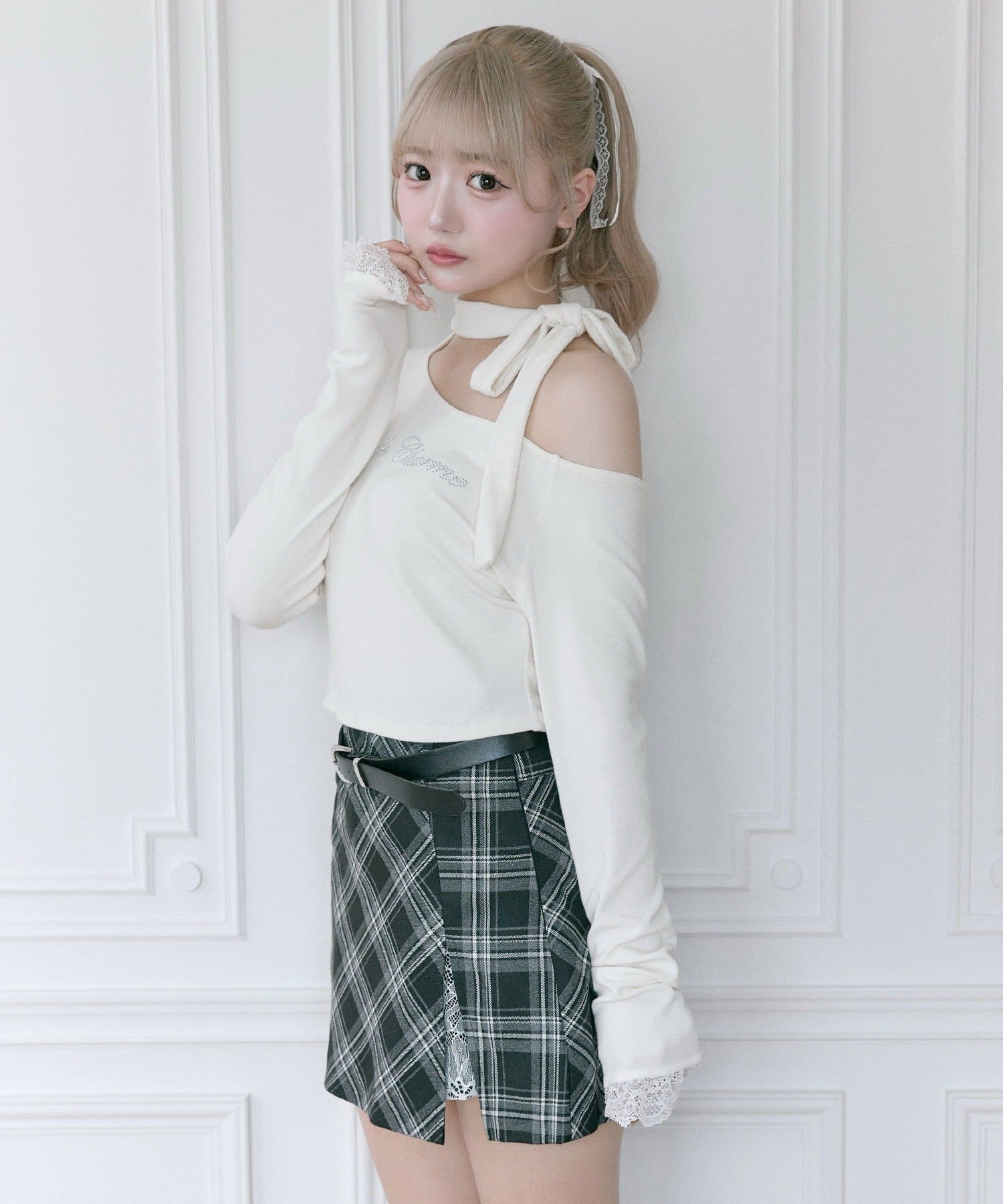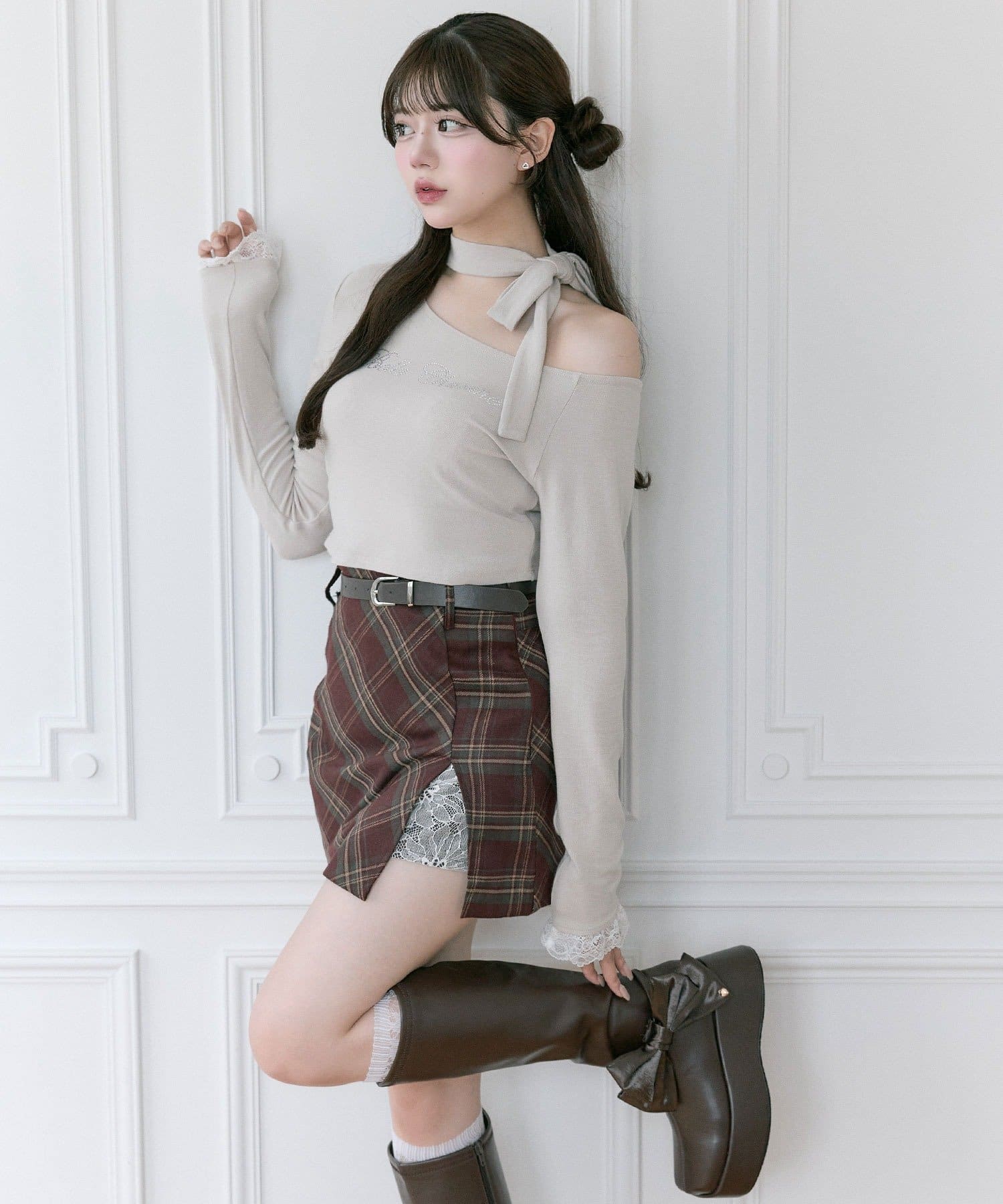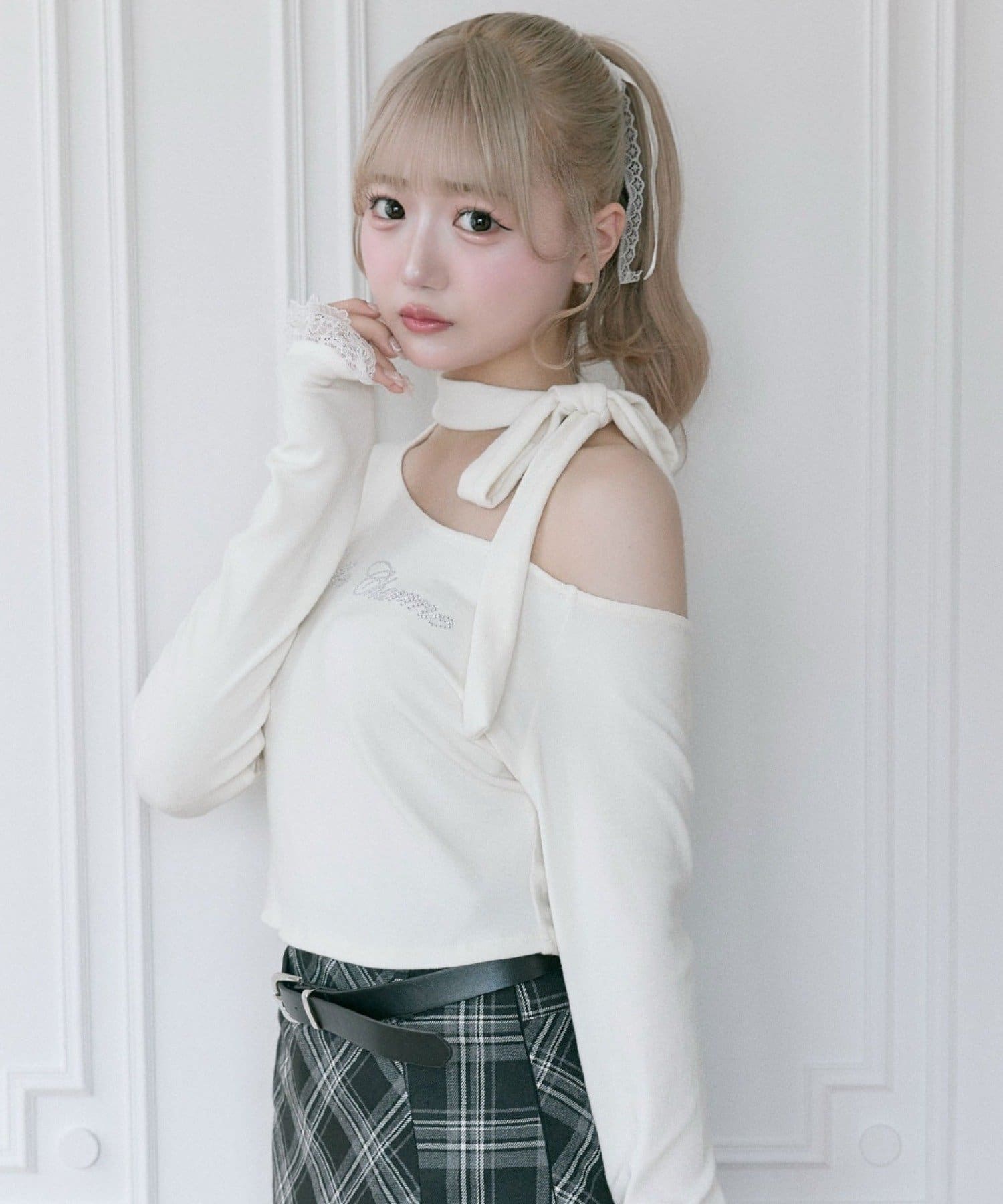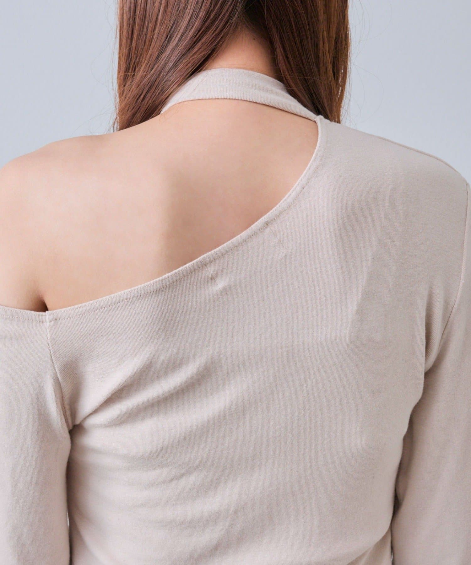 ・華奢見えするワンショルで、首元は広めに開いてるのでチョーカーをしても詰まらずすっきりと着こなせます。