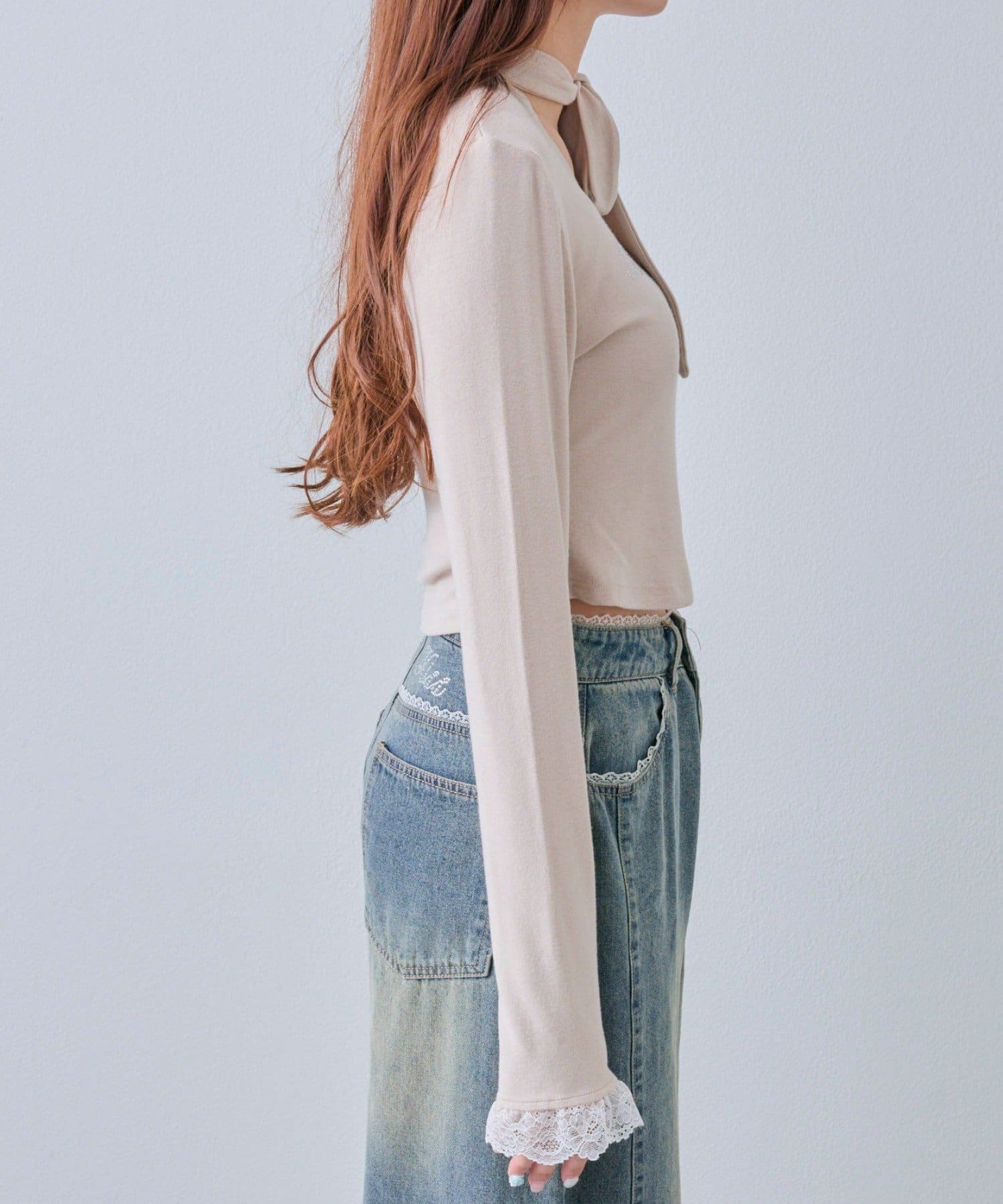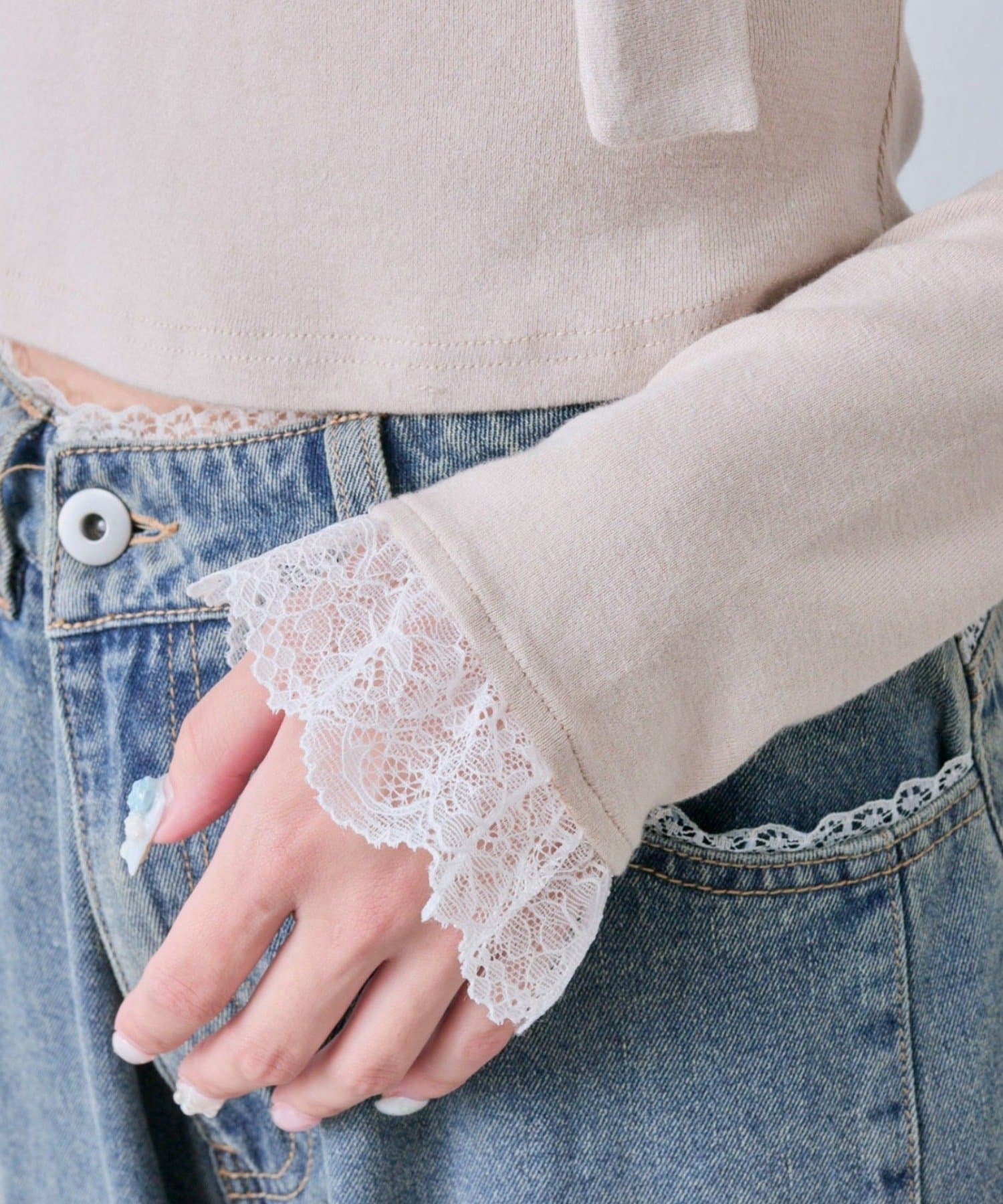 ・袖にはさりげないレース付きで、手元までかわいいデザインです。