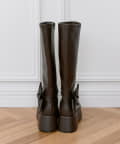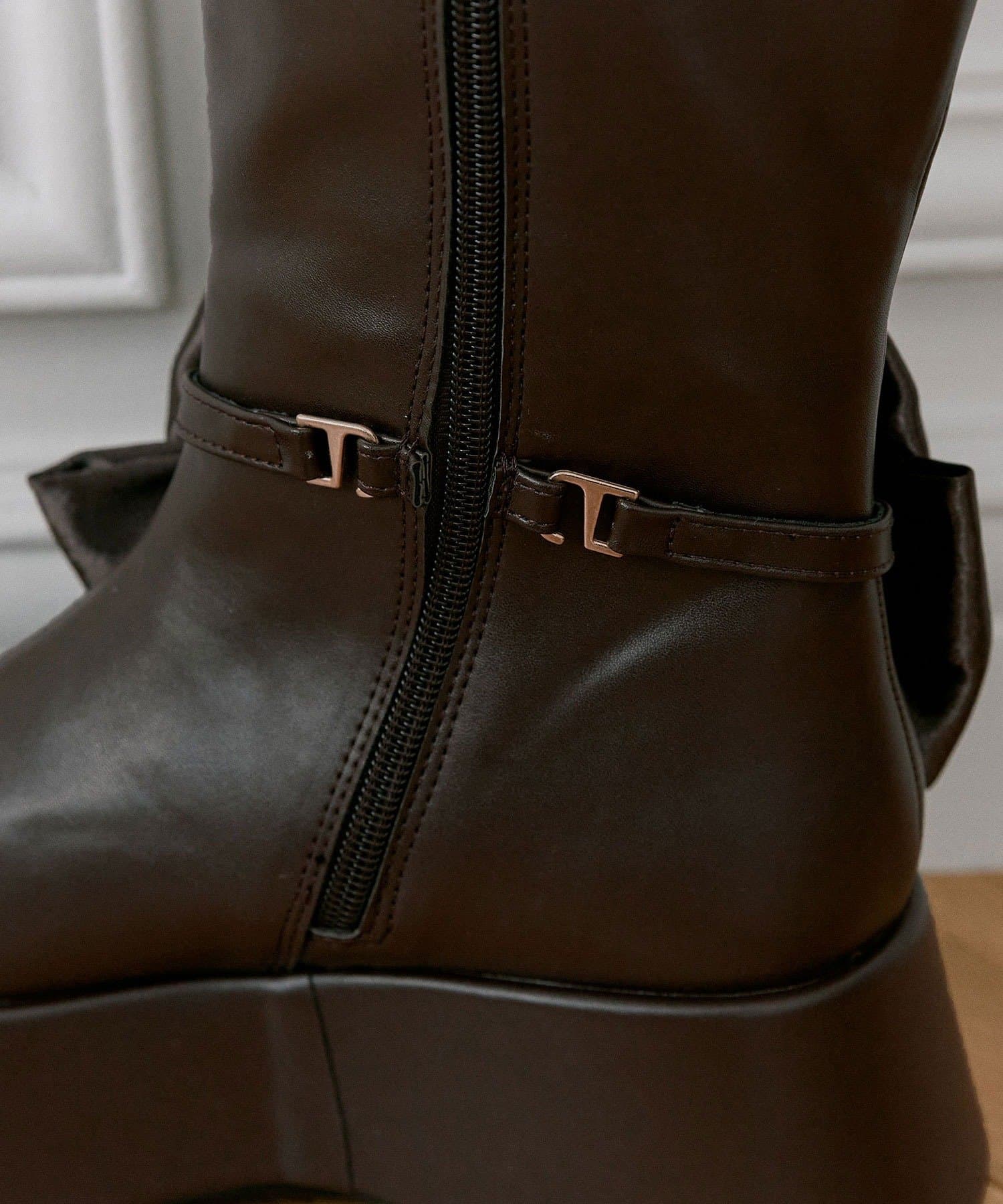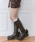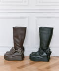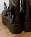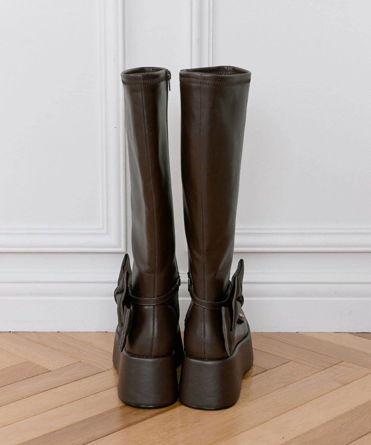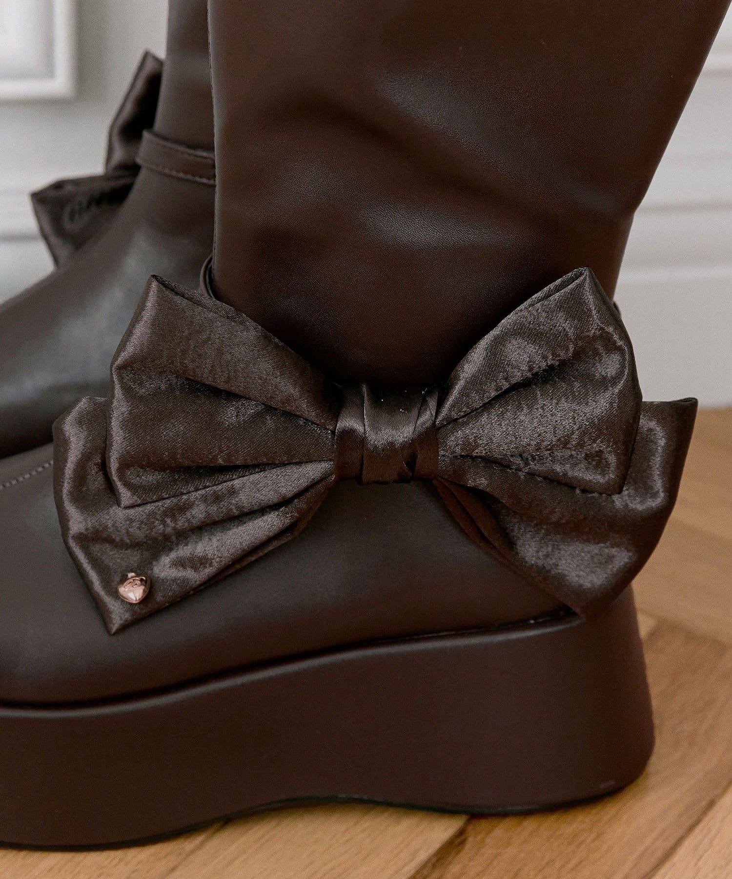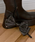 ・リボン付きで甘さがありつつ、スクエアトゥできっちり見えするロングブーツ。