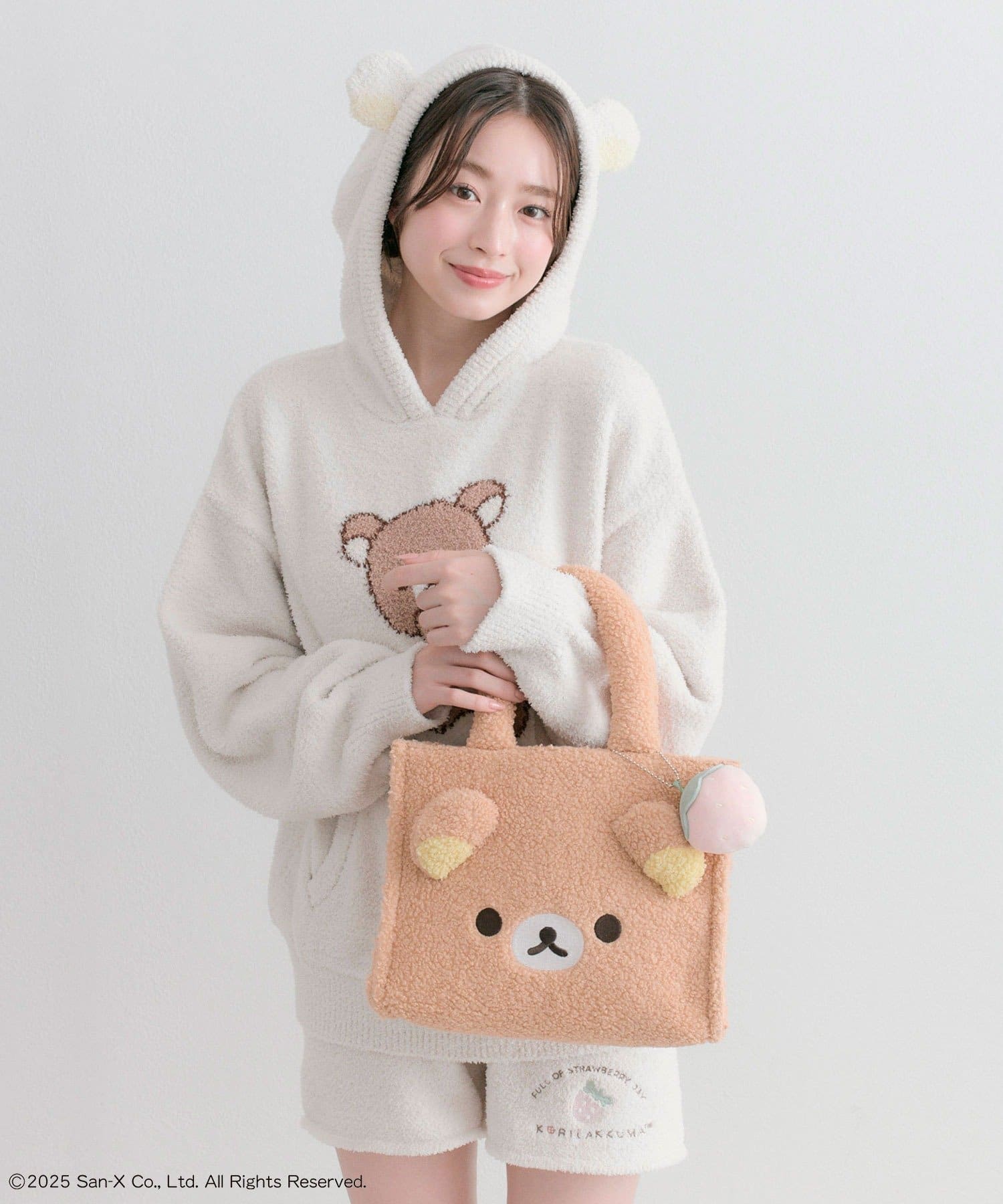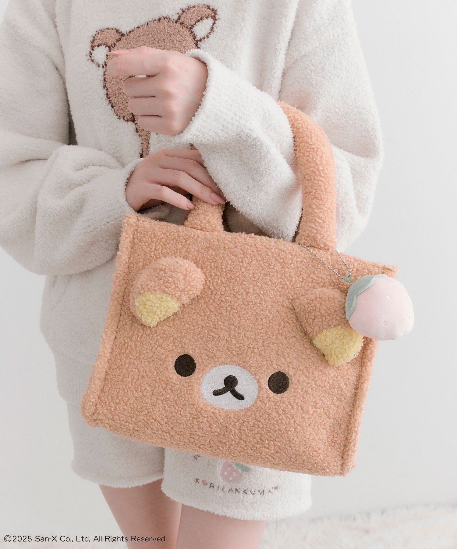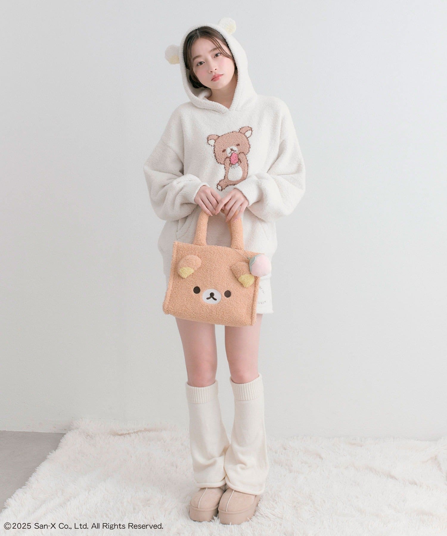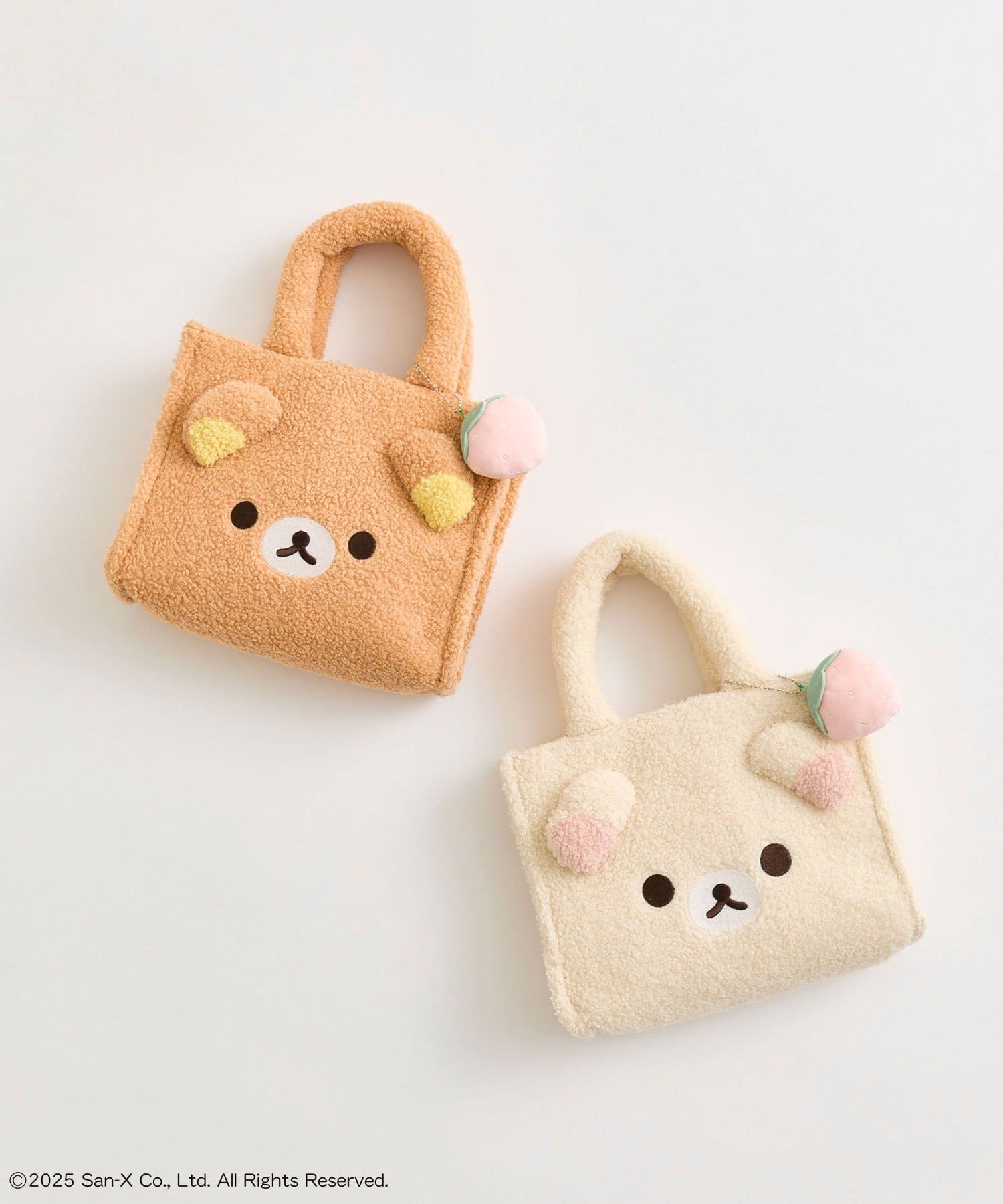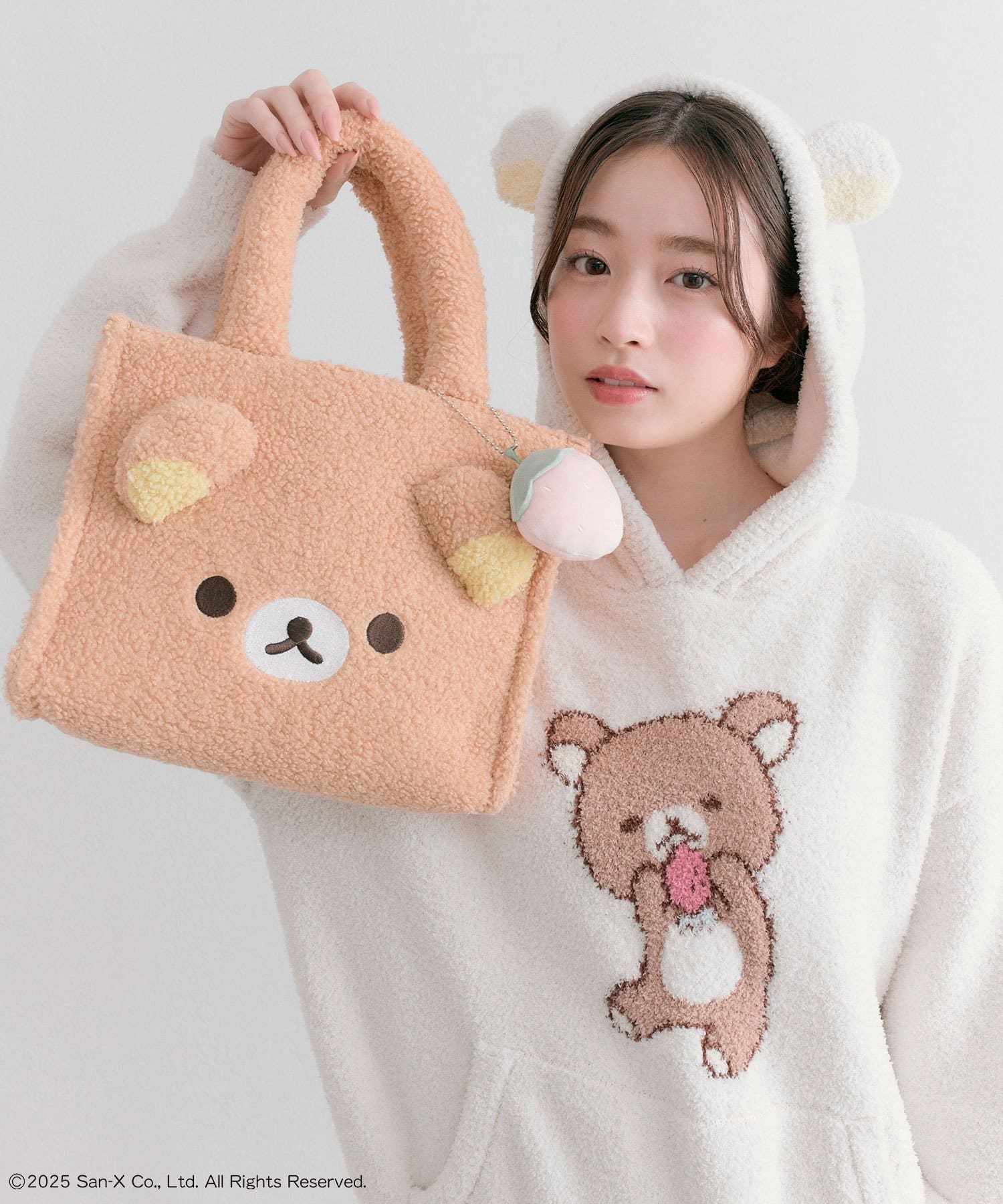 ・ふわふわのボアにリラックマたちの顔の刺繍と立体の耳がかわいいトートバッグ。