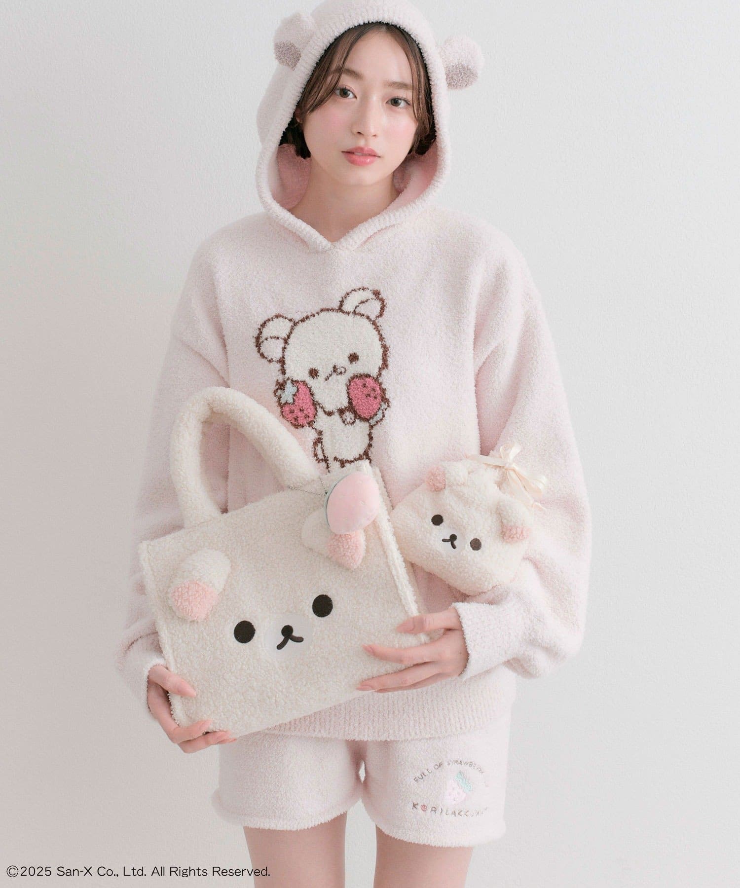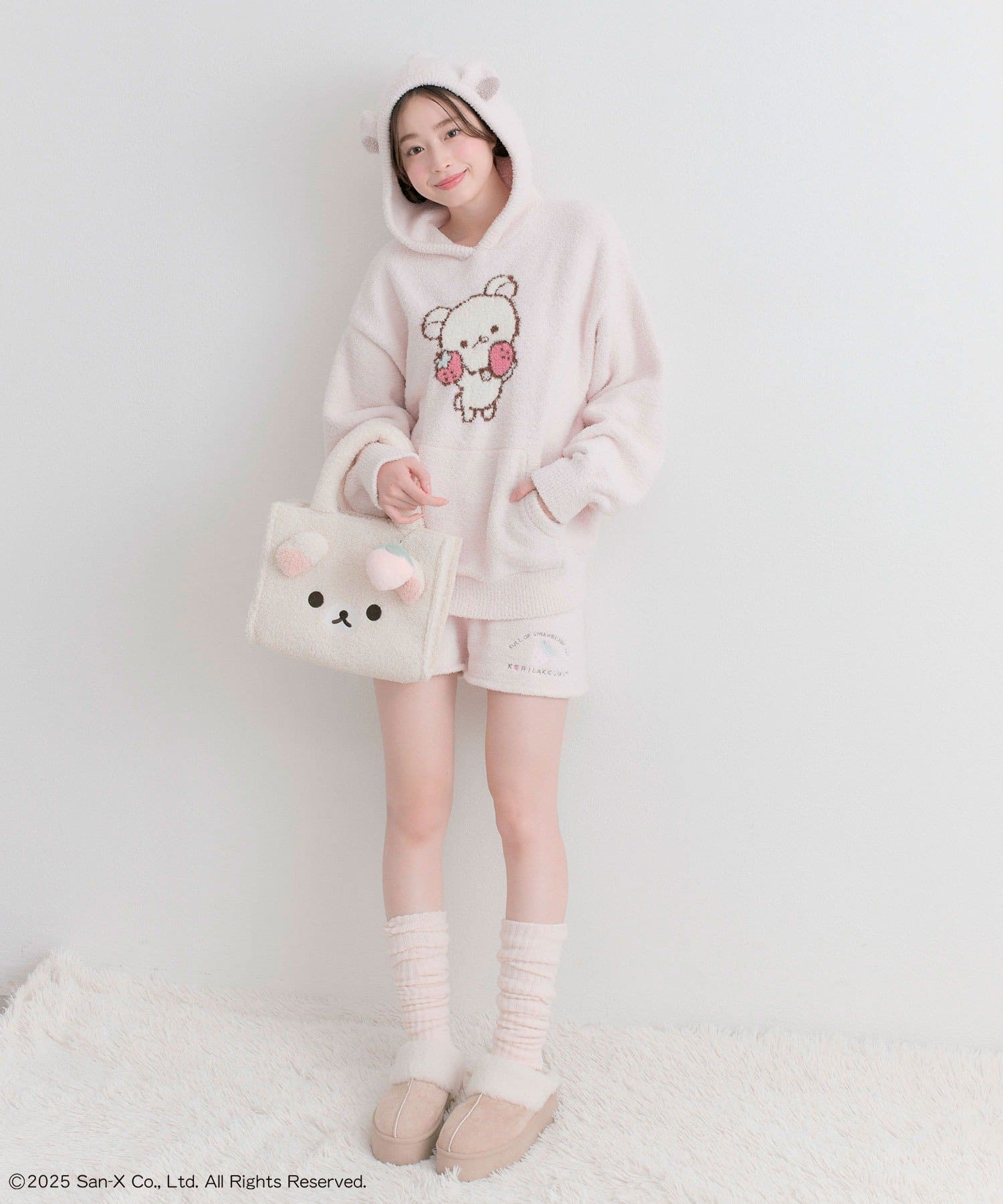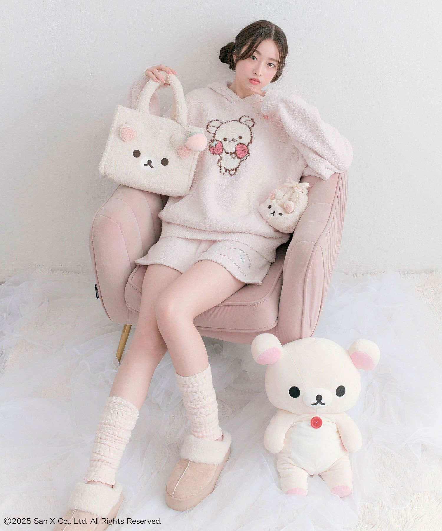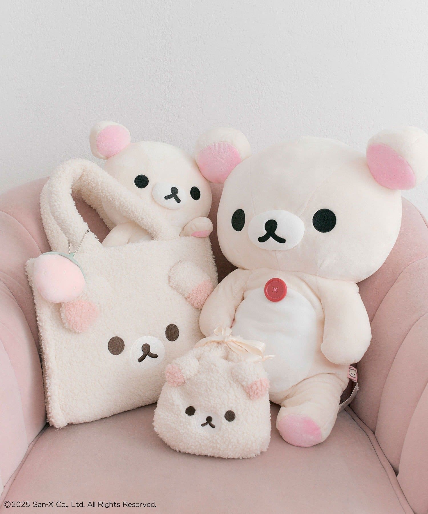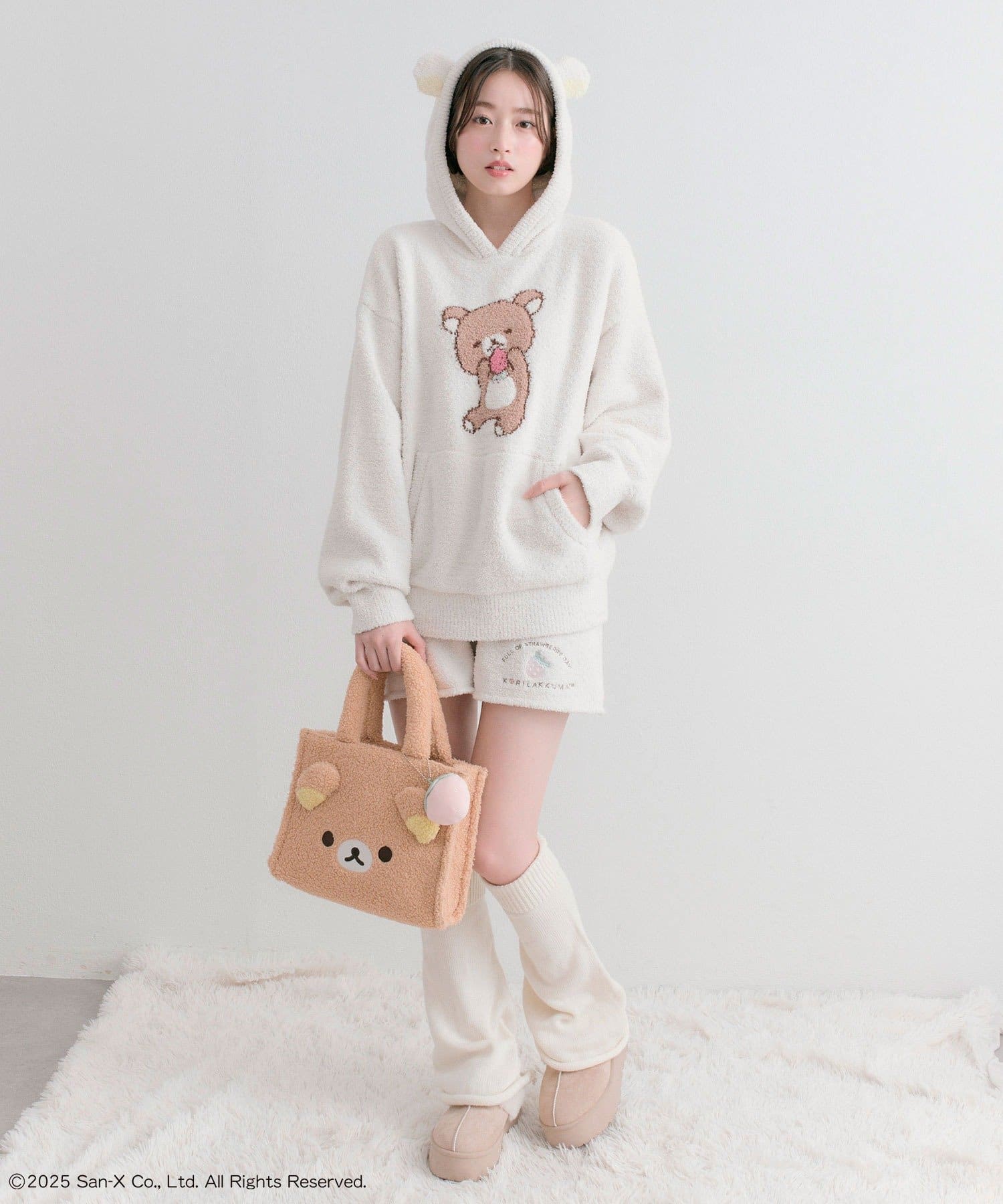 ・ふわふわのボアにリラックマたちの顔の刺繍と立体の耳がかわいいトートバッグ。
