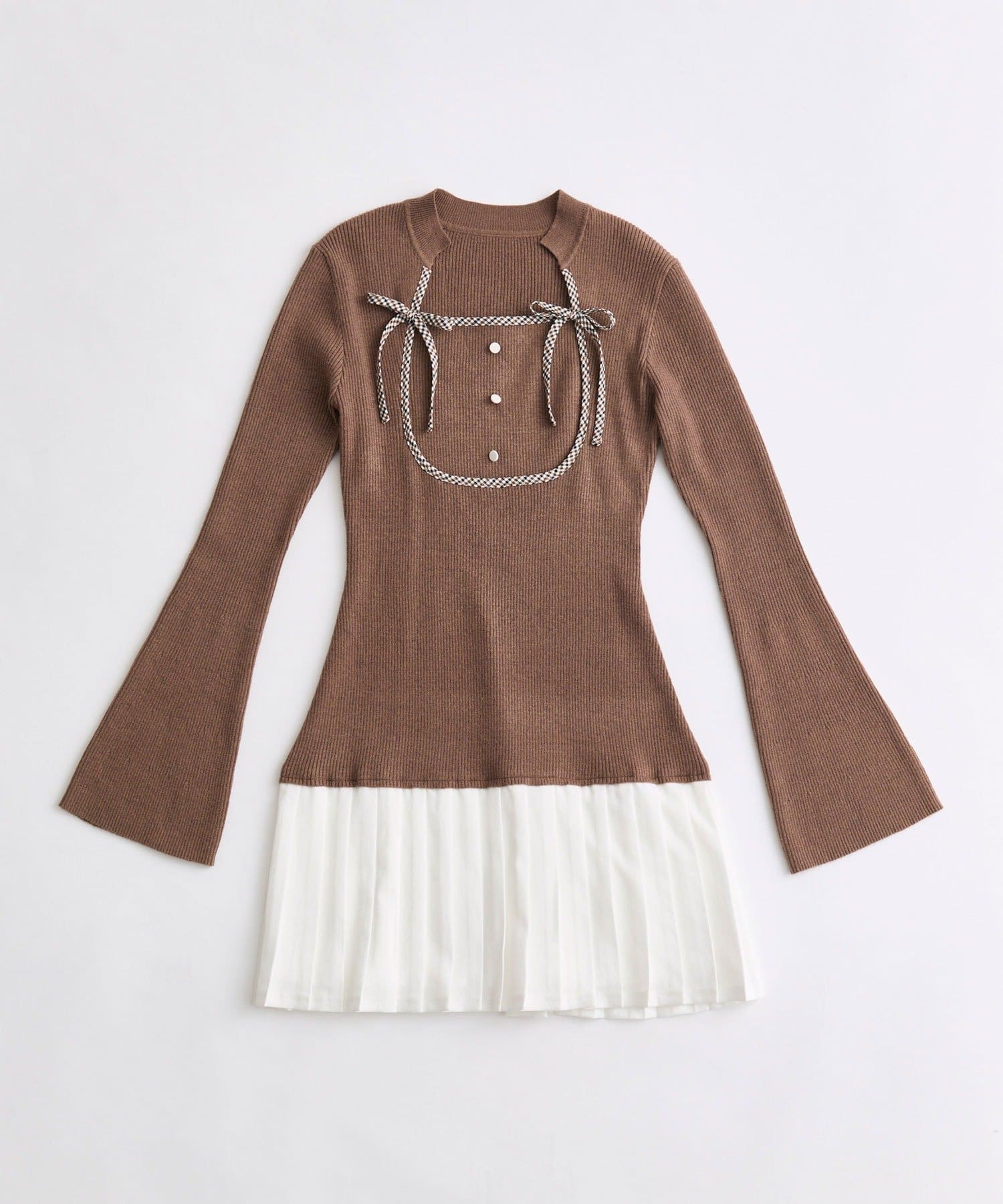 ・裾は異素材のプリーツスカートでタイトになりすぎず、体型を気にせずに着用していただけます。