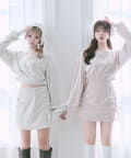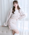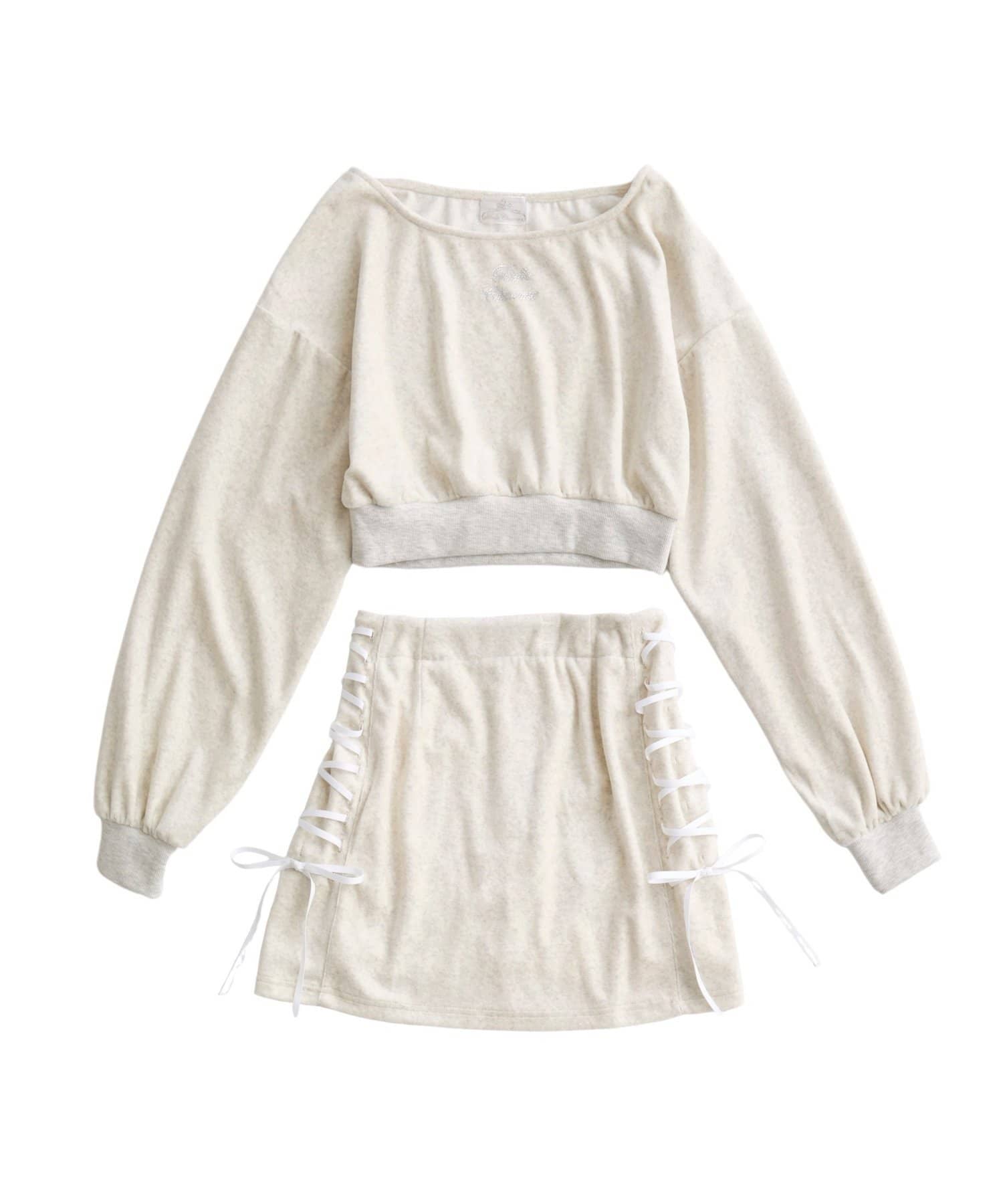 ・高見えするベロア素材でも楽ちんに着れる、トップスとスカートのセットアップ。