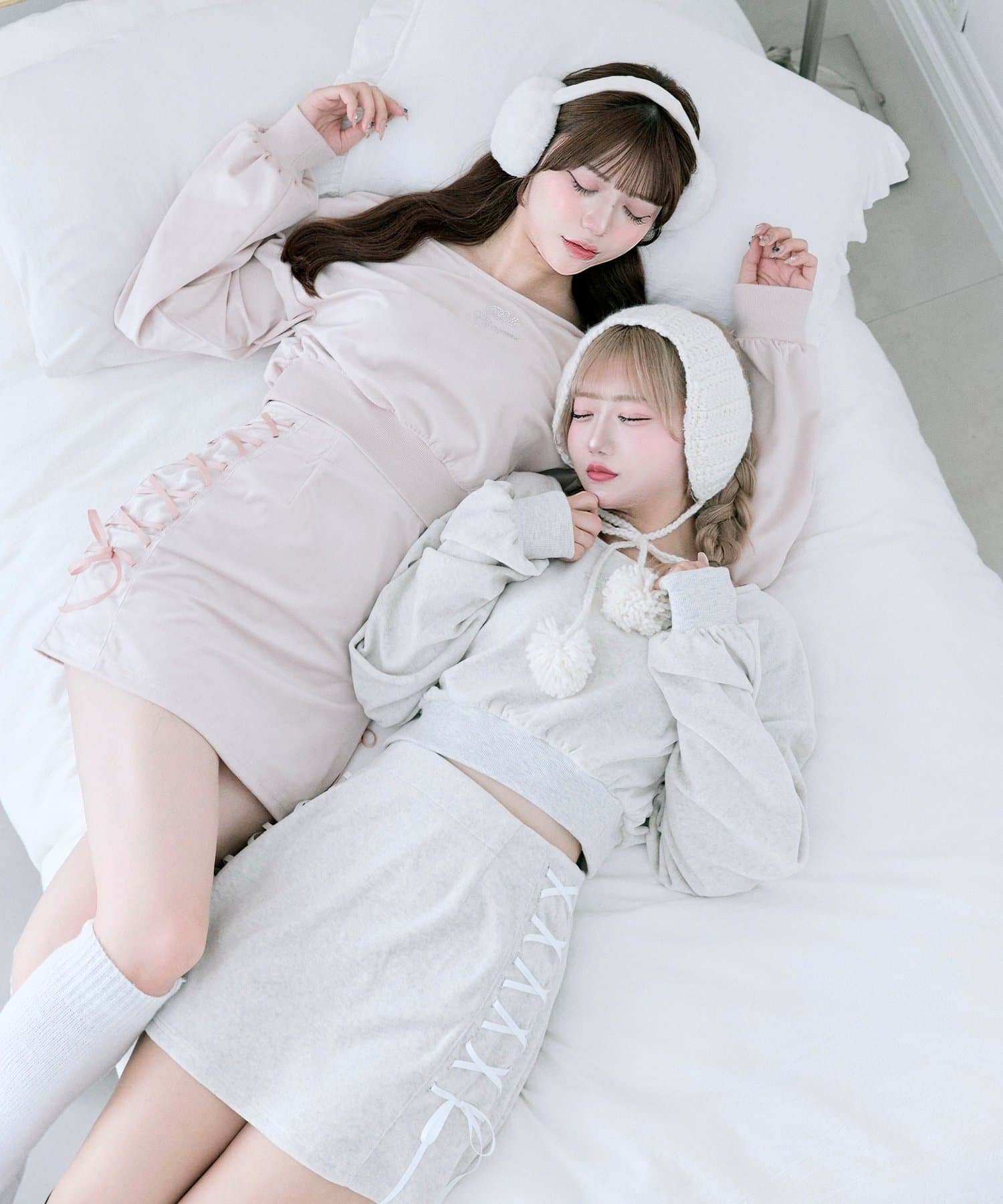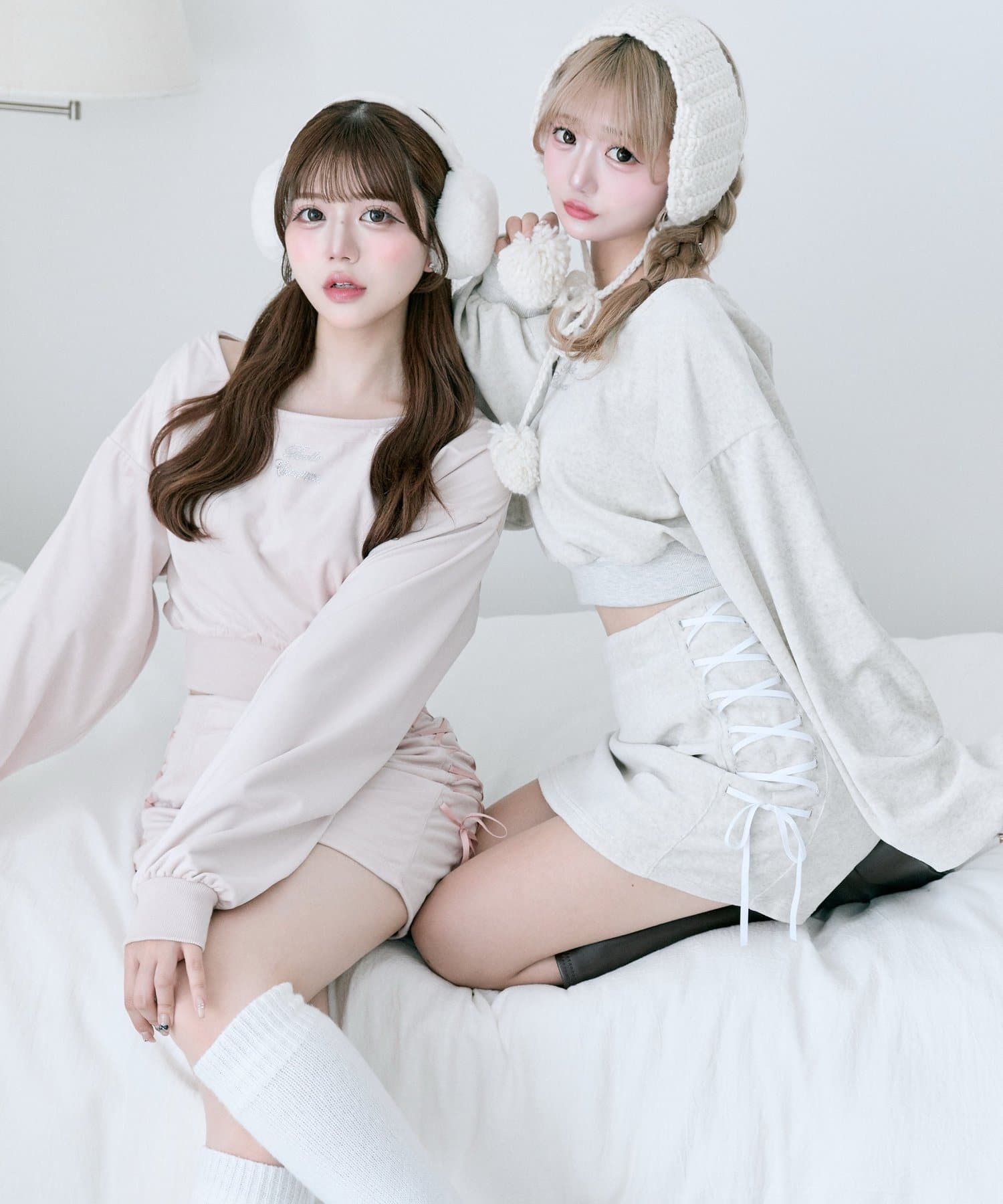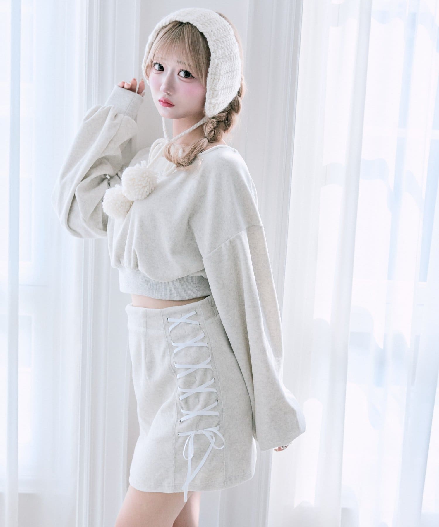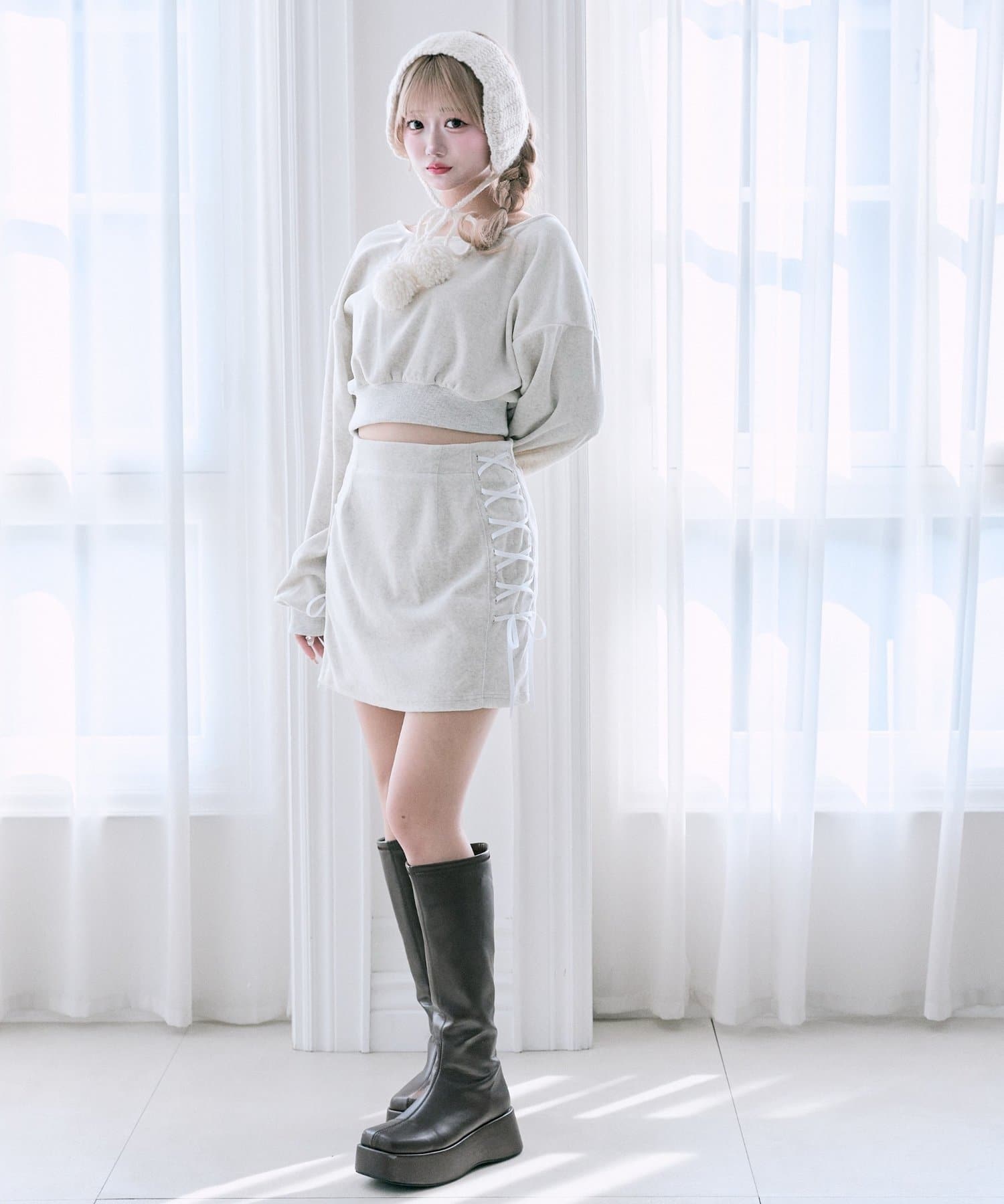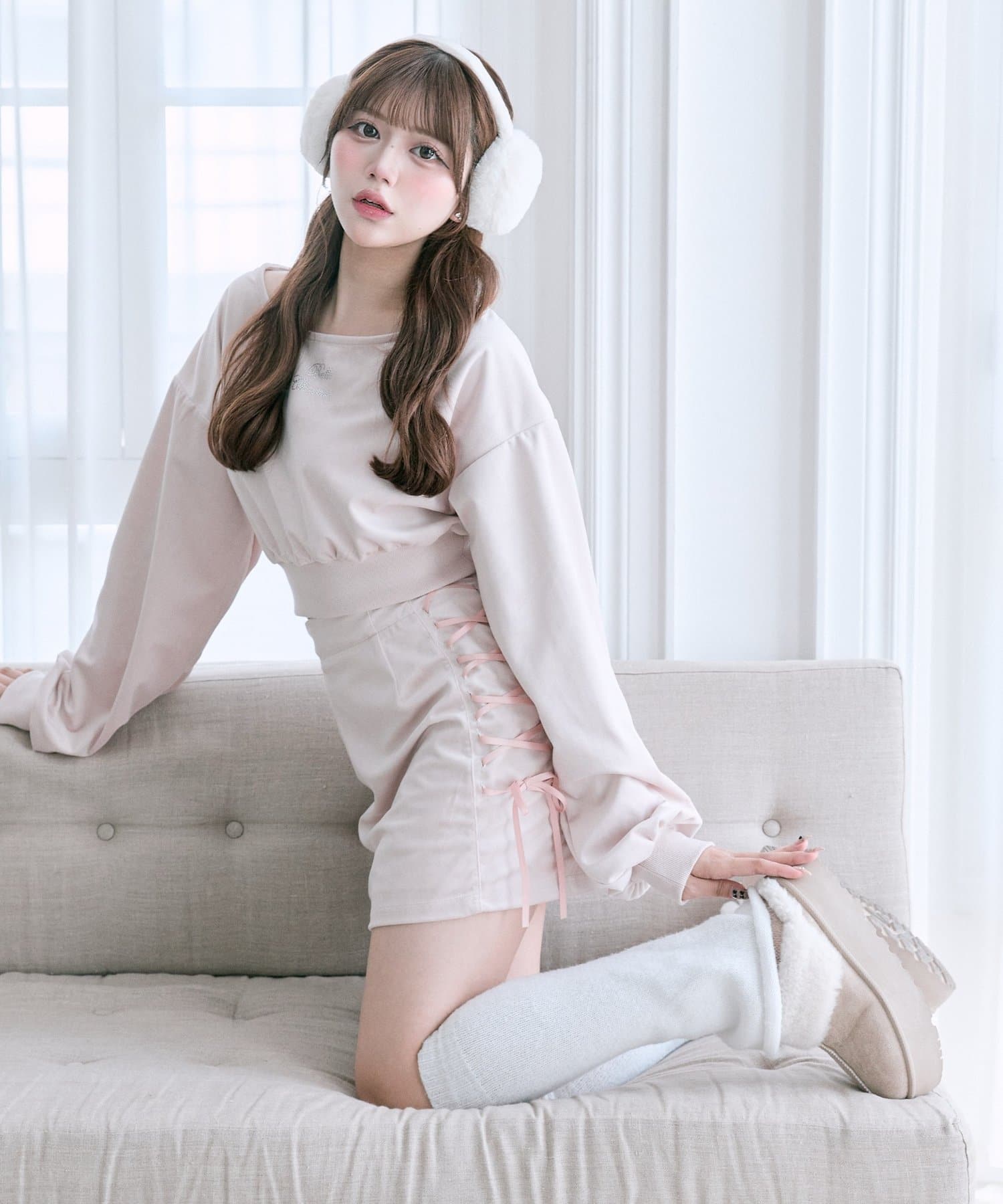 ・スカートはサイドのレースアップがポイントで、どこから見てもかわいいデザイン。