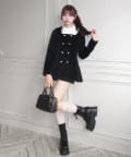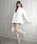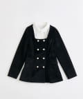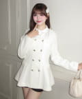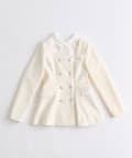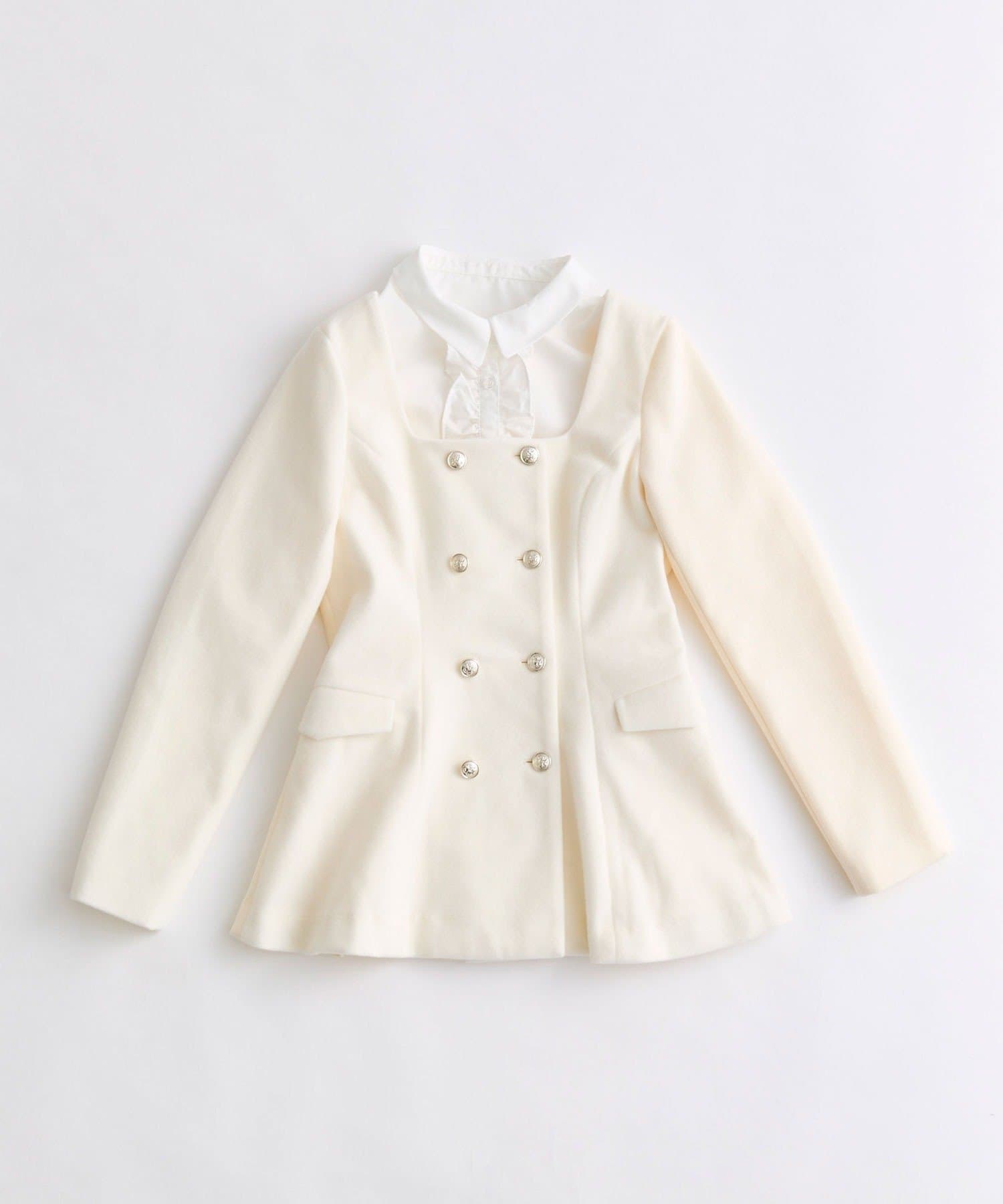 ・フリル襟のブラウスをレイヤードしているようなデザインで、金ボタンが上品見えするジャケット。