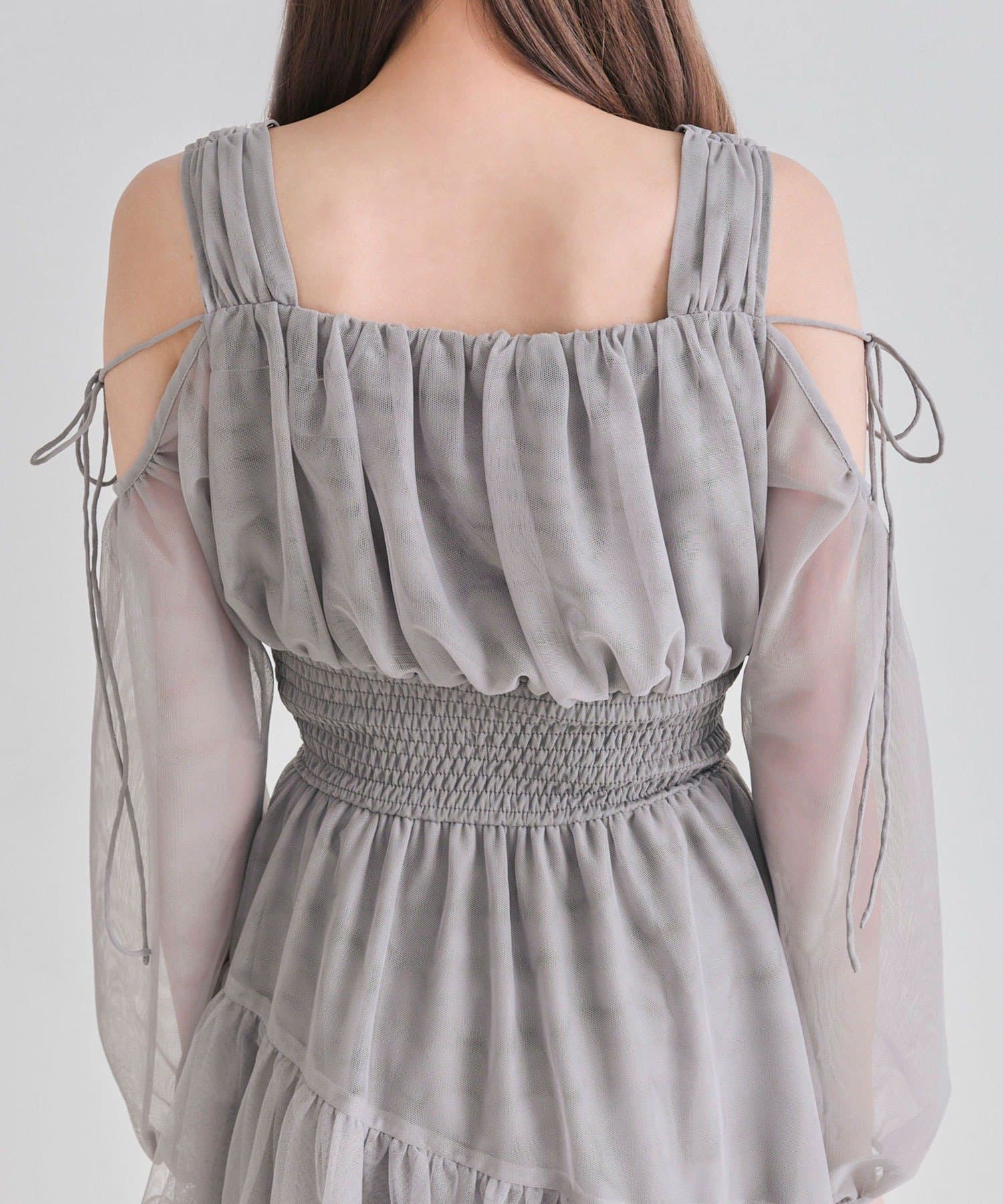 ・膝下と袖の透け感や肩のリボンがポイントで、上品な甘さを引き立ててくれます。