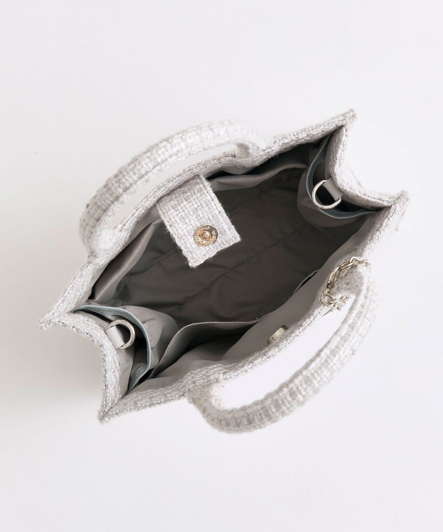 ・高見え間違いなしなツイード生地に、オリジナルのロゴ刺繍を施したミニサイズのトートバッグ。