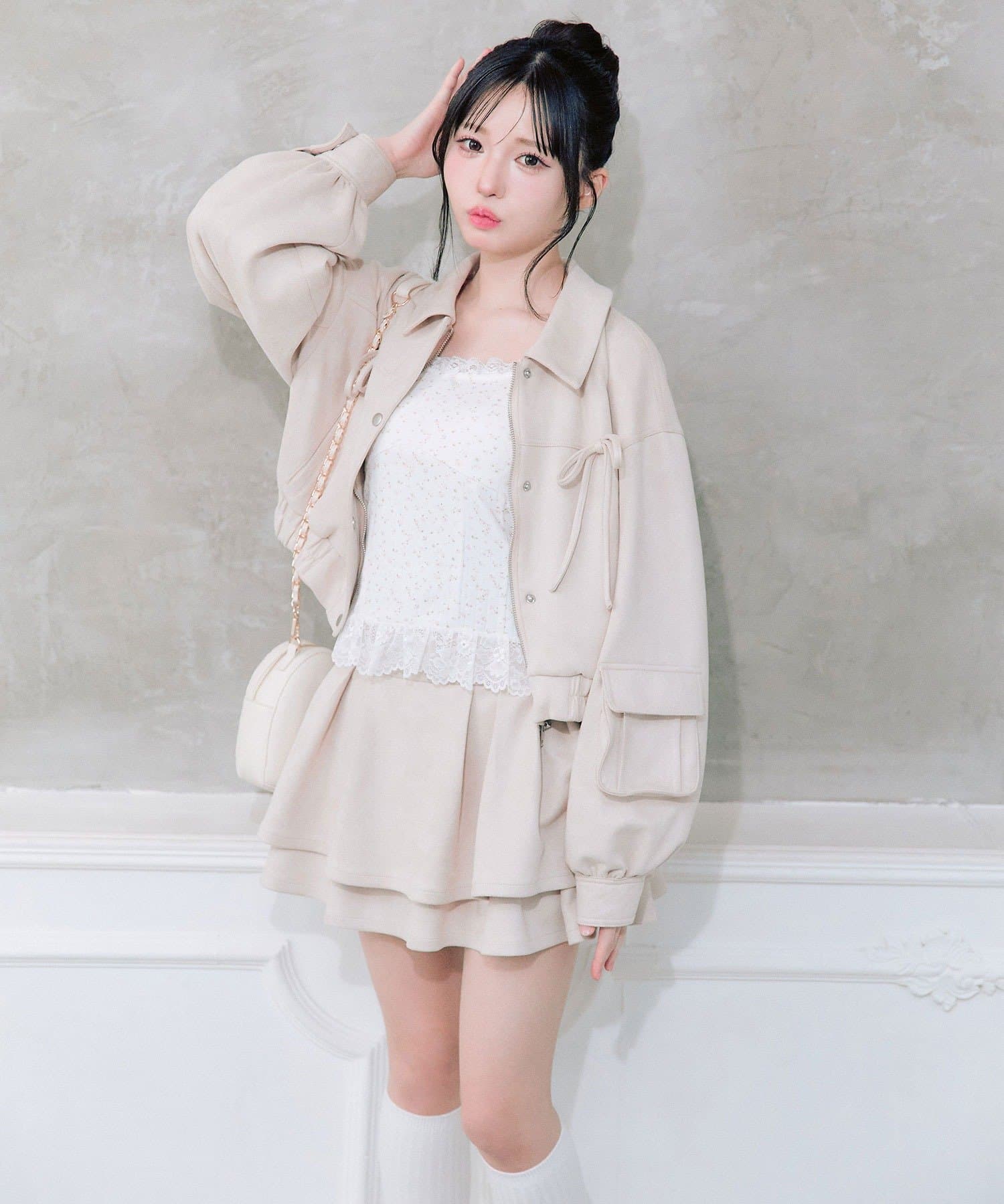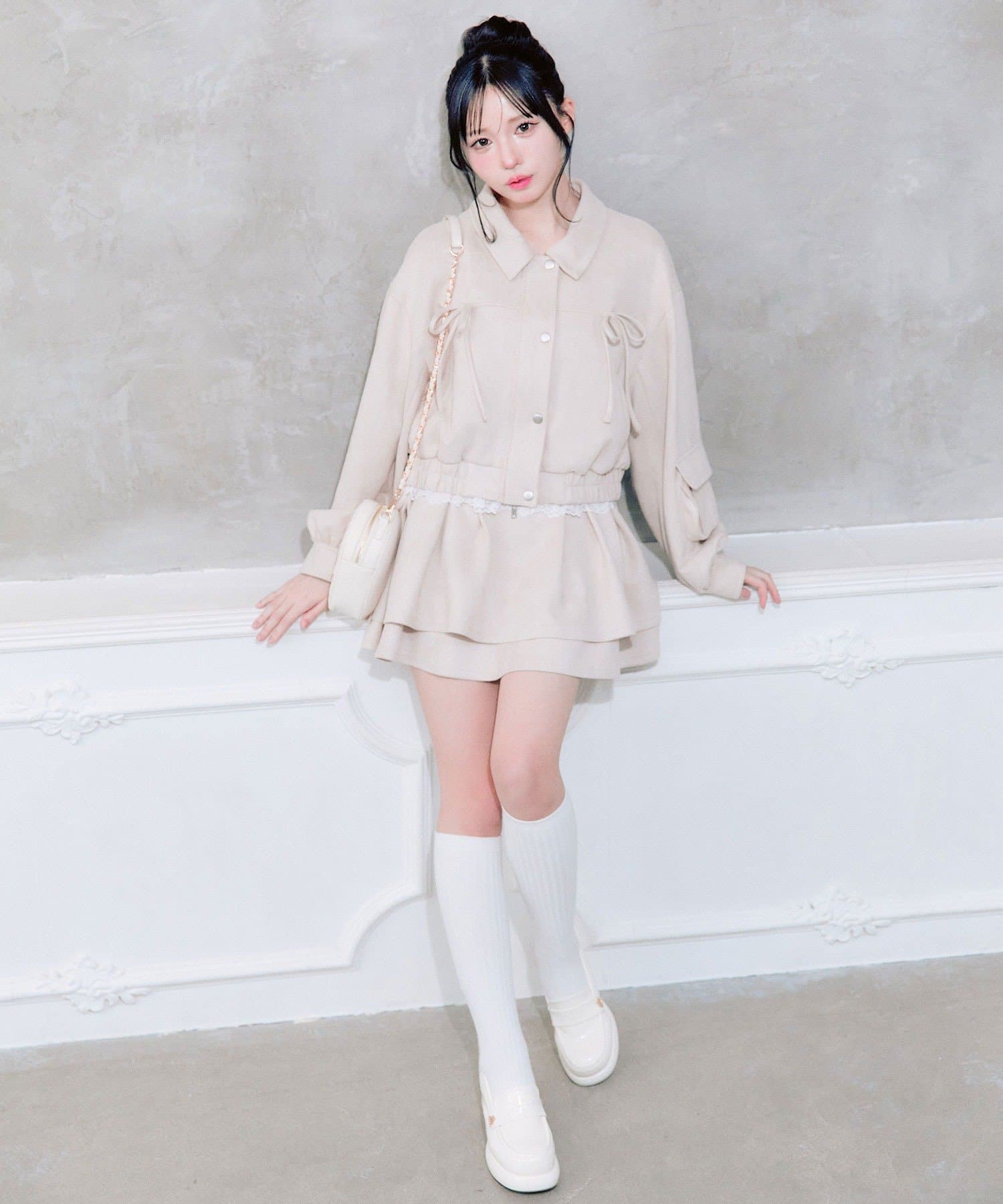 ・レースアップリボンがアクセントで、ウエスト周りをすっきり見せつつ可愛らしさをプラスします。