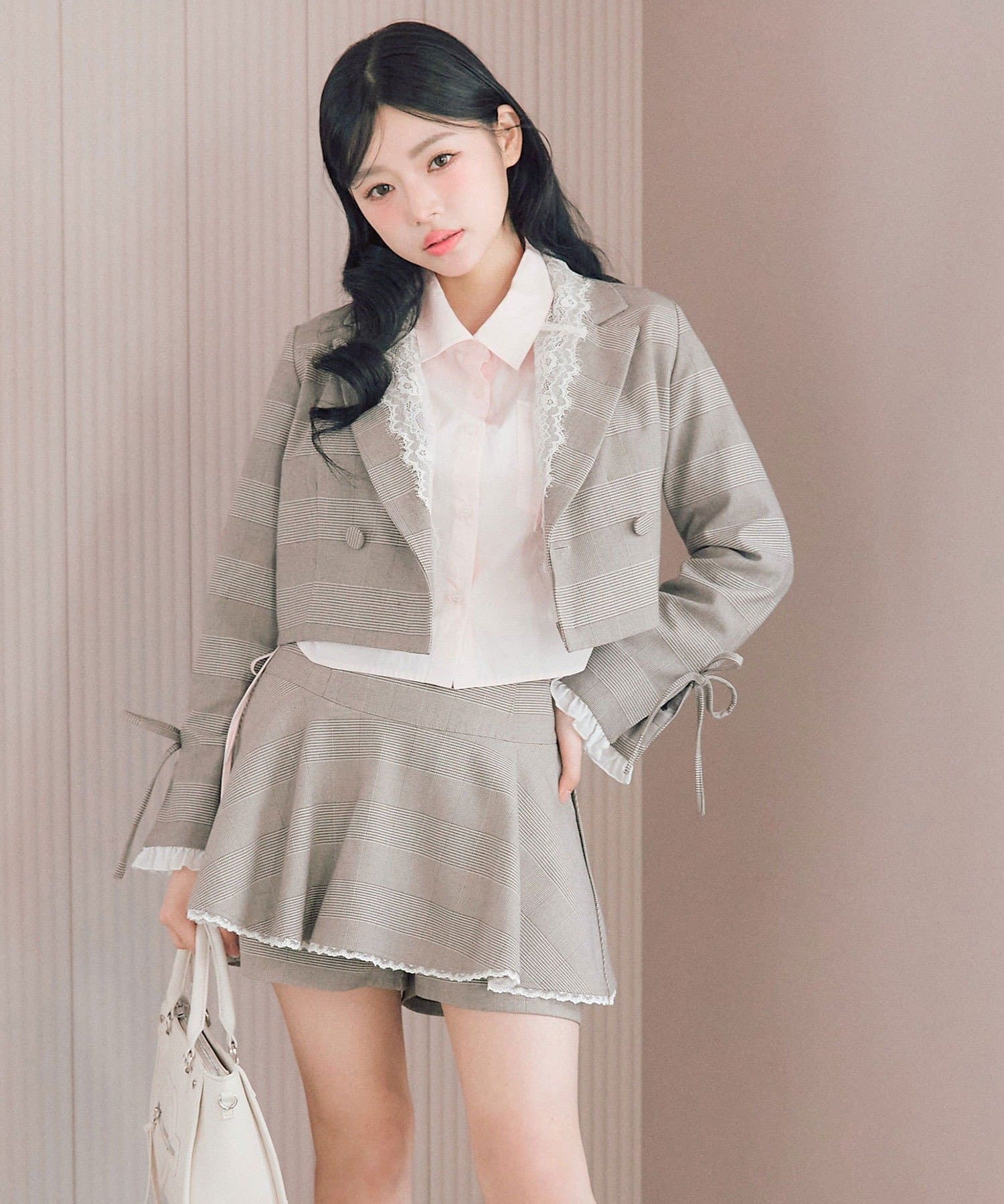 ・レース衿ゆるたぽテーラードジャケット(商品番号:1061070040)やレース衿ショート丈テーラードジャケット(商品番号:1061070050)とセットアップで着用していただけます。