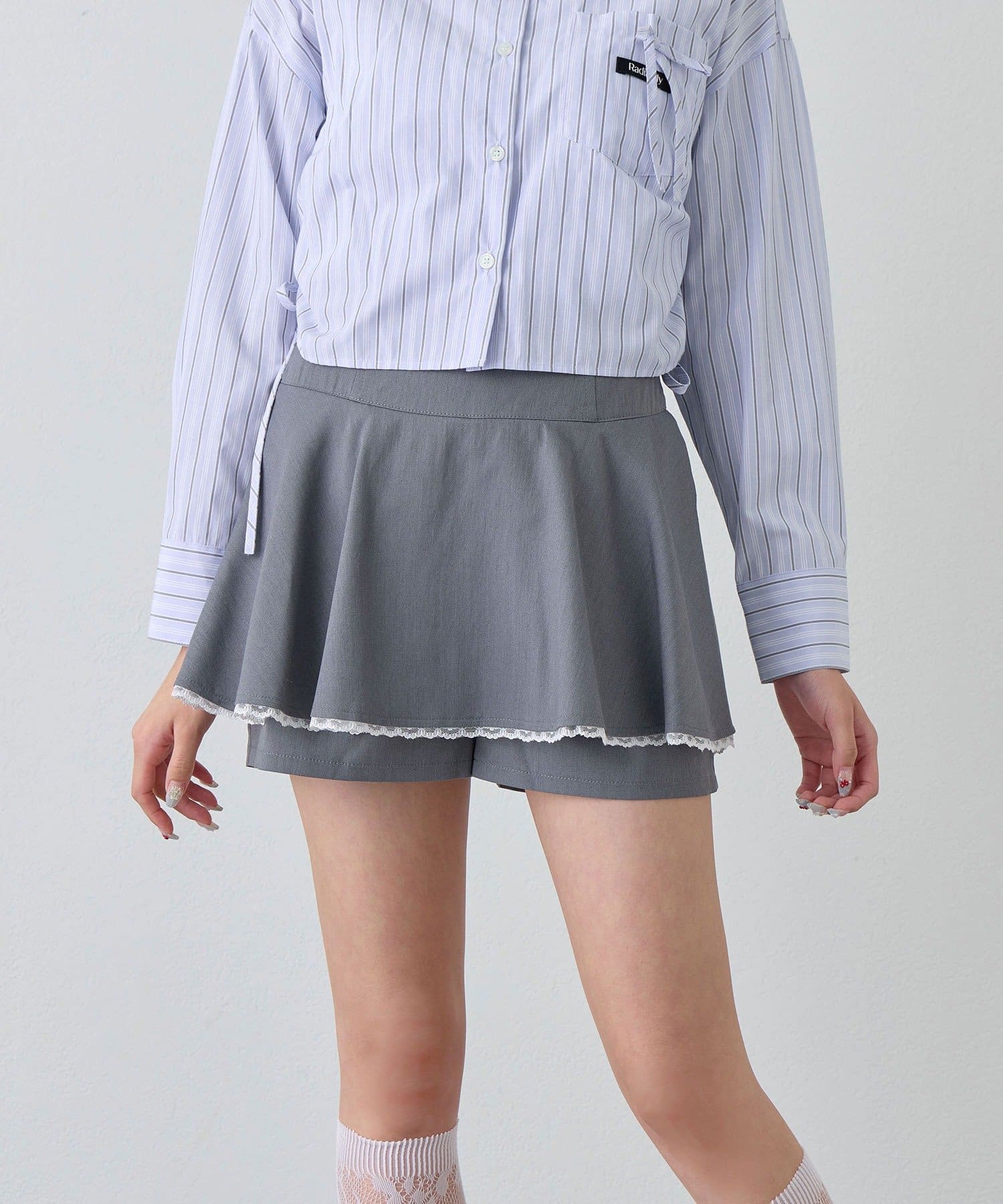 ・ショートパンツにスカートをレイヤードした、トレンド感抜群のアイテム。
