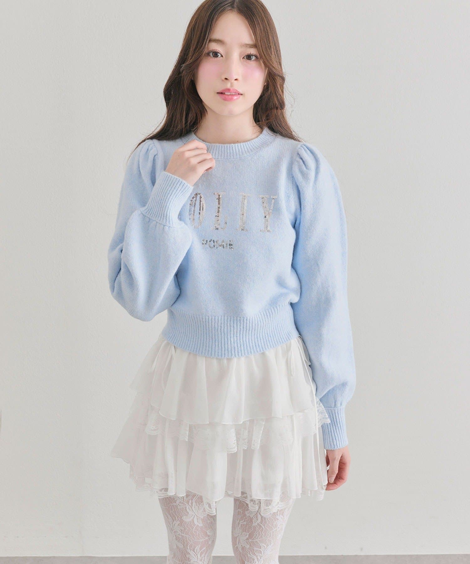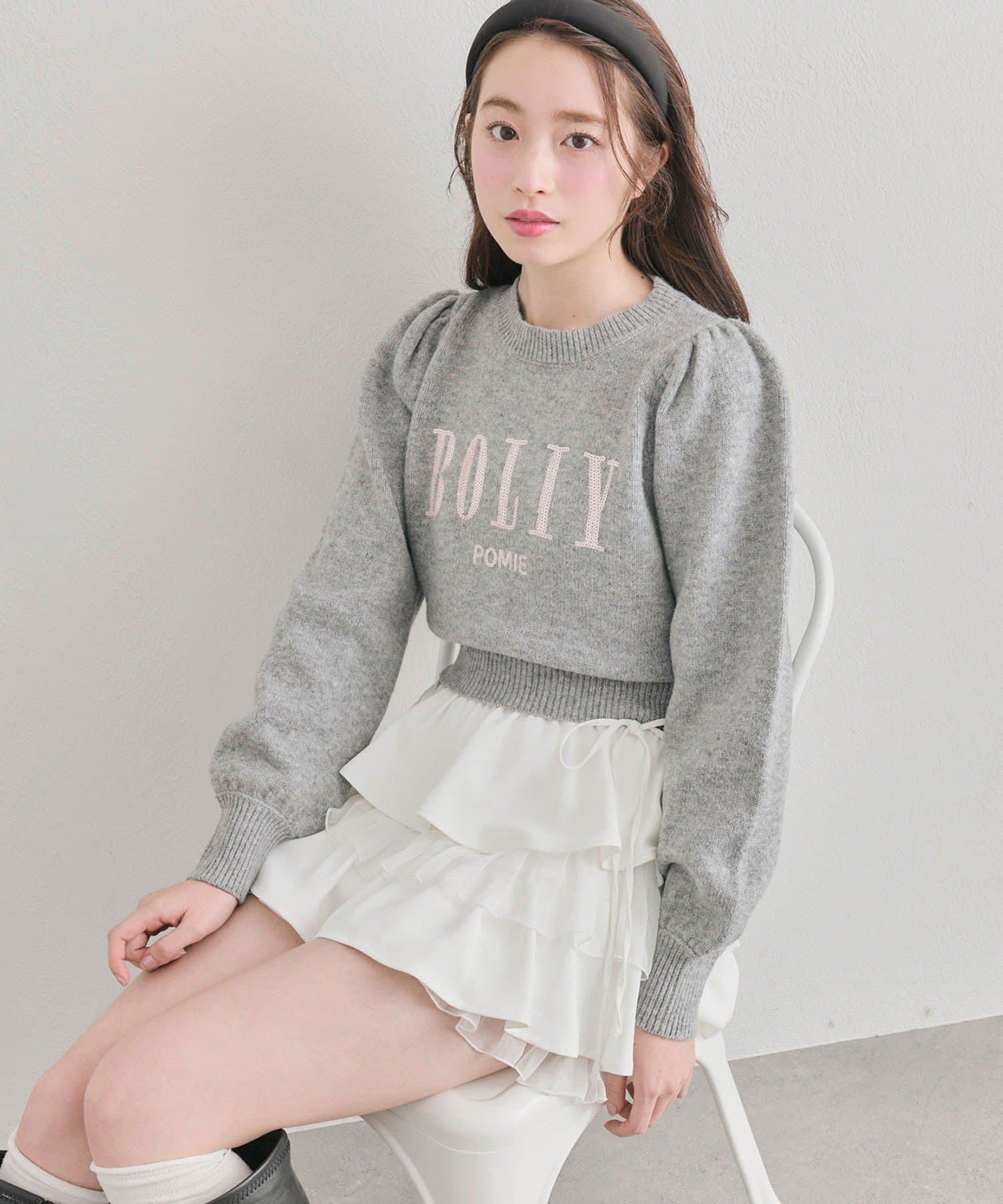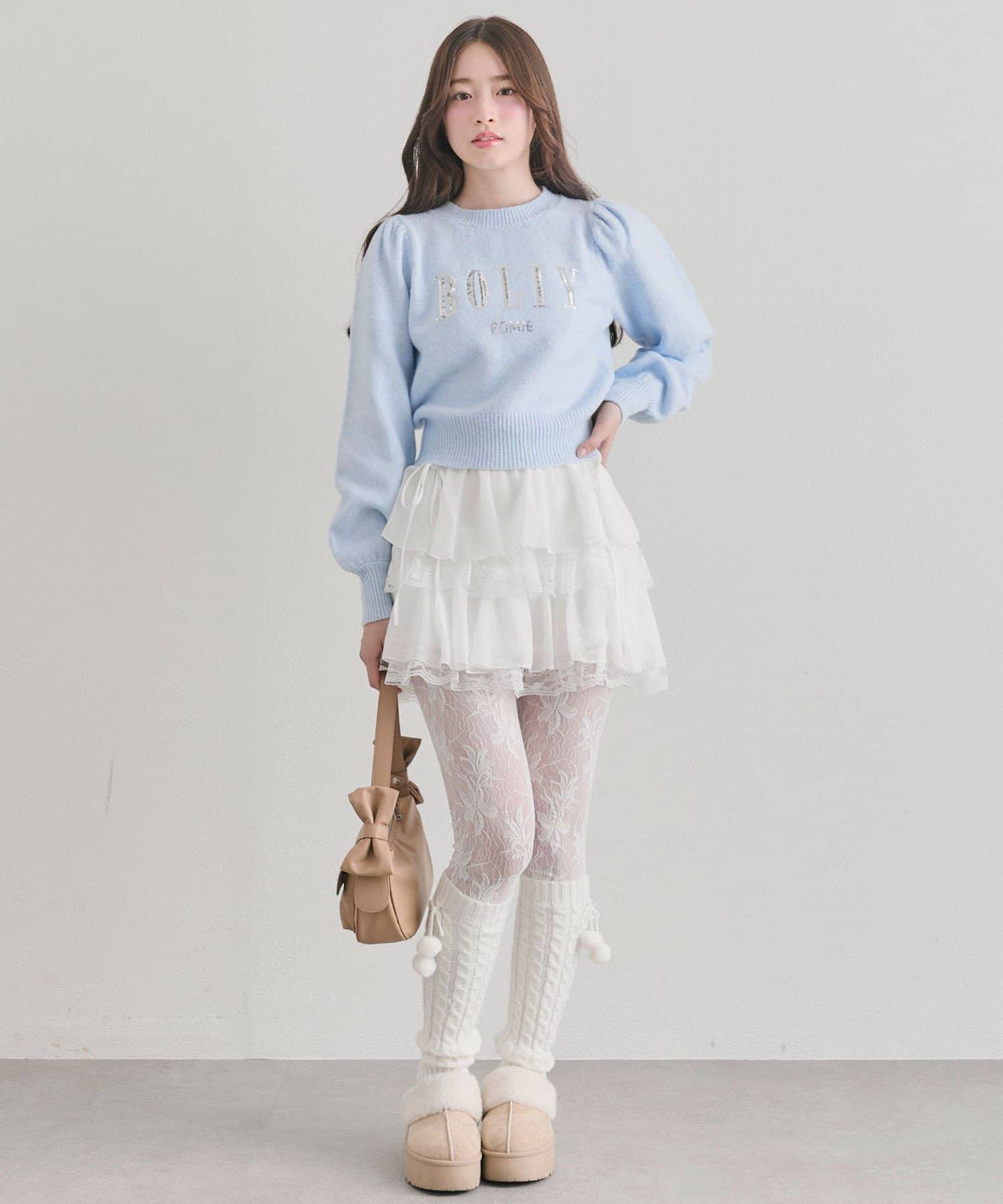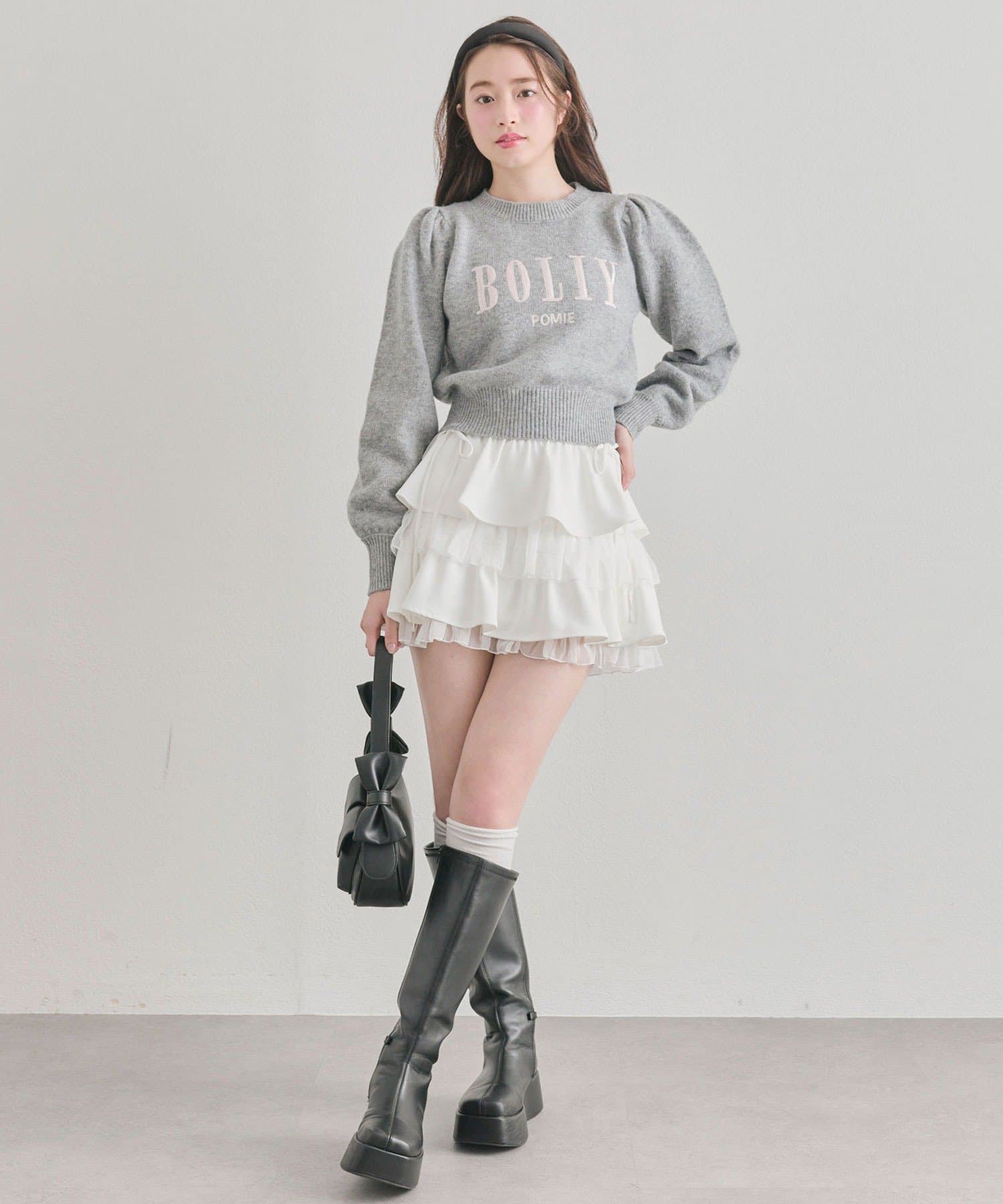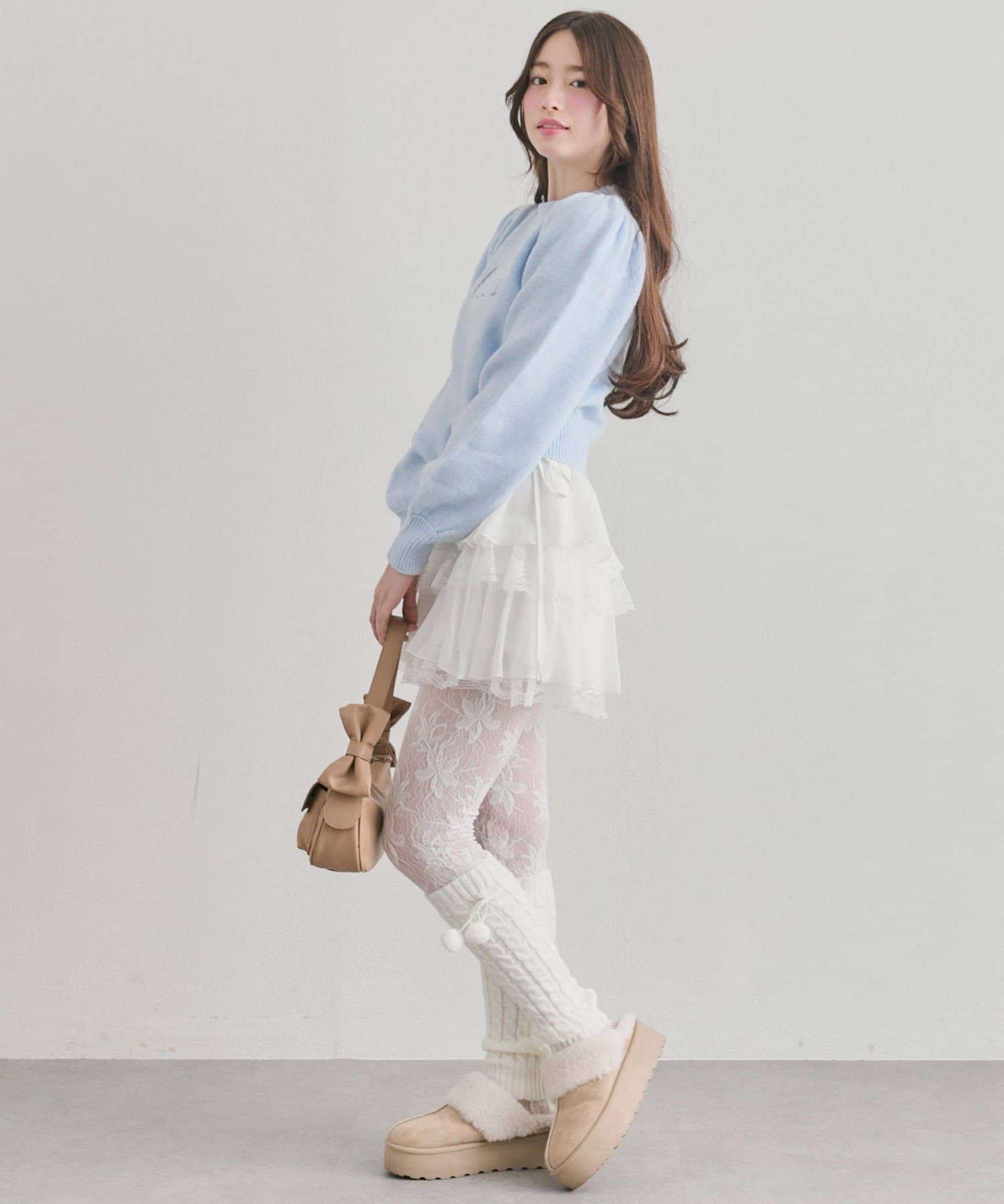 ・ニットやブラウスを合わせると、ガーリーな雰囲気にまとまります。