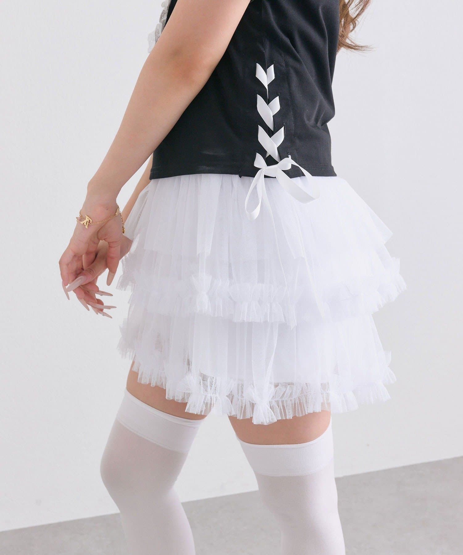 チュールティアードミニスカート
