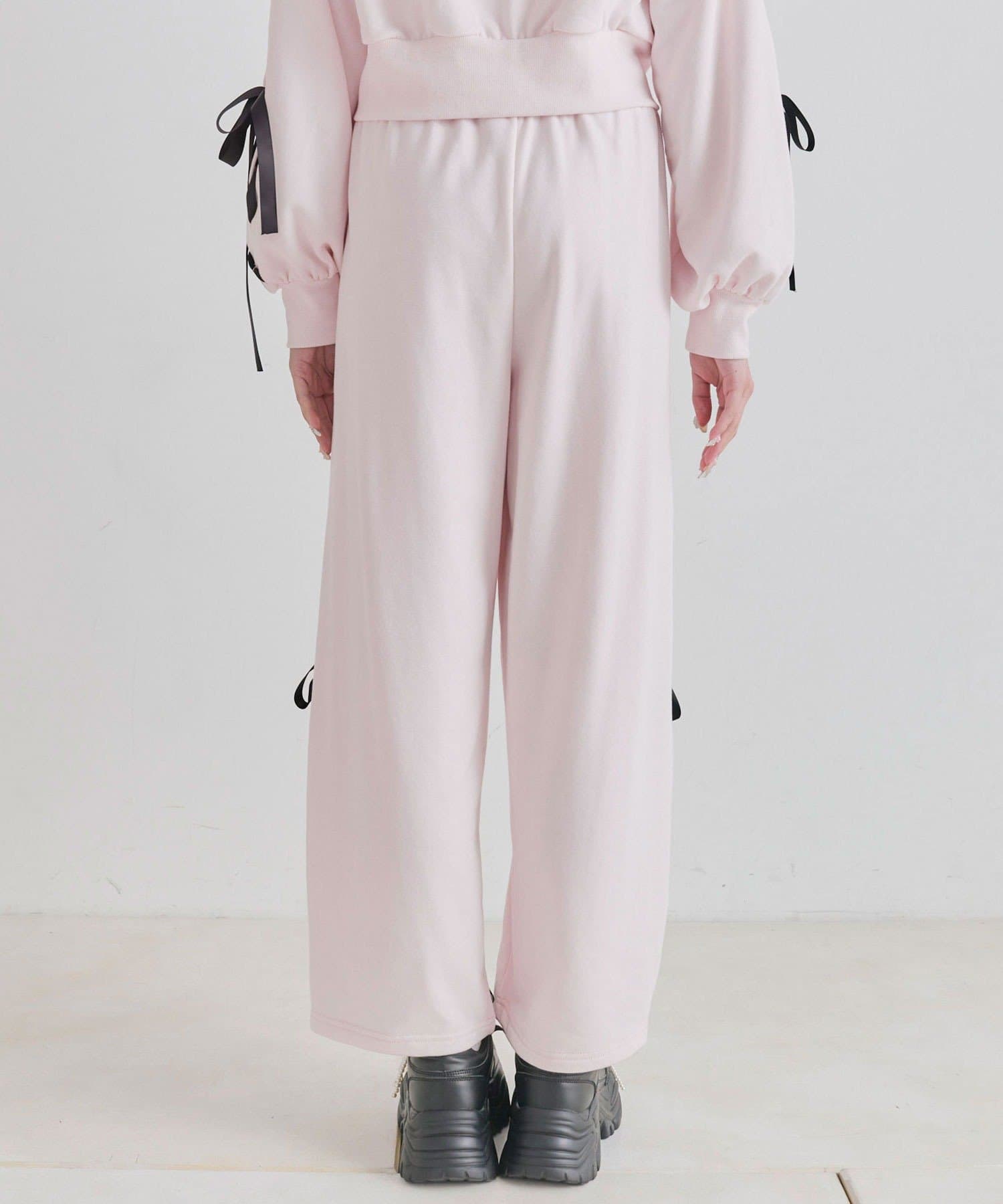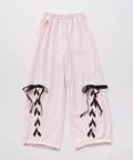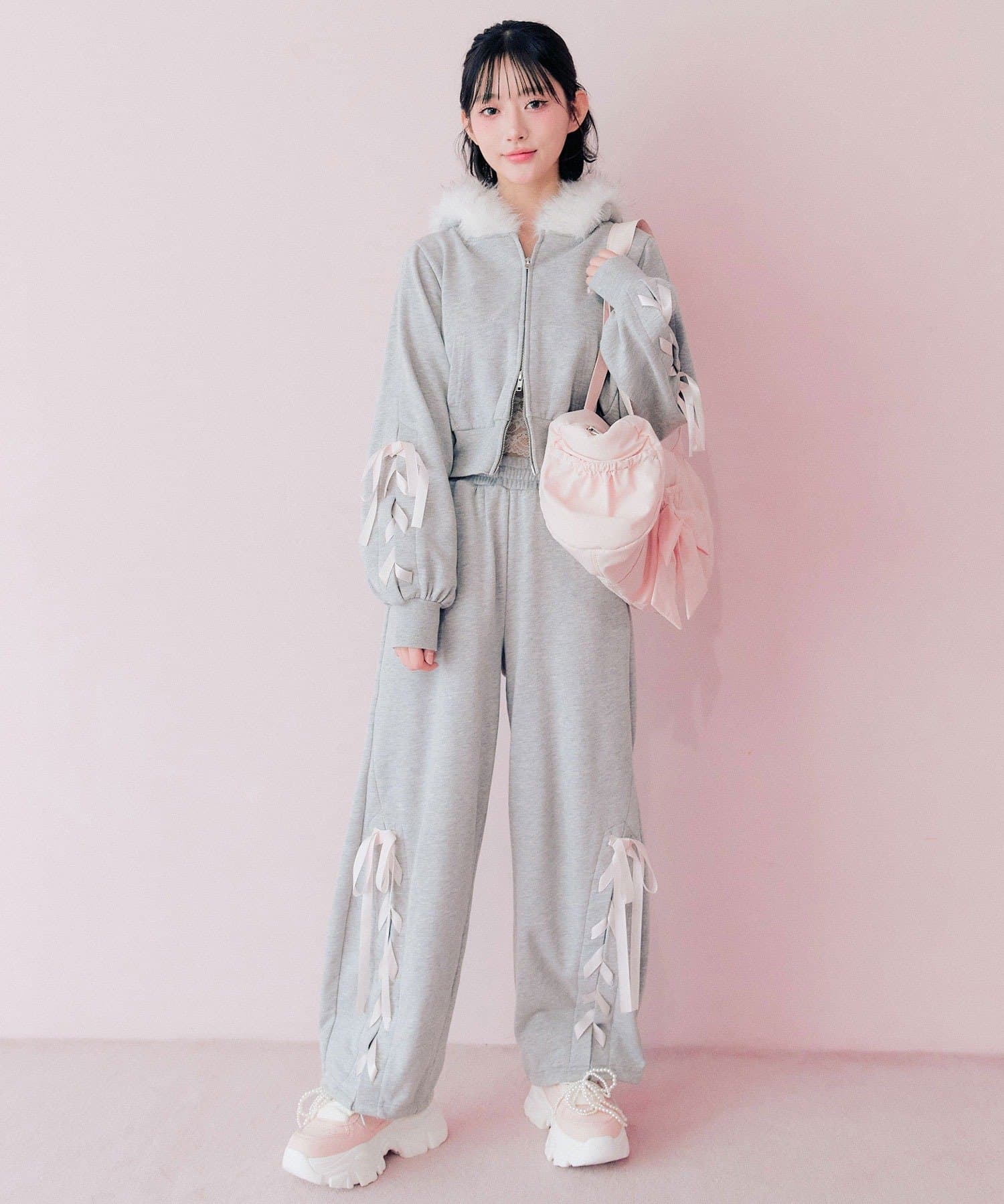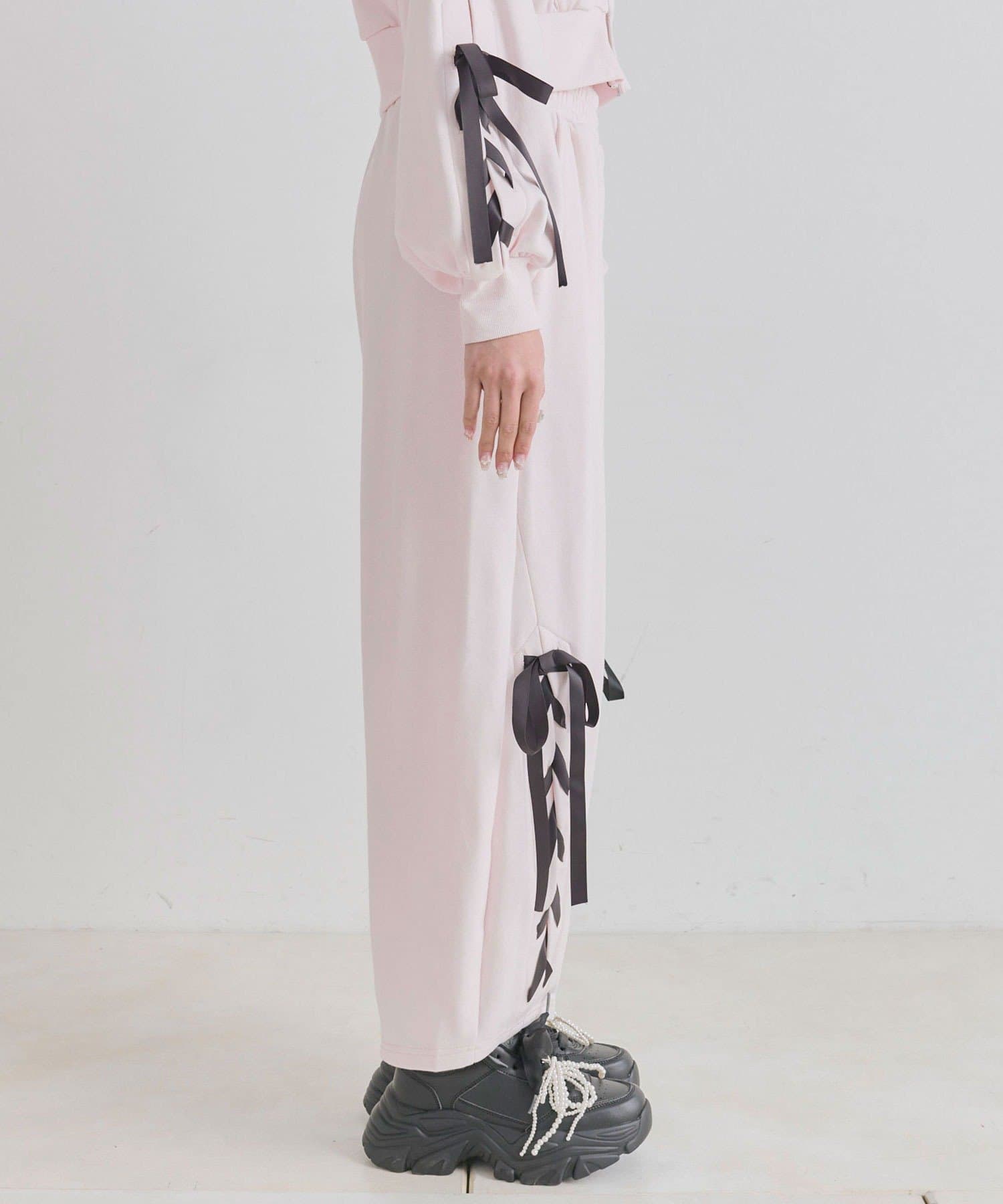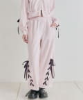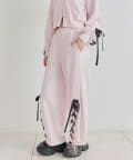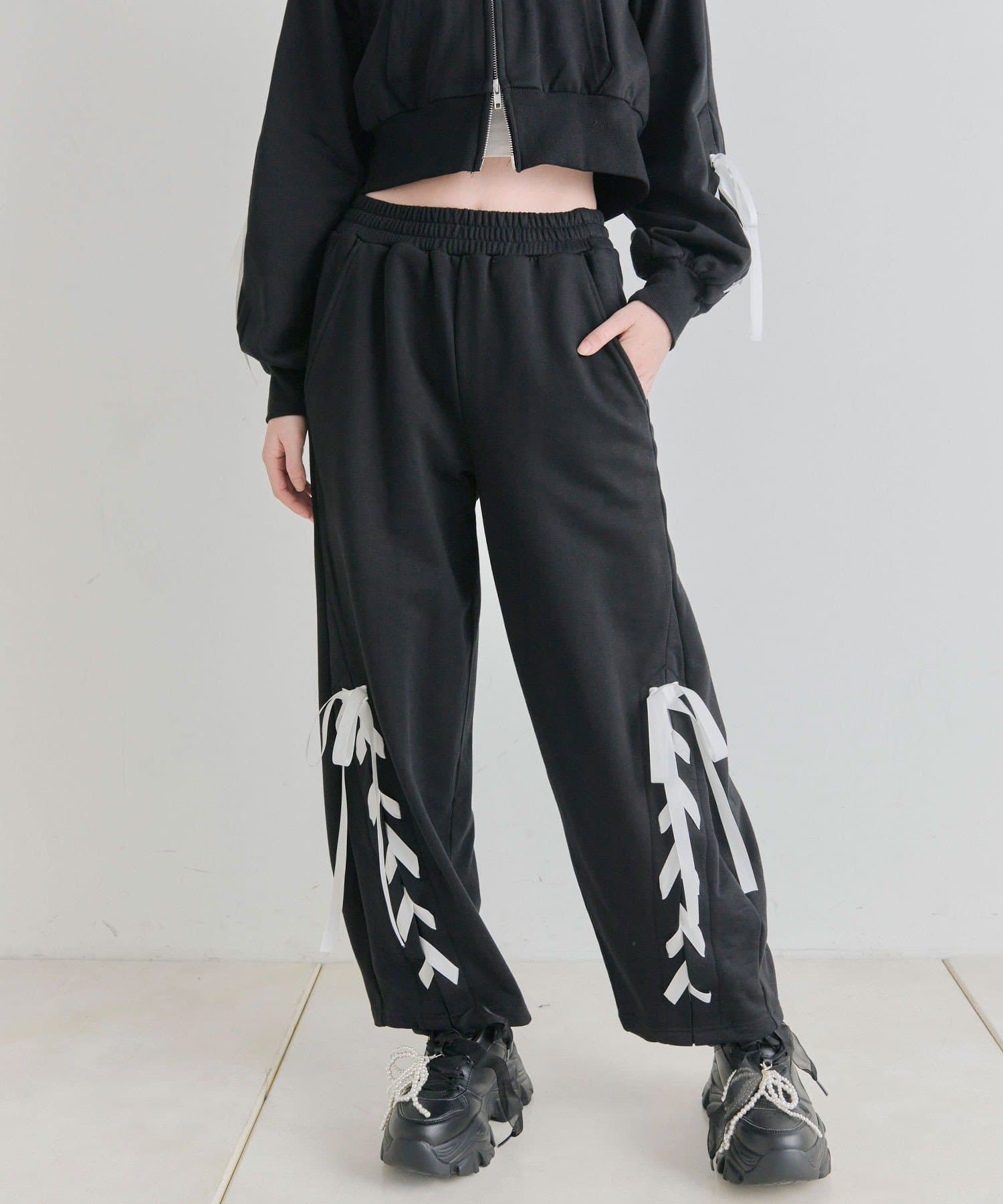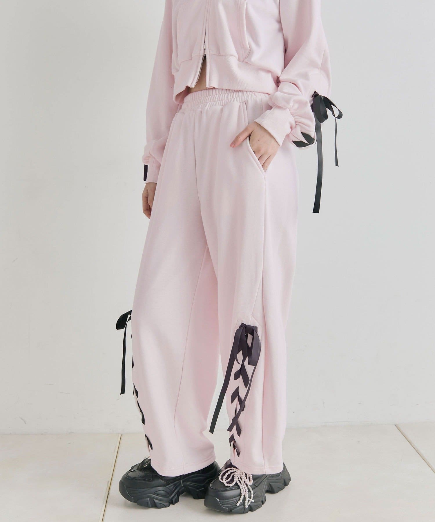 ・カジュアルなスウェットパンツに、リボンレースアップを取り入れたガーリーなデザイン。