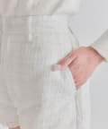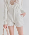 ・ラメ入りのツイード素材を使用し、カジュアルになりすぎずガーリーな印象に仕上げました。