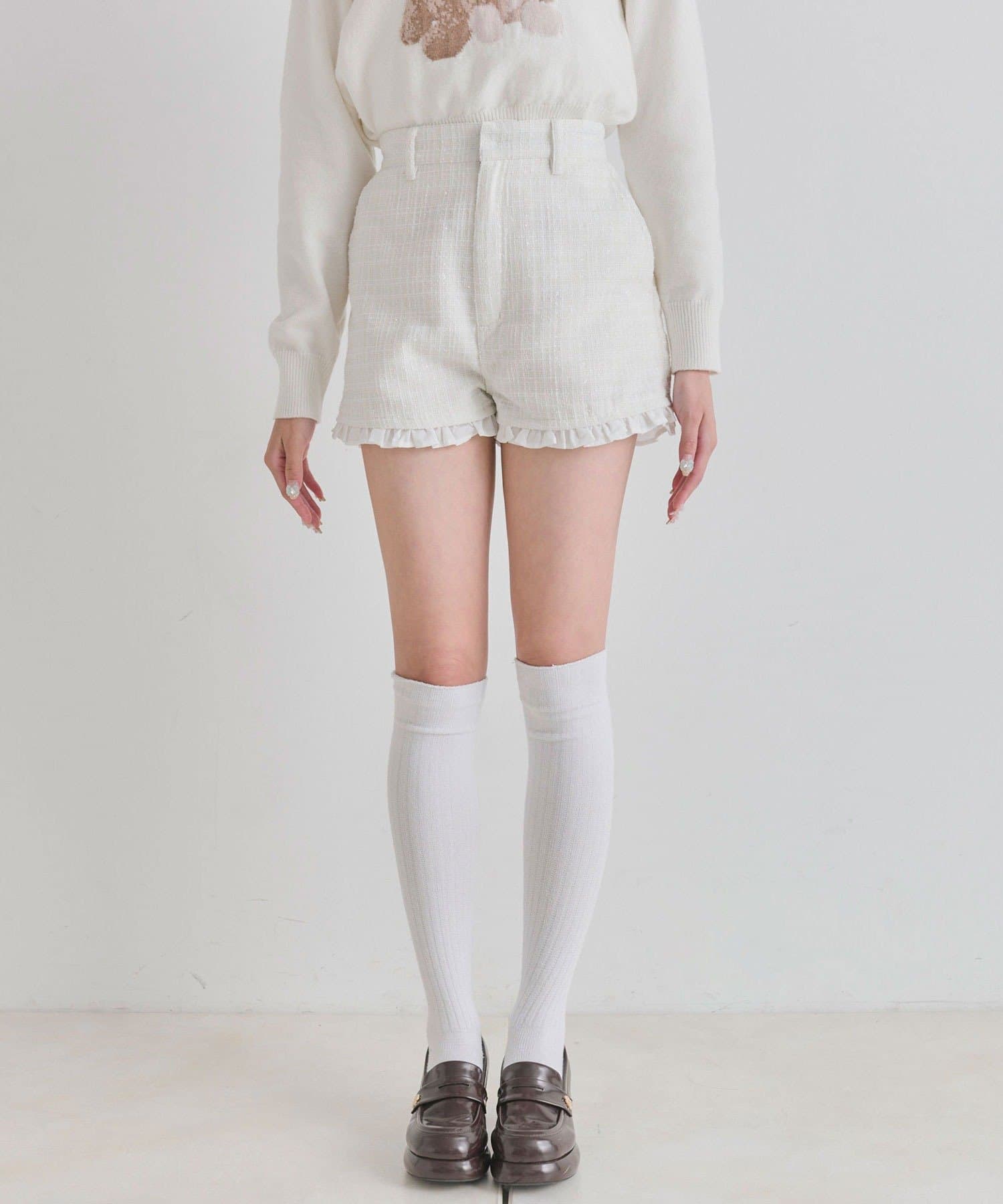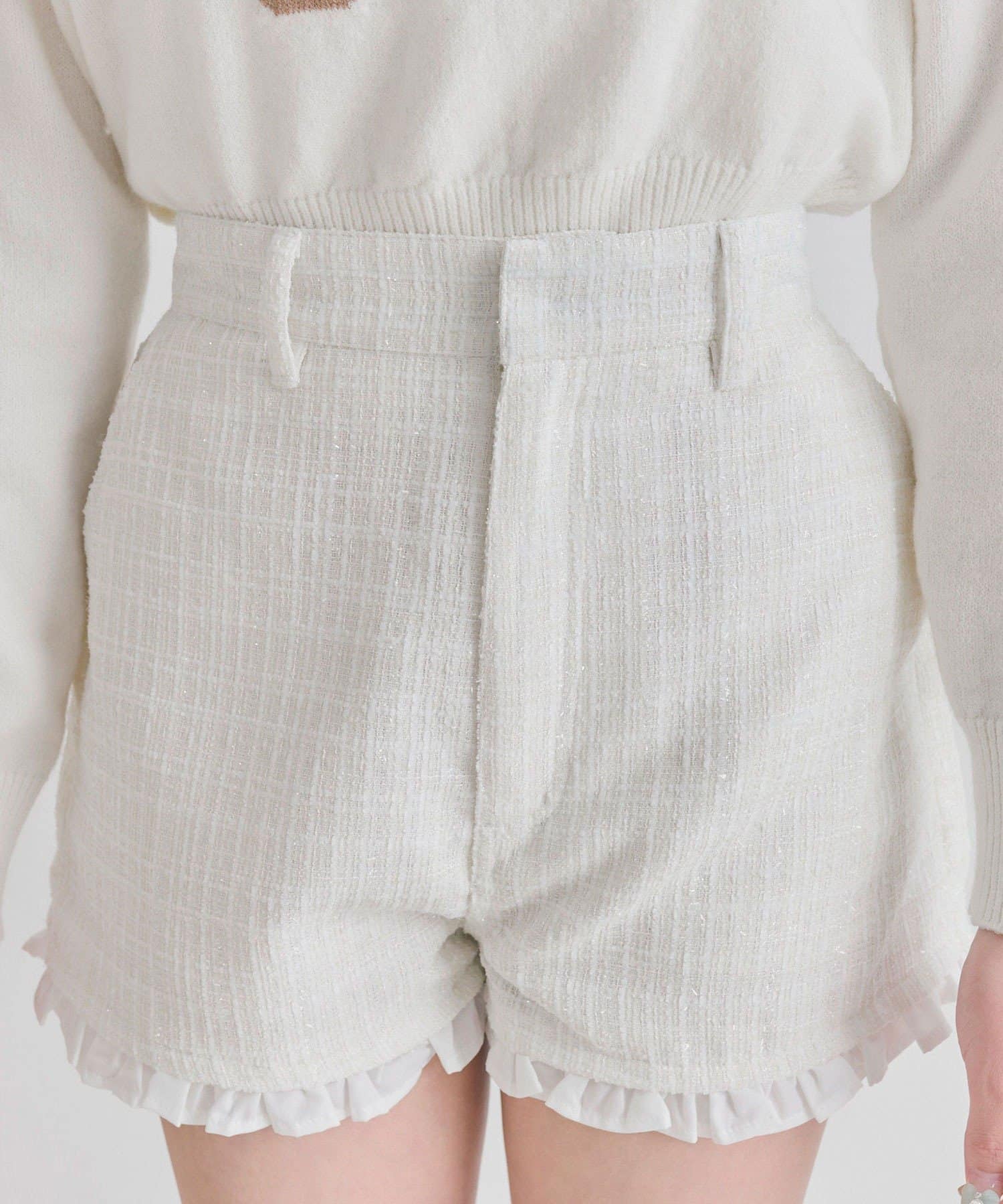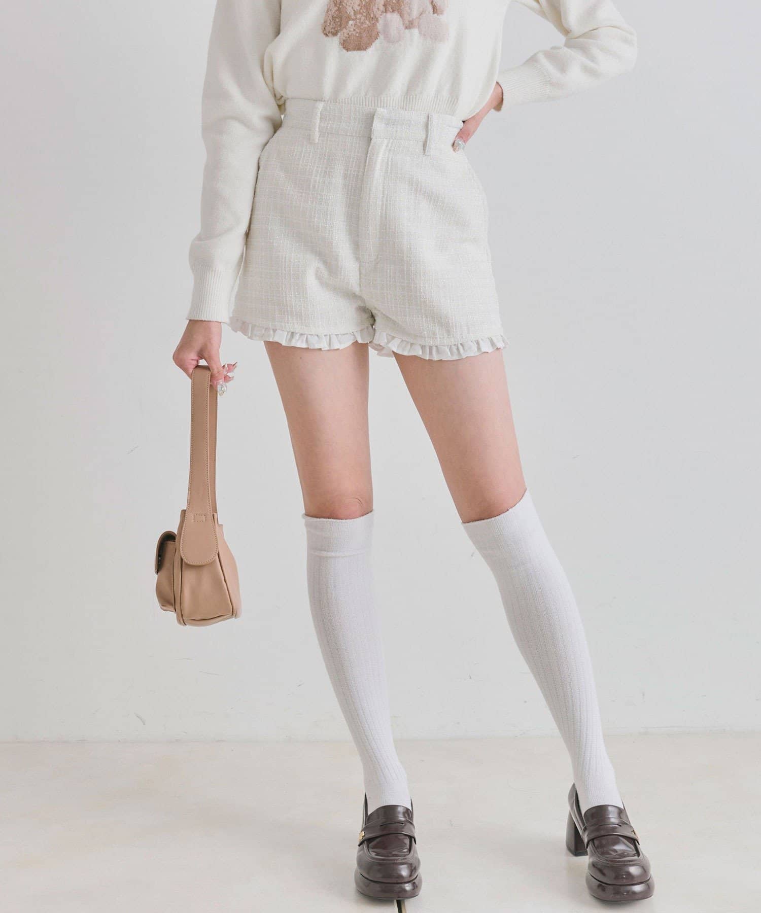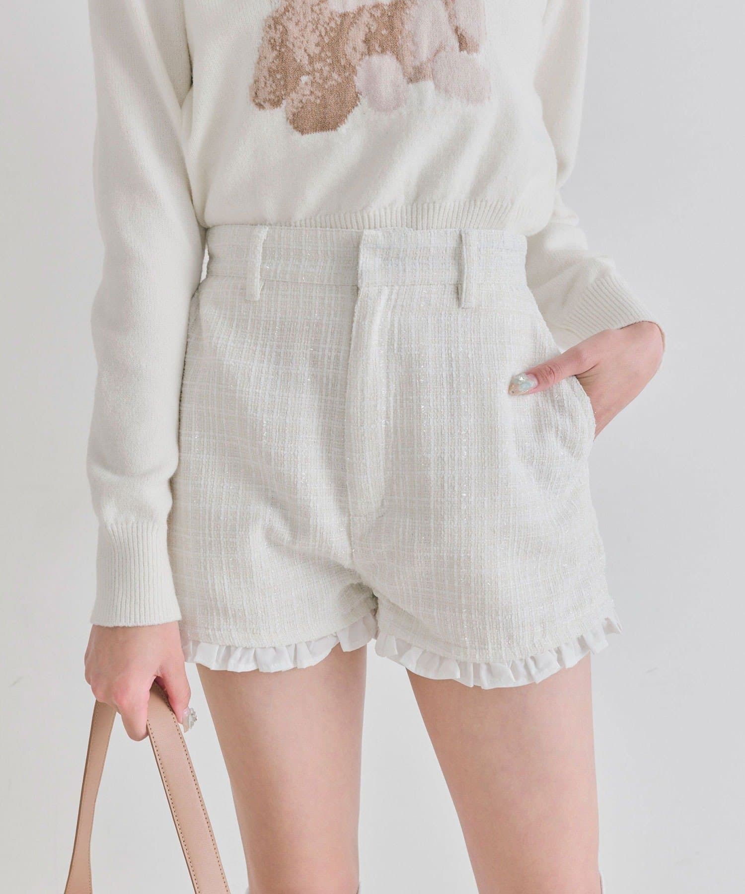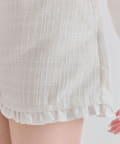 ・裾からさりげなく覗くフリルが、太もも周りをすっきりと細く見せてくれるデザイン。