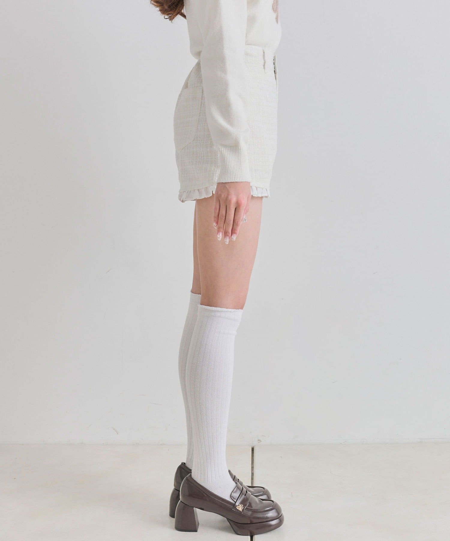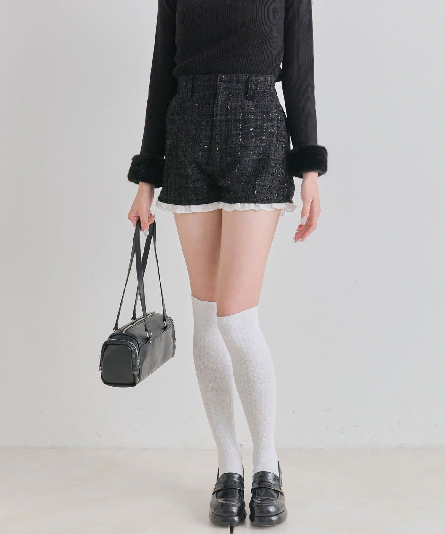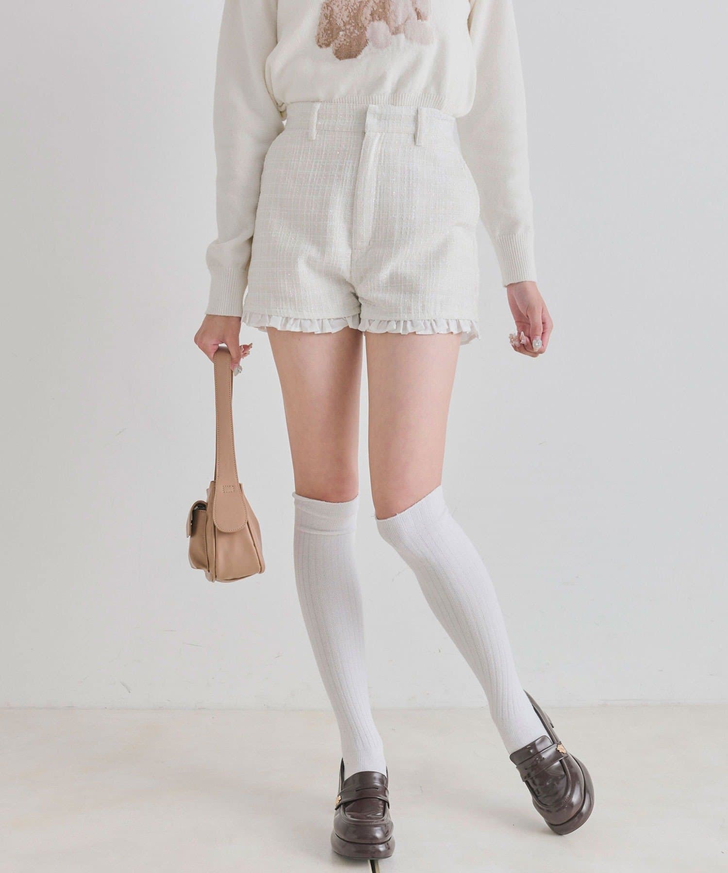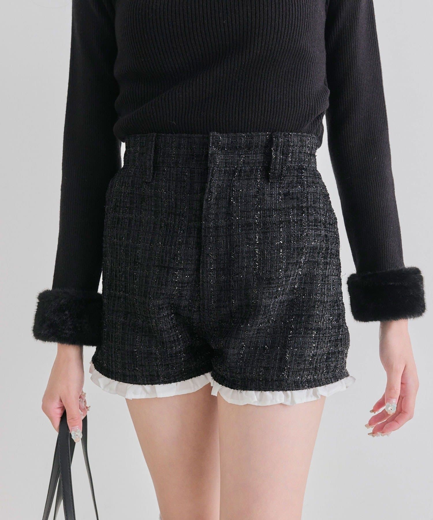 ・裾からさりげなく覗くフリルが、太もも周りをすっきりと細く見せてくれるデザイン。