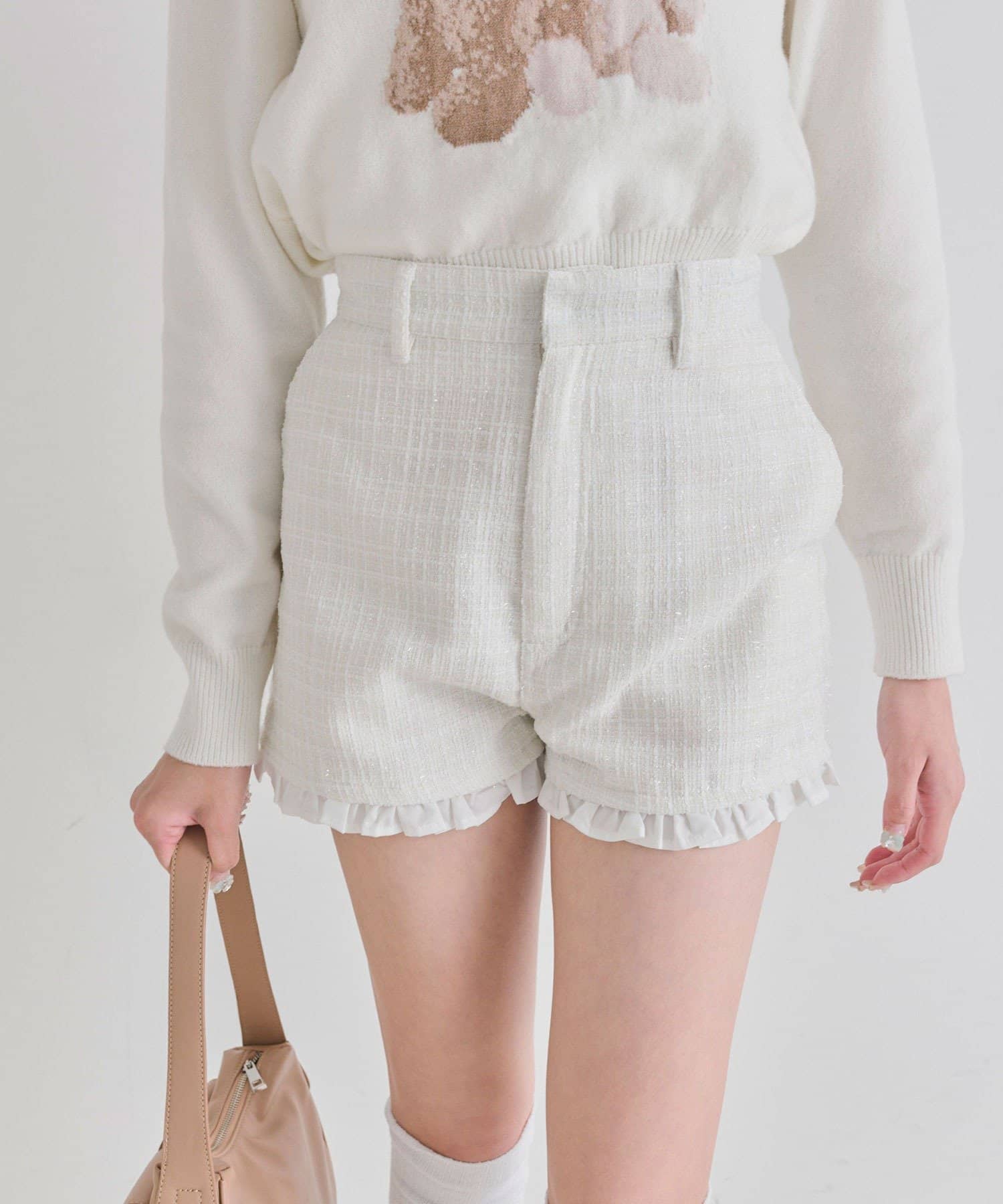 さりげないフリルがかわいい美脚ショートパンツ