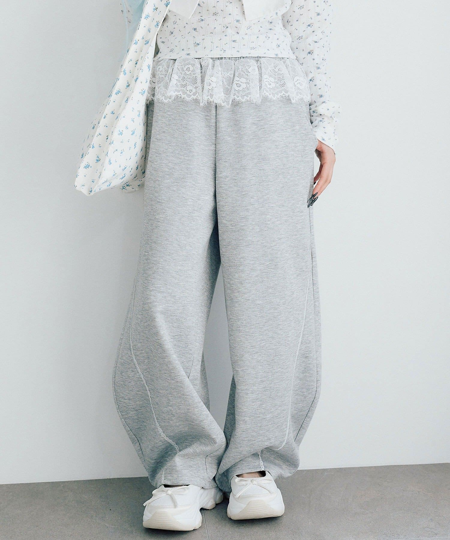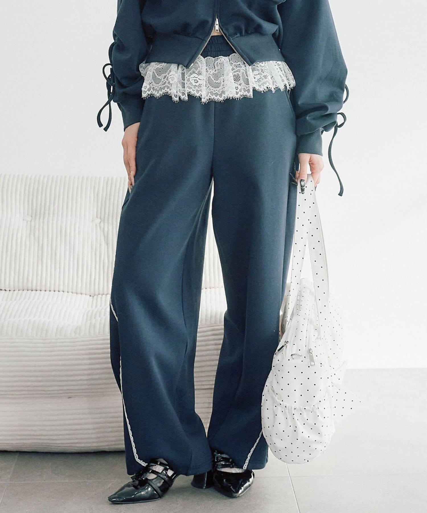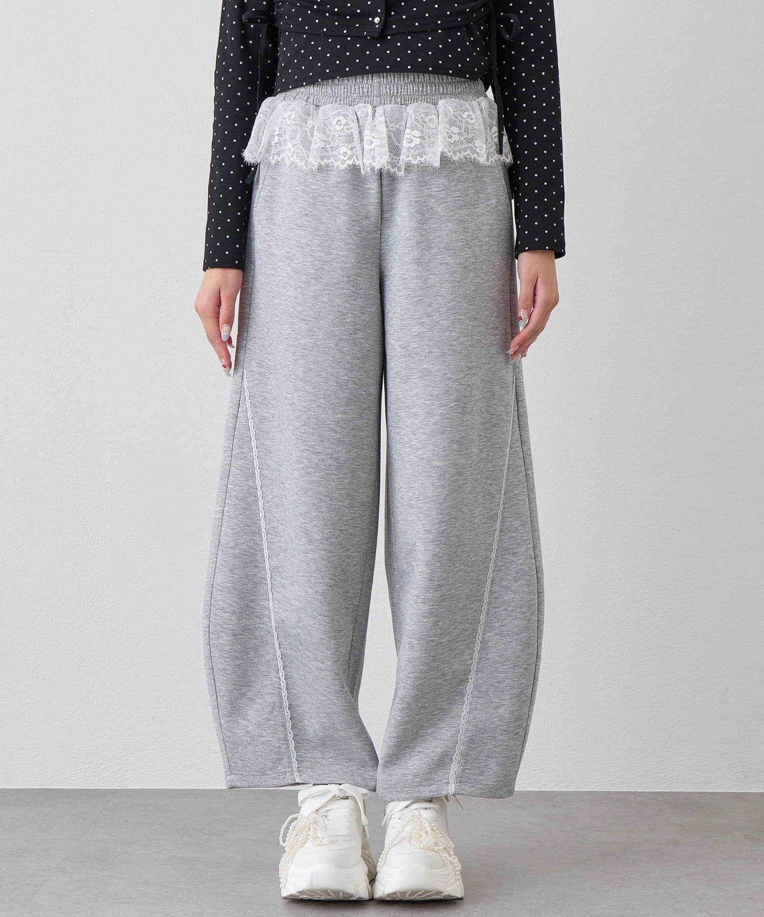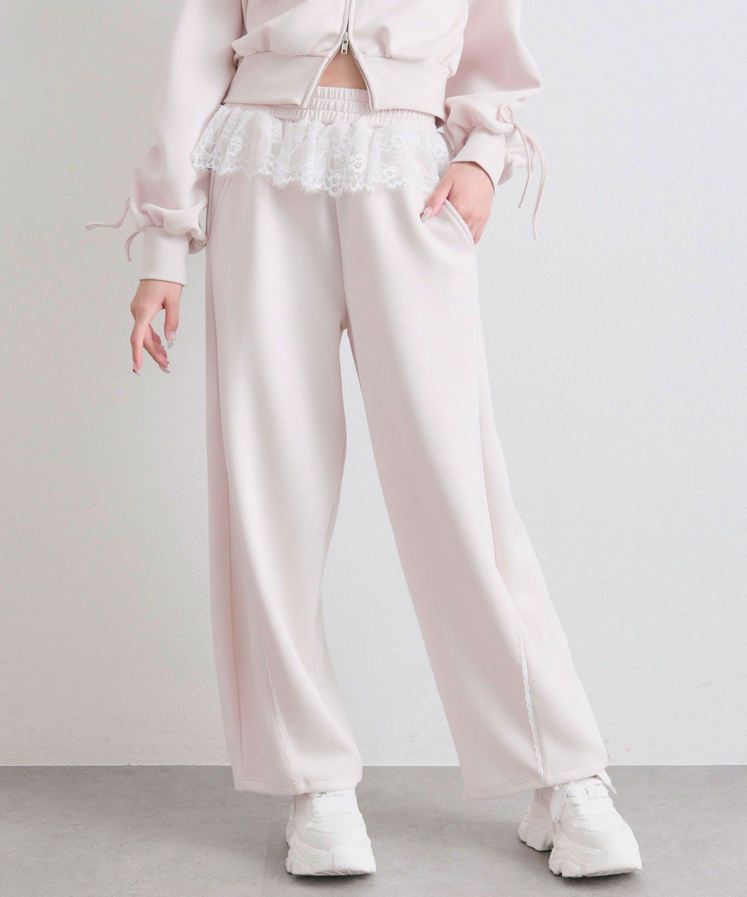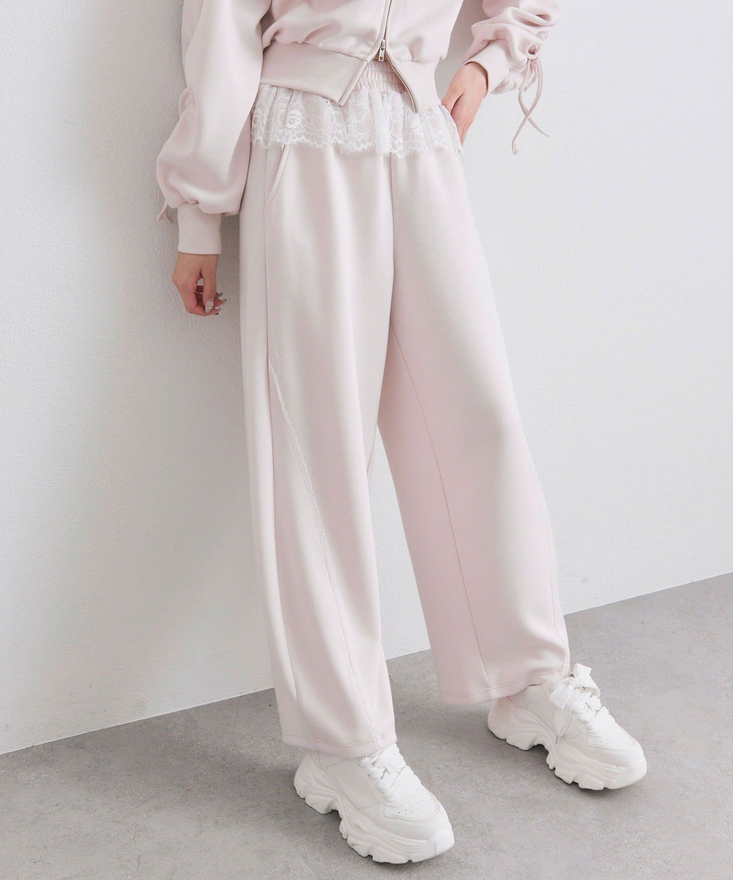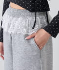 ・ウエストや裾のさりげないレースが、カジュアルなパンツに甘さをプラスするデザイン。