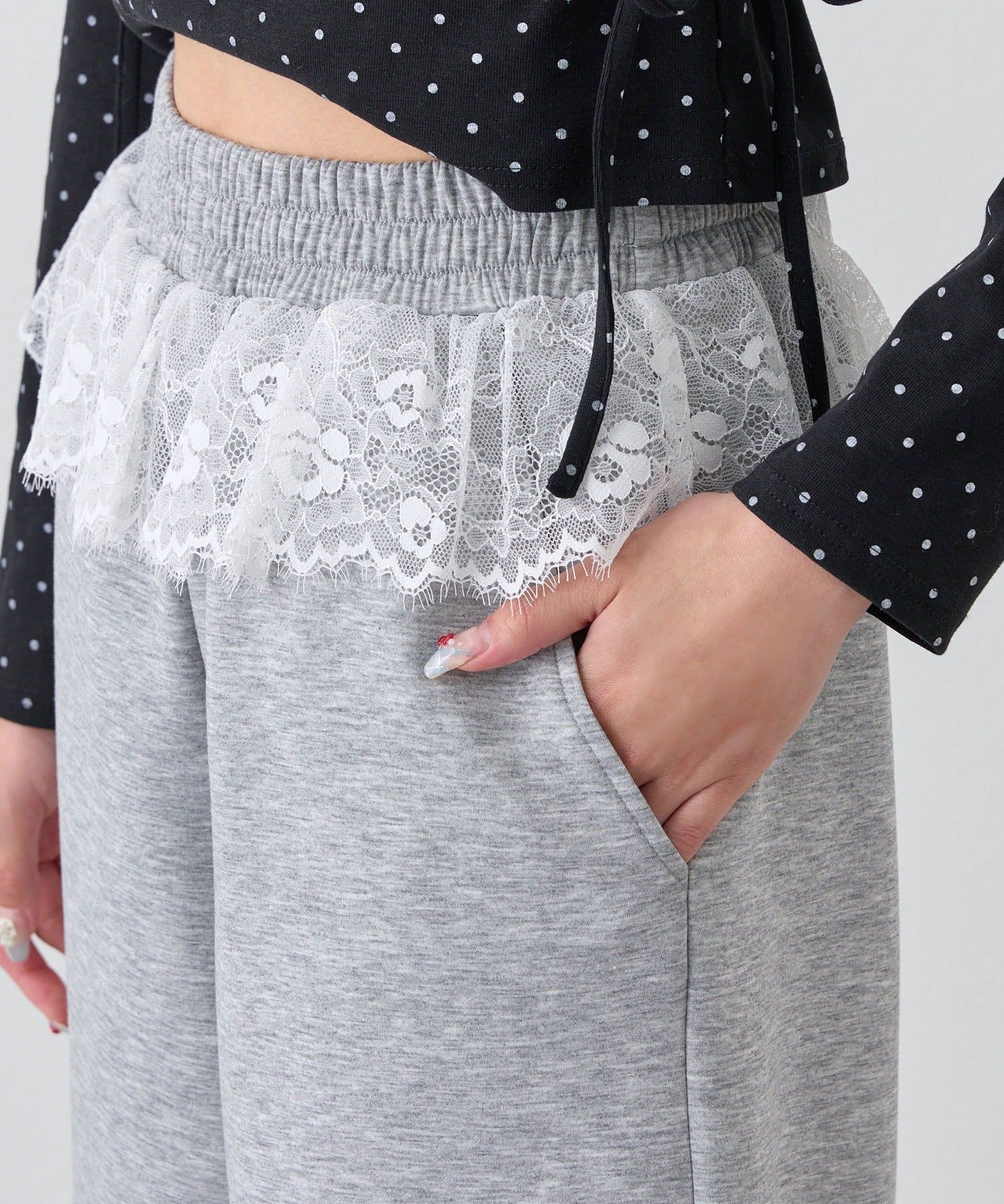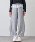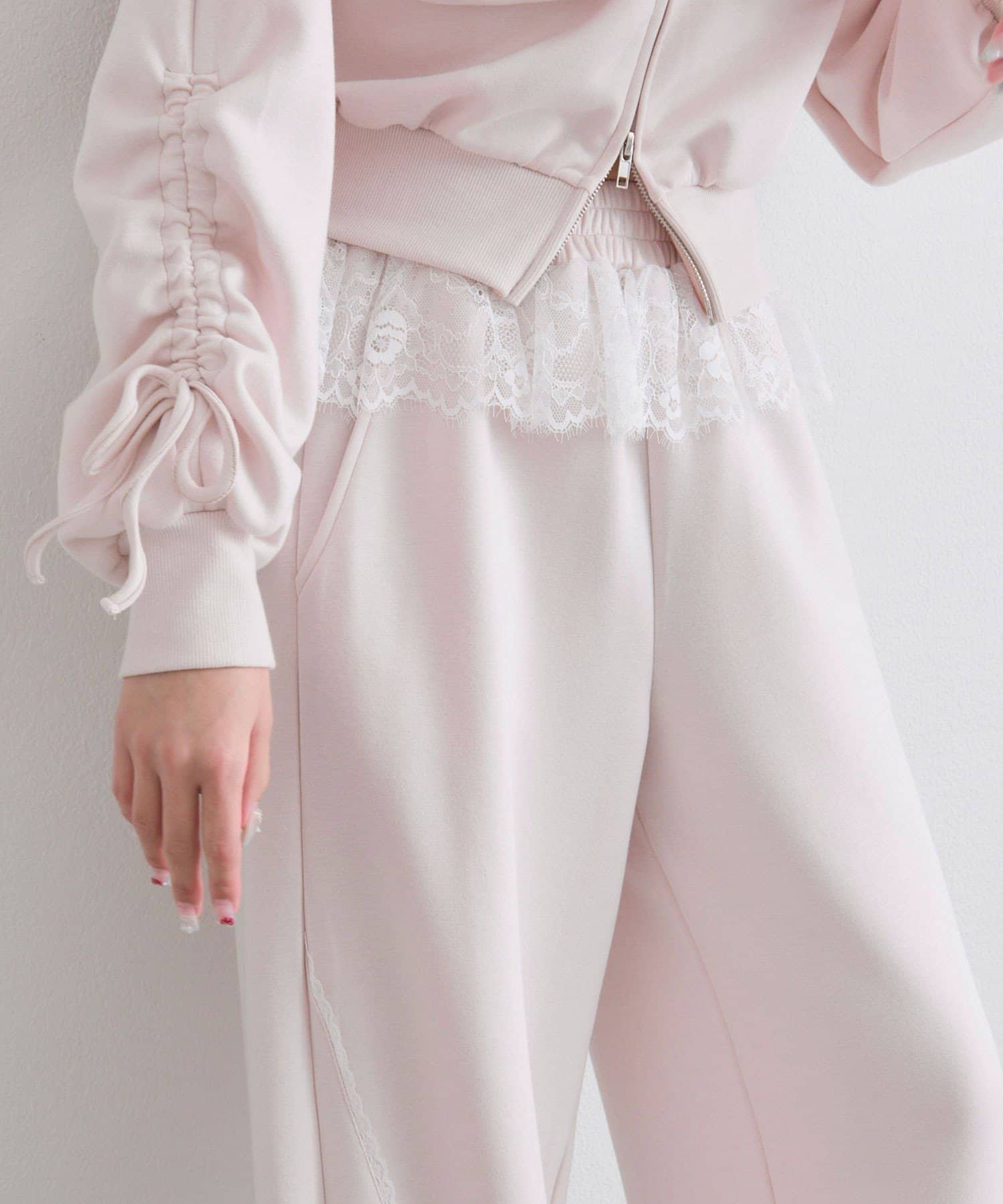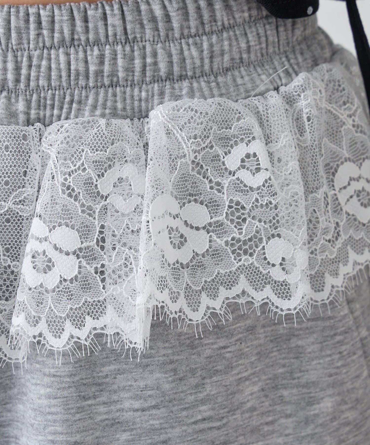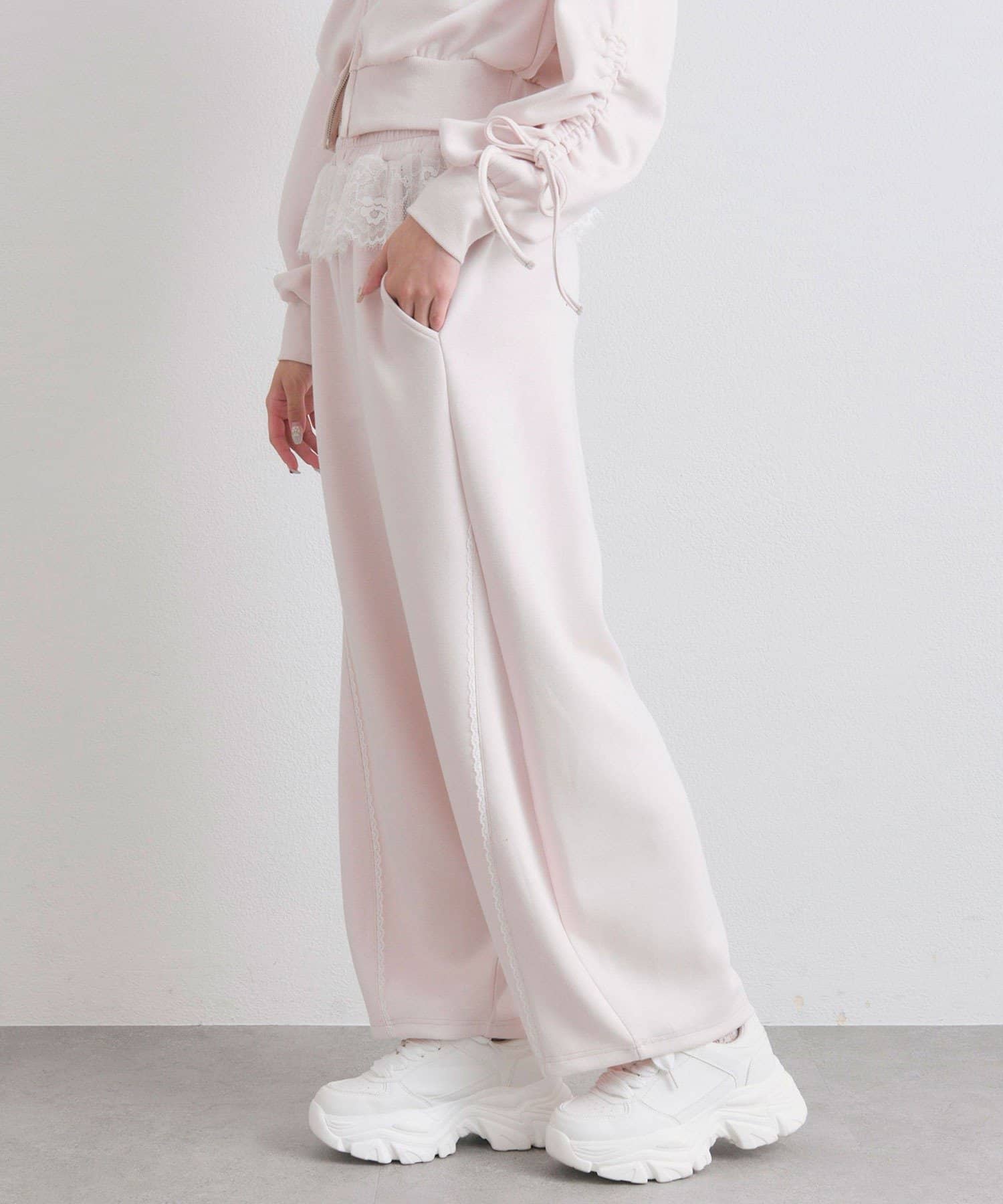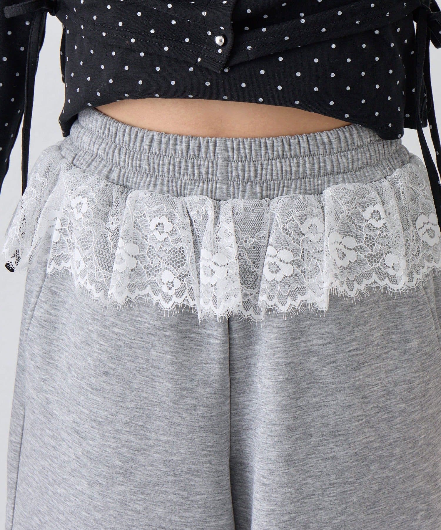 ・ウエストや裾のさりげないレースが、カジュアルなパンツに甘さをプラスするデザイン。