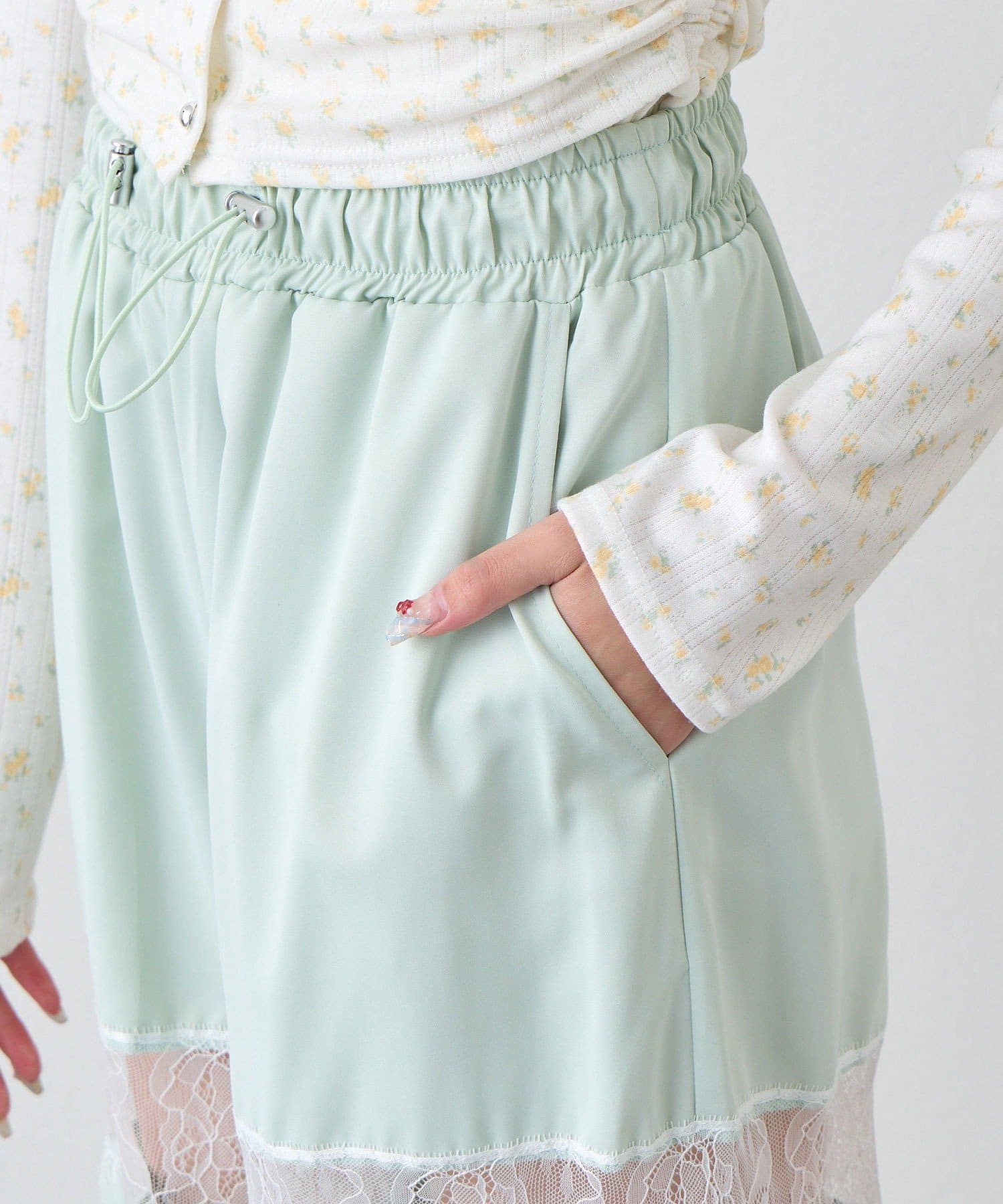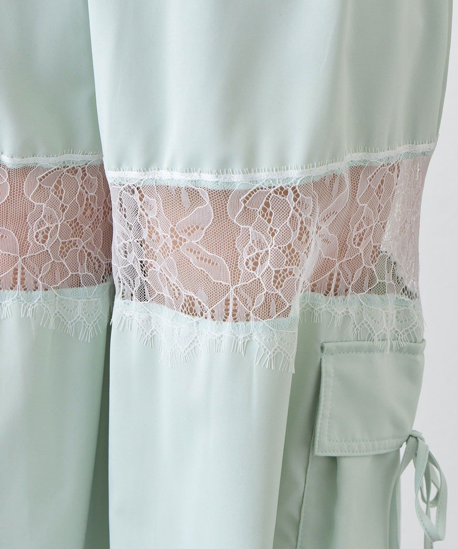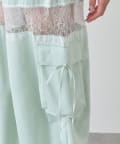 ・太もも部分のレースが、重たくなりがちなワイドシルエットに抜け感をプラスしてくれます。