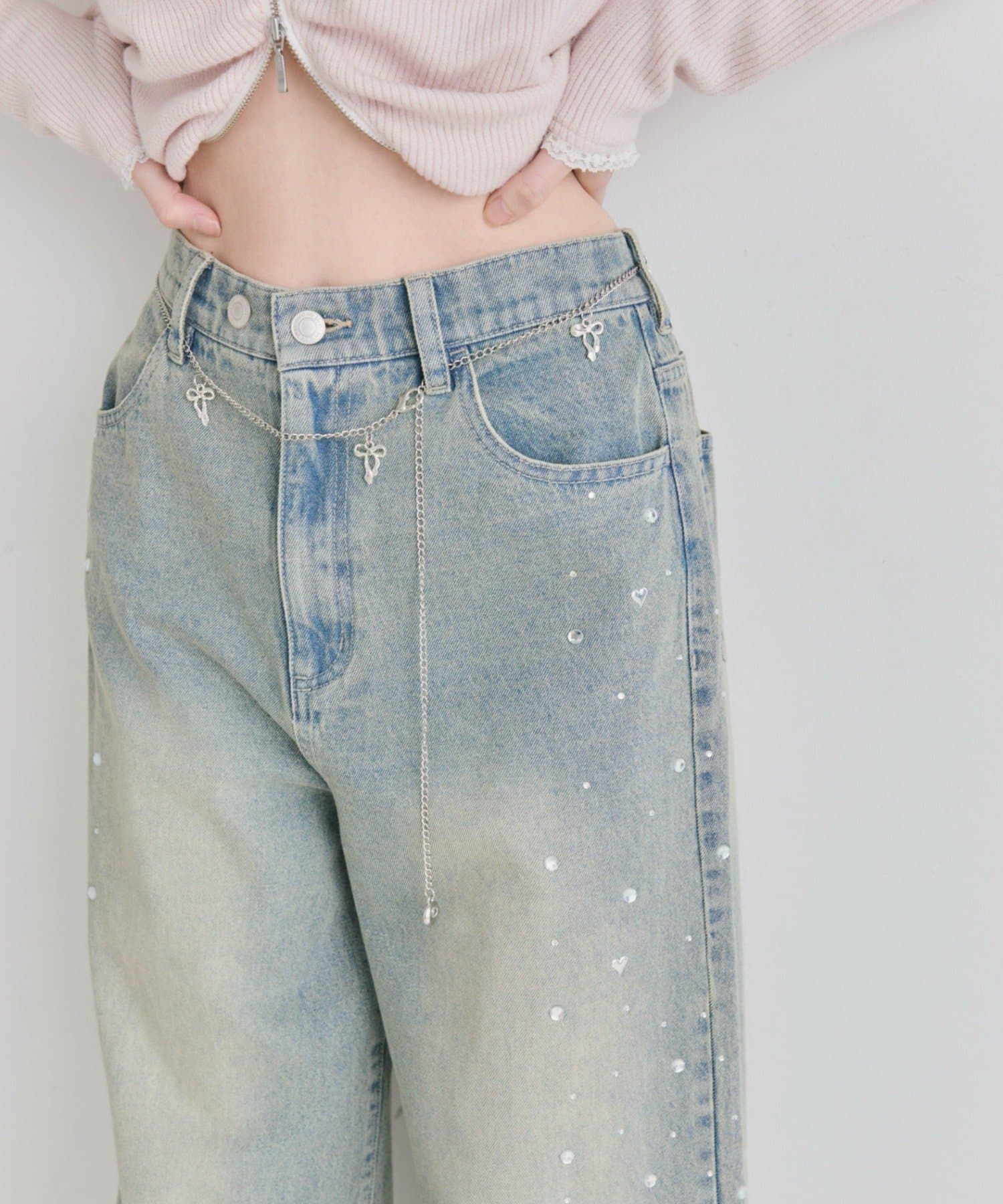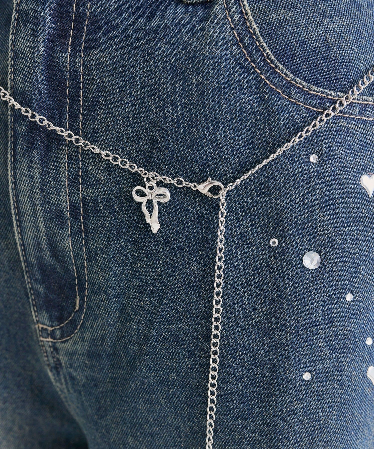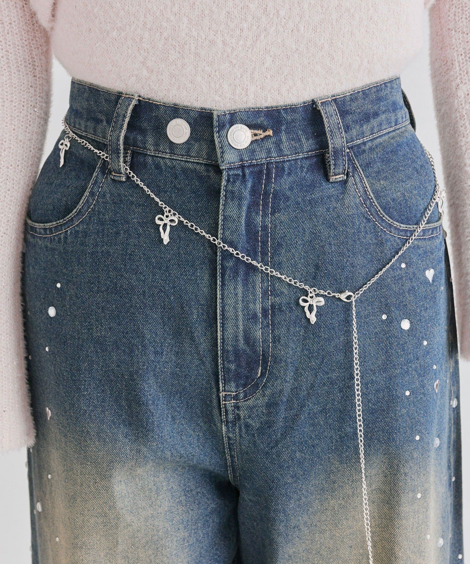 • OLIVE des OLIVE(オリーブ デ オリーブ) チェーン付きワイドデニムパンツ