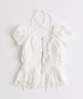 素材 【オフ】表地: コットン100%  裾レース: ナイロン90%, ポリウレタン10%  裏地: ポリエステル80%, コットン20%  【アイボリー】本体: ポリエステル100%  裾レース: ナイロン90%, ポリウレタン10%  【ブラック】本体: コットン90%, ポリエステル10%  裾レース: ナイロン90%, ポリウレタン10%