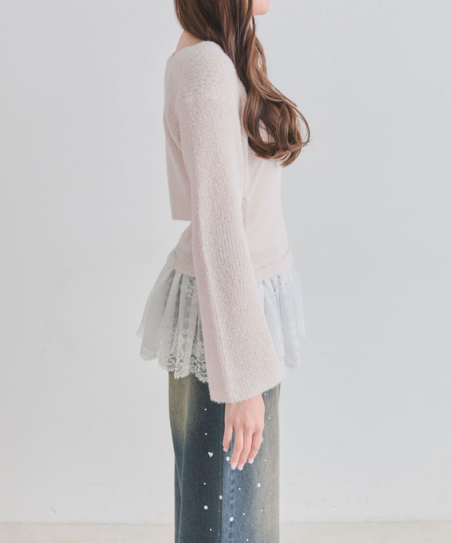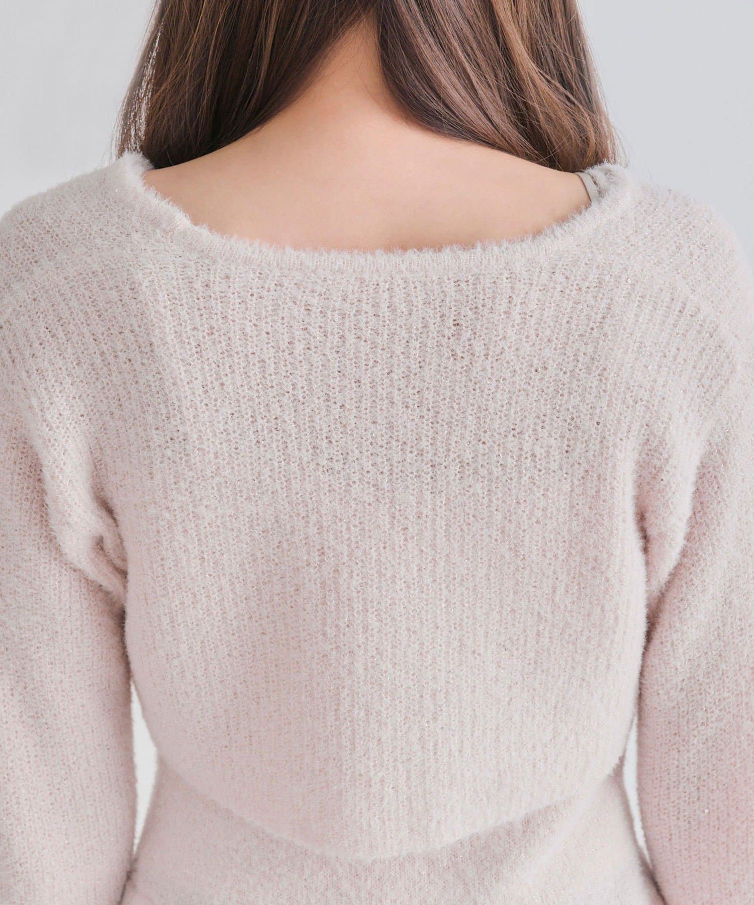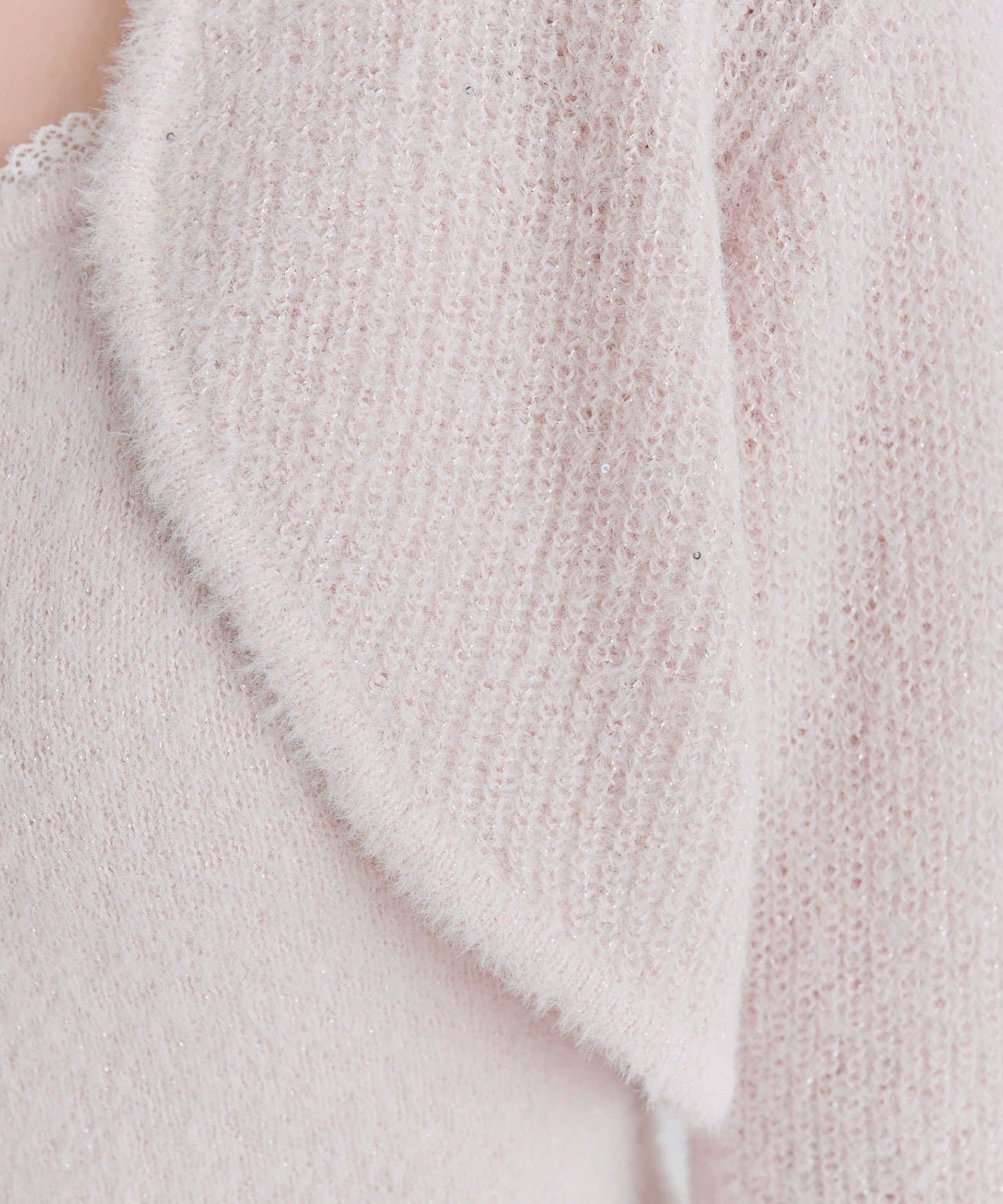 ・ニット全体に編み込まれたラメ糸が程よくきらめき、華やかなムードを演出します。
