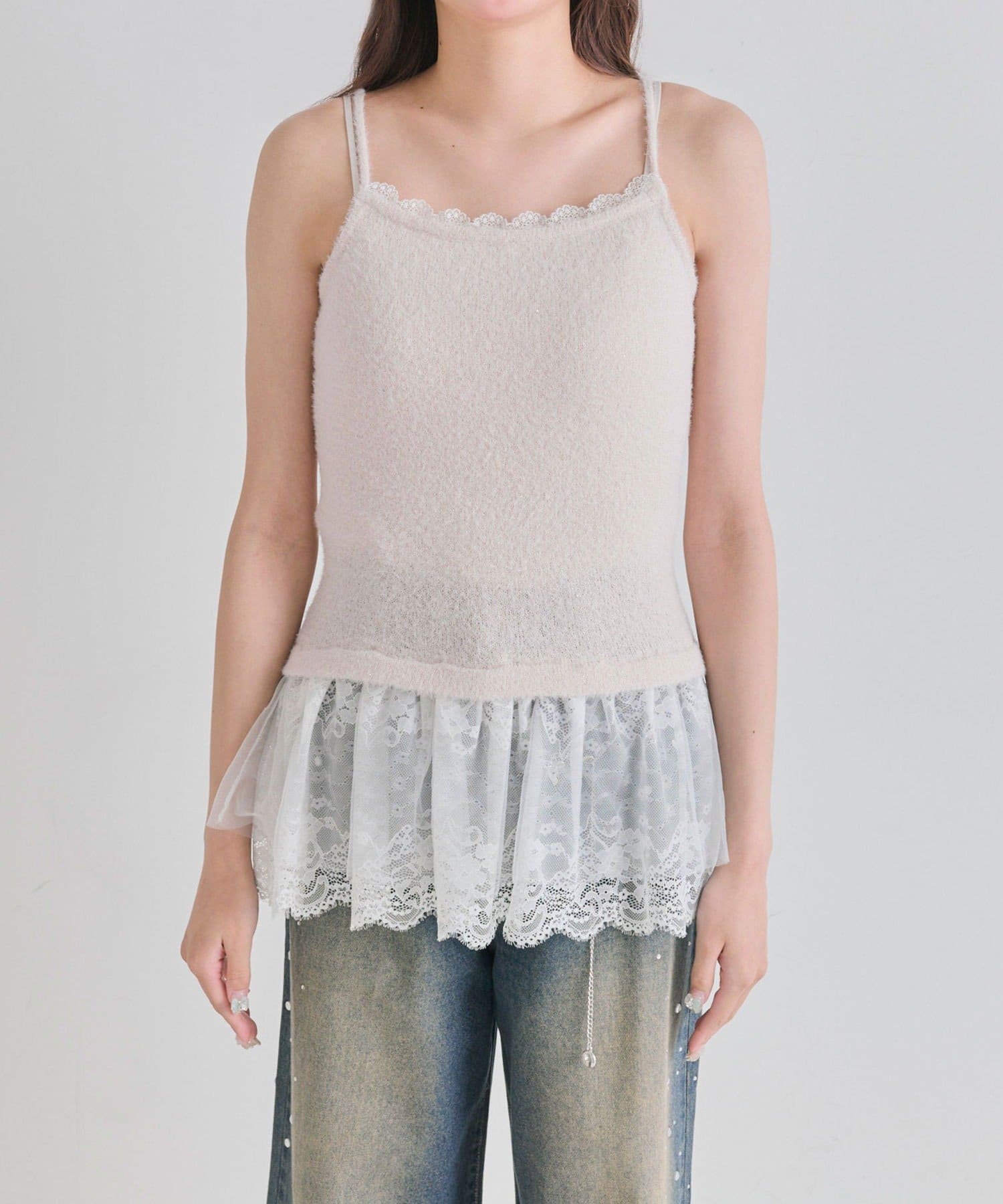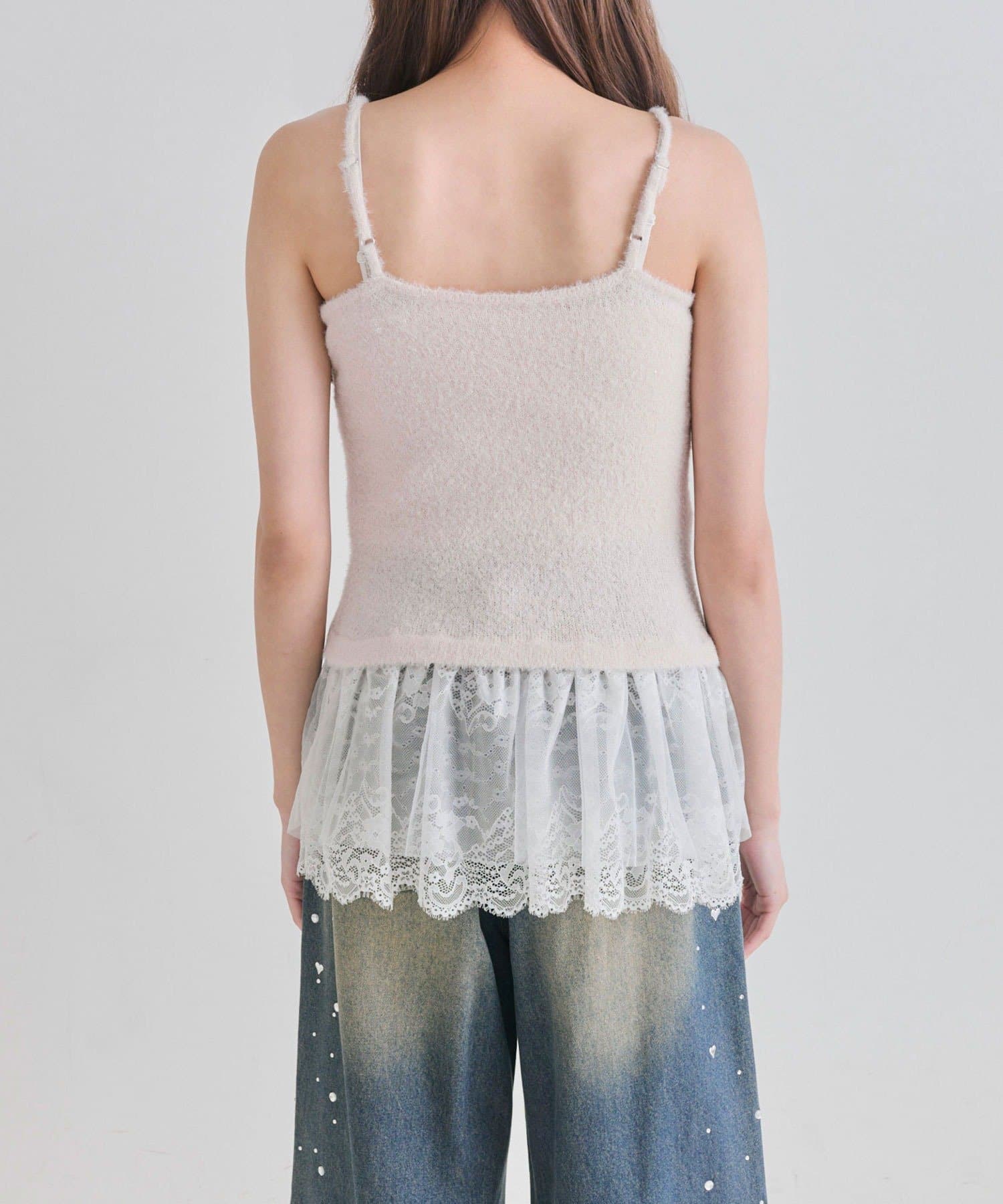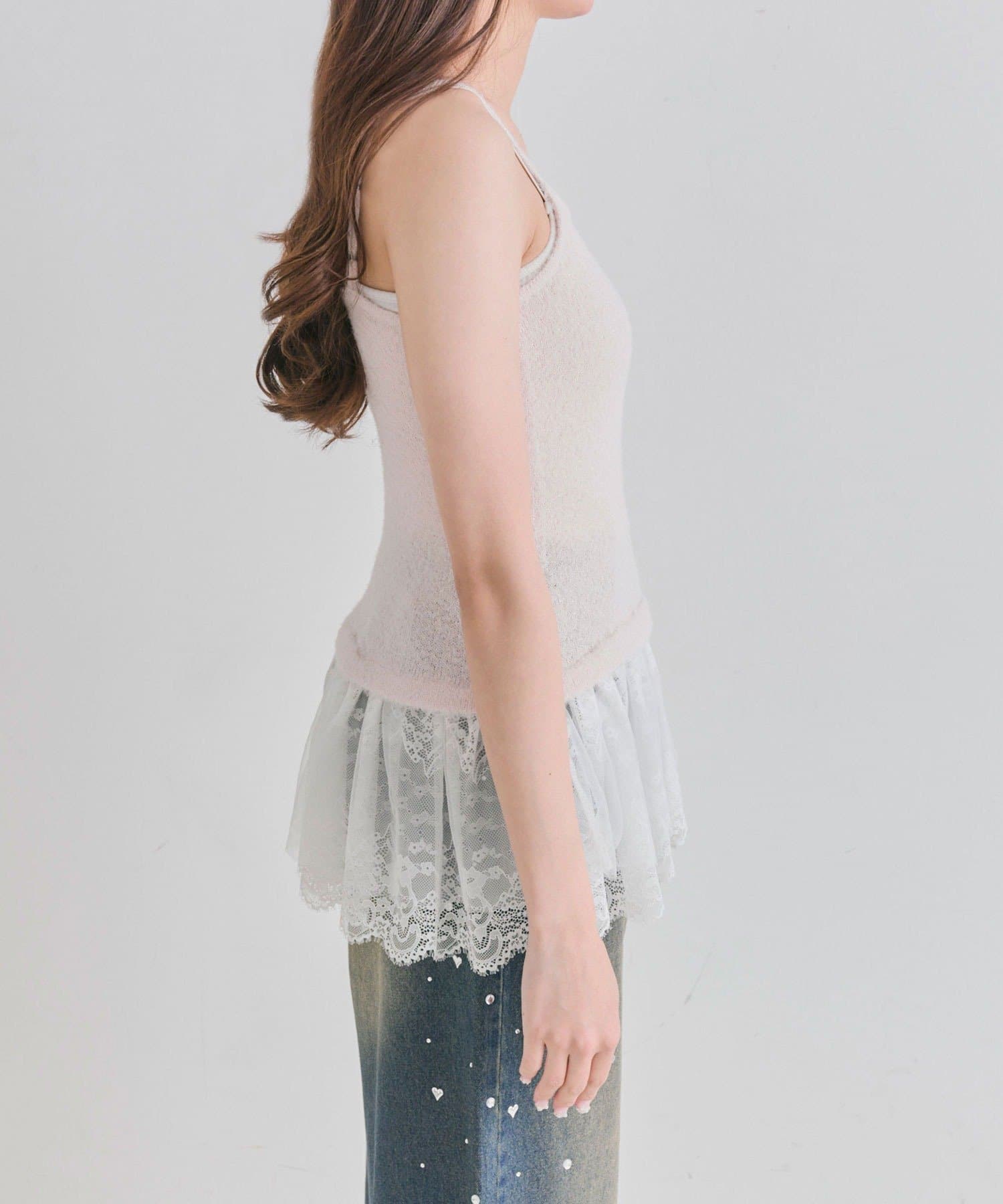 ・キャミの裾には幅広の繊細なレースを施し、トレンド感のあるペプラムデザインに仕上げました。
