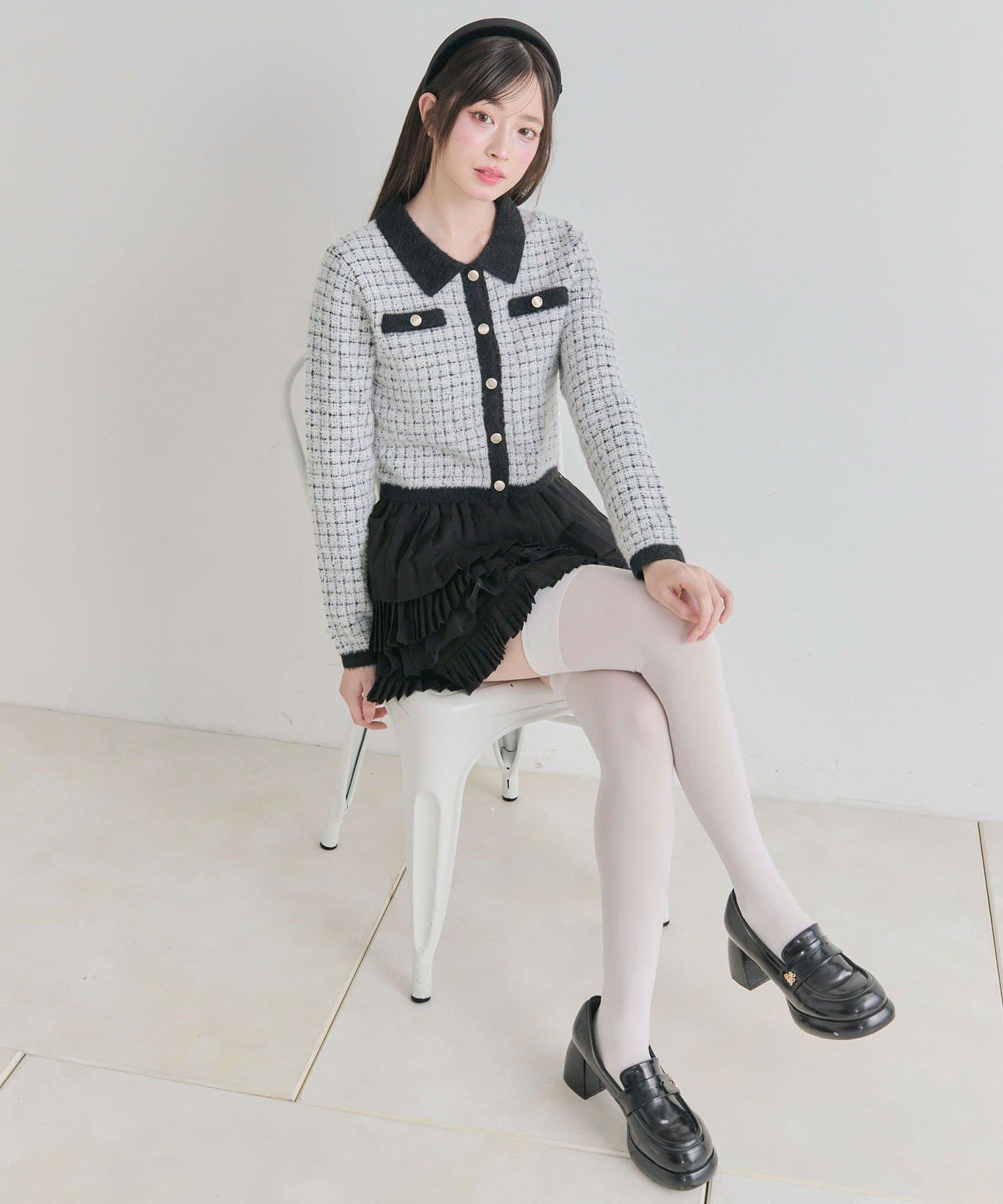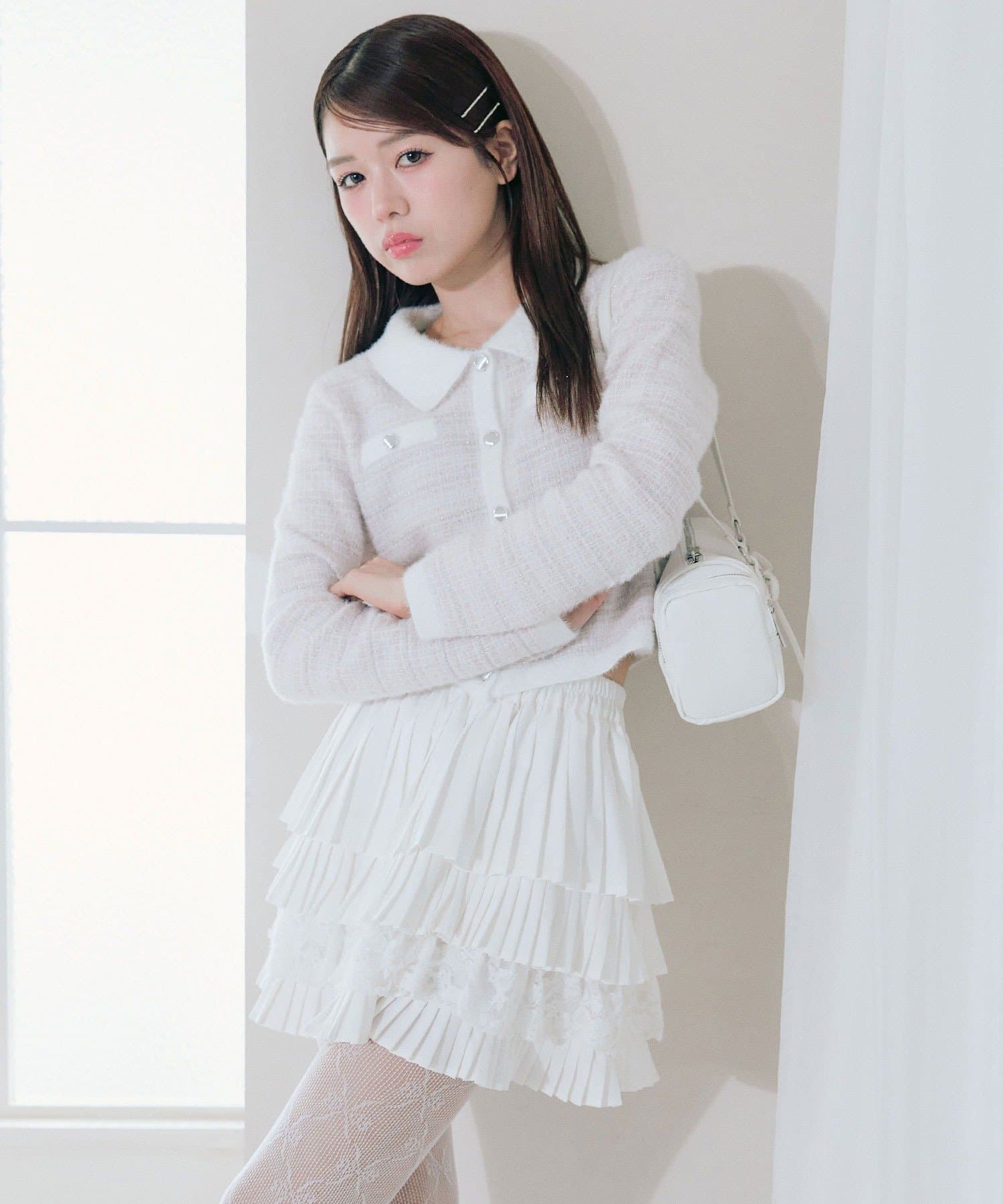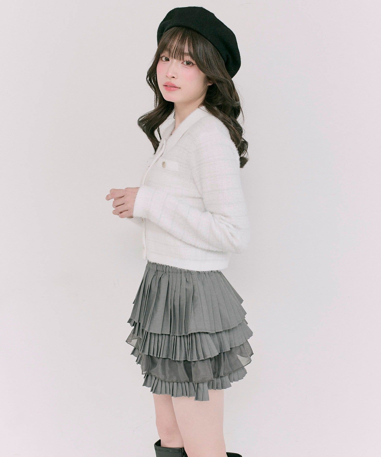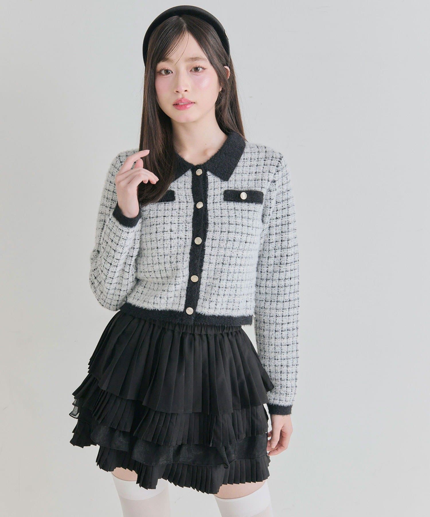 ・プリーツやティアードのミニスカート合わせで、ガーリーにまとめるのがおすすめ。