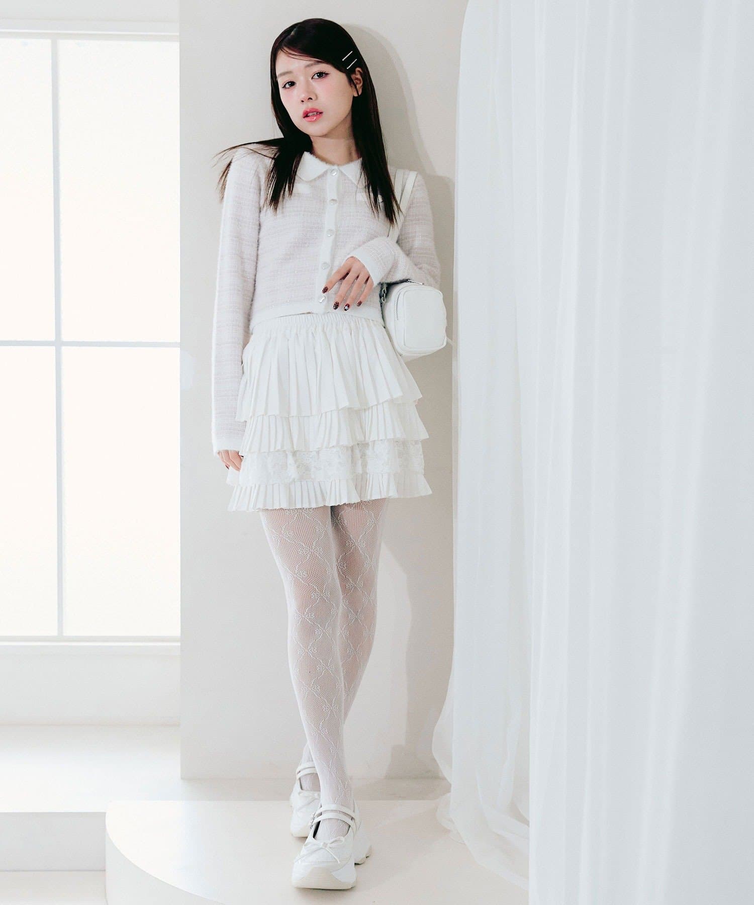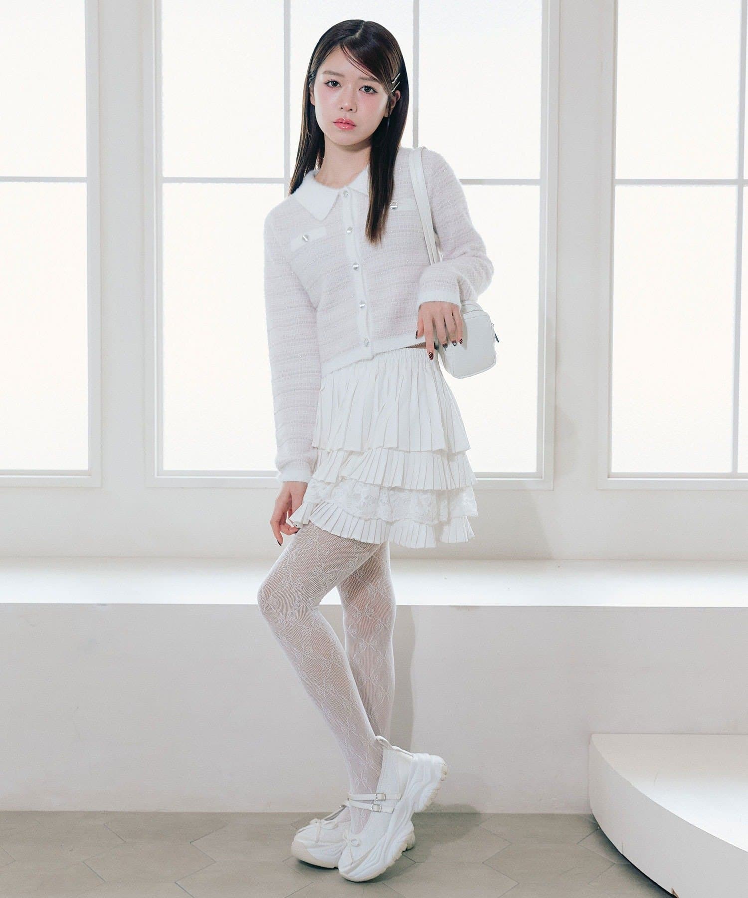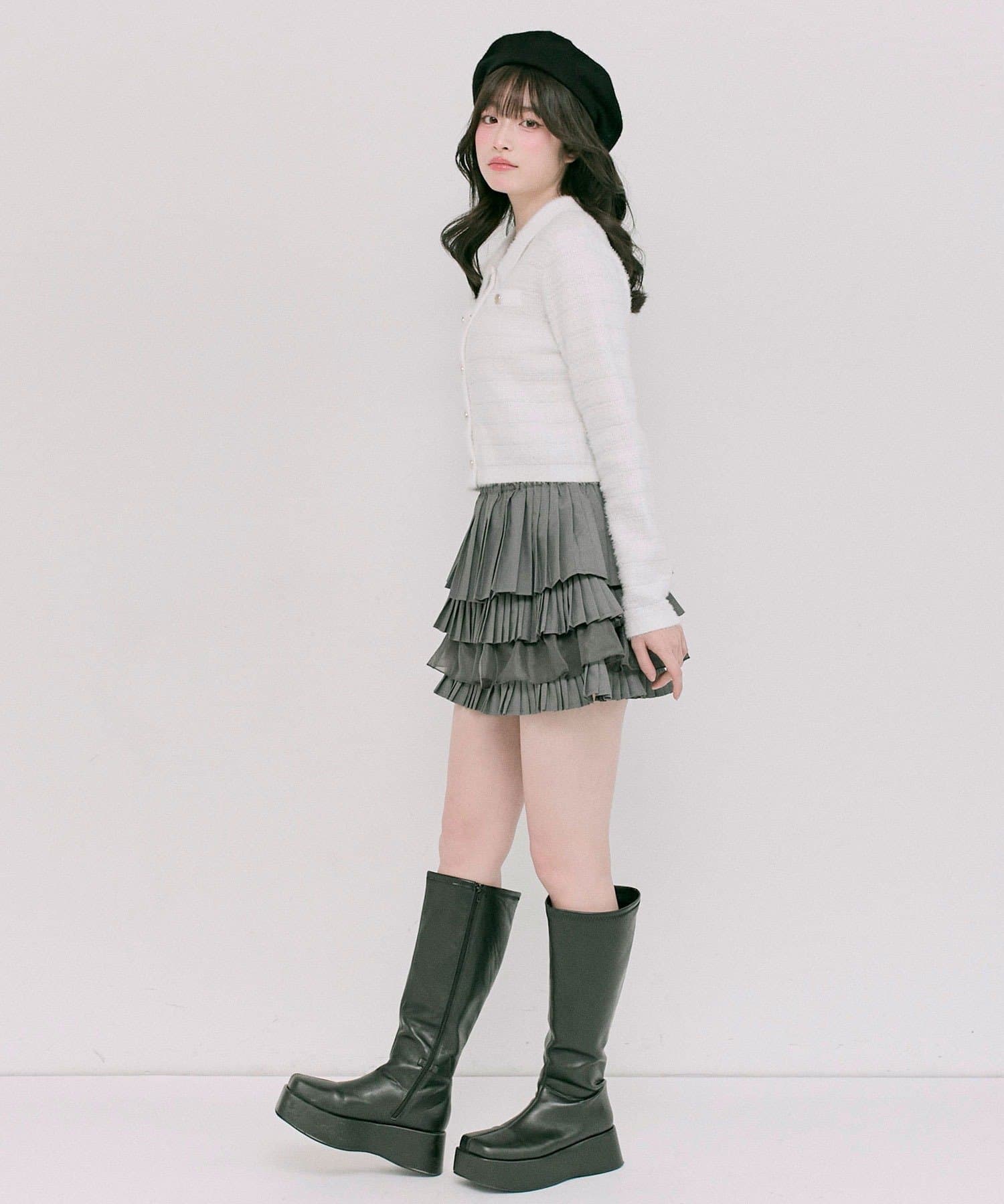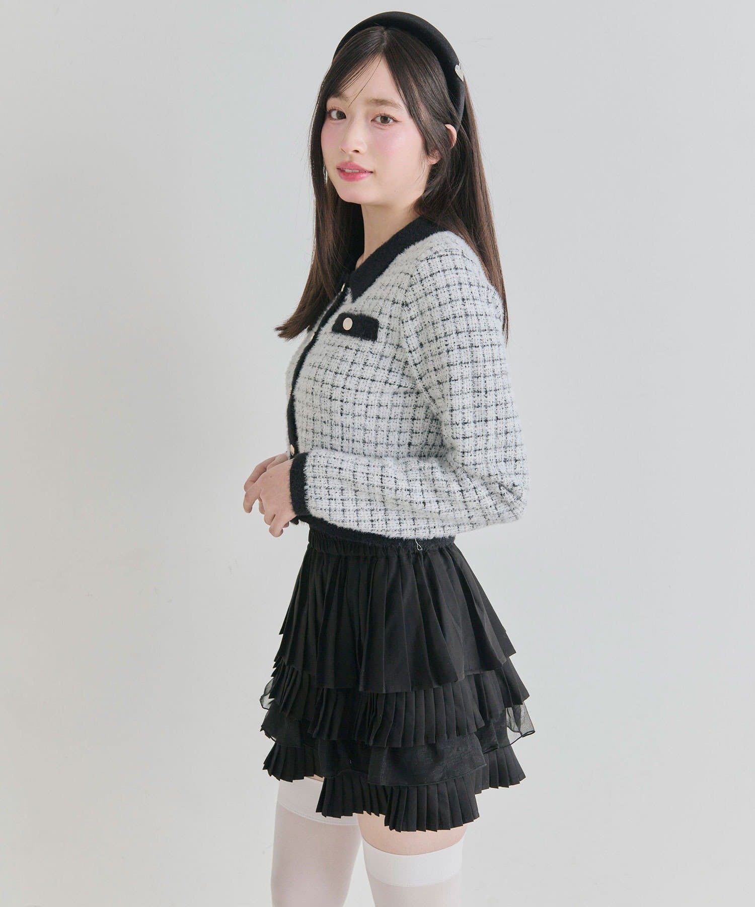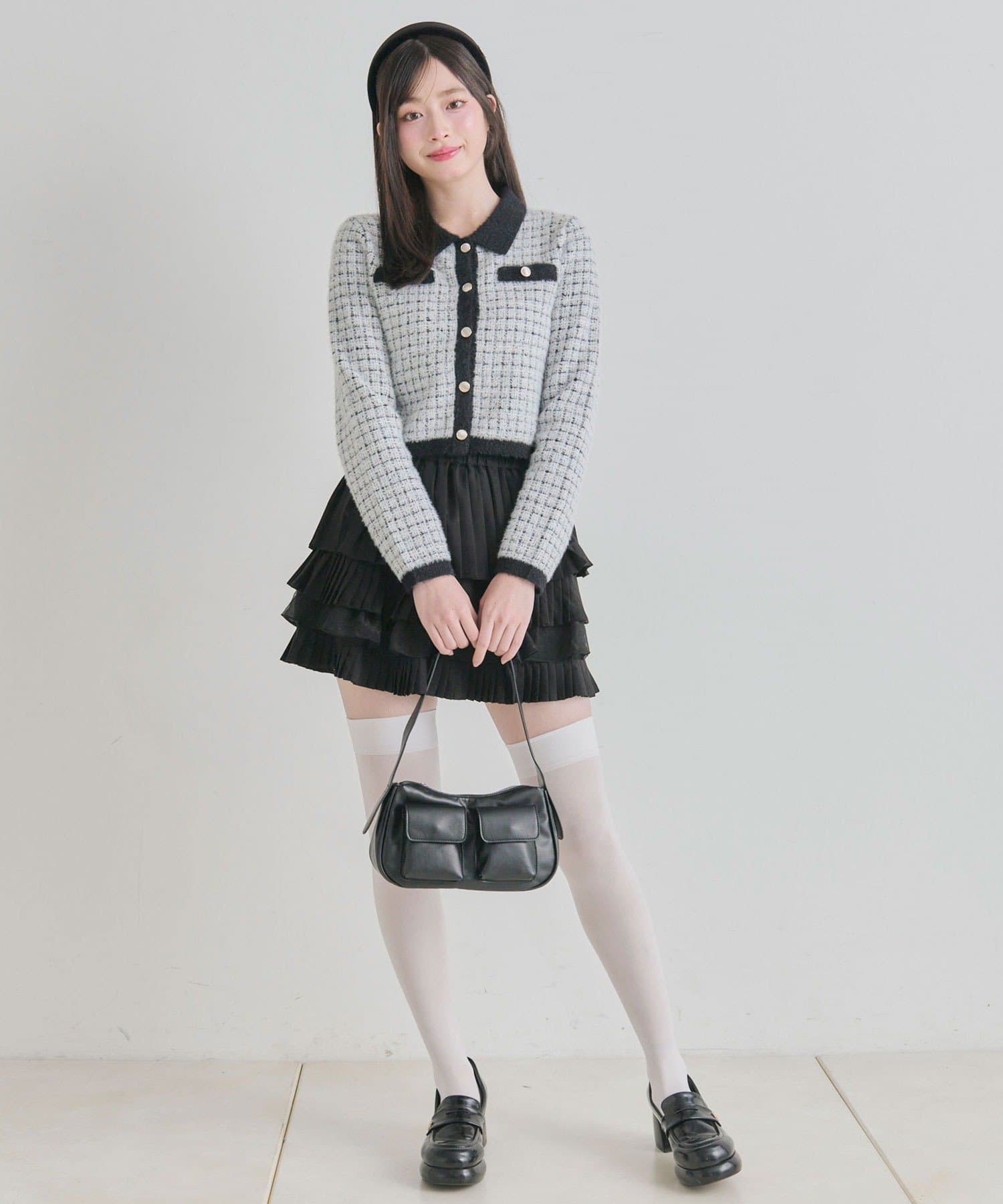 ・プリーツやティアードのミニスカート合わせで、ガーリーにまとめるのがおすすめ。
