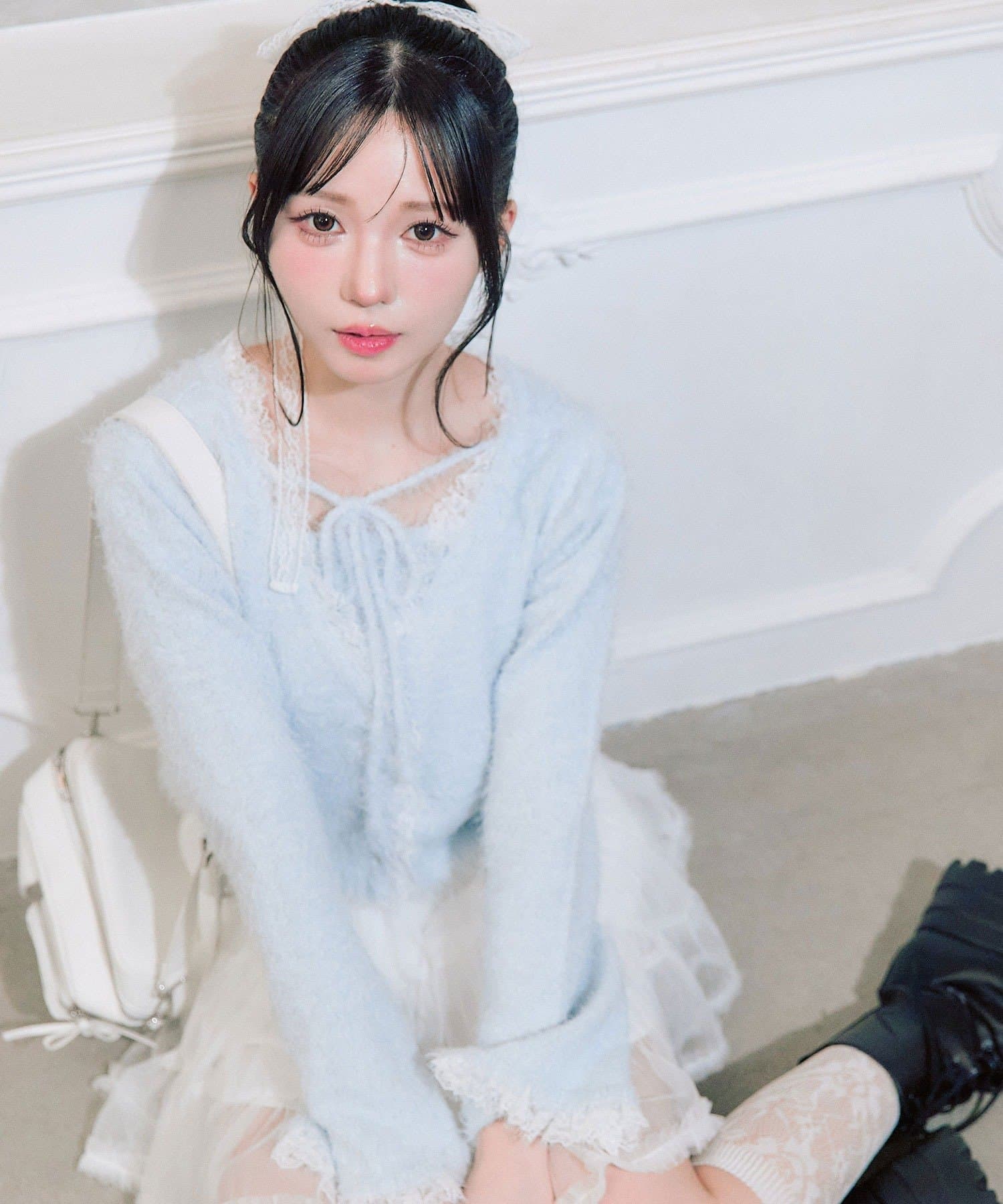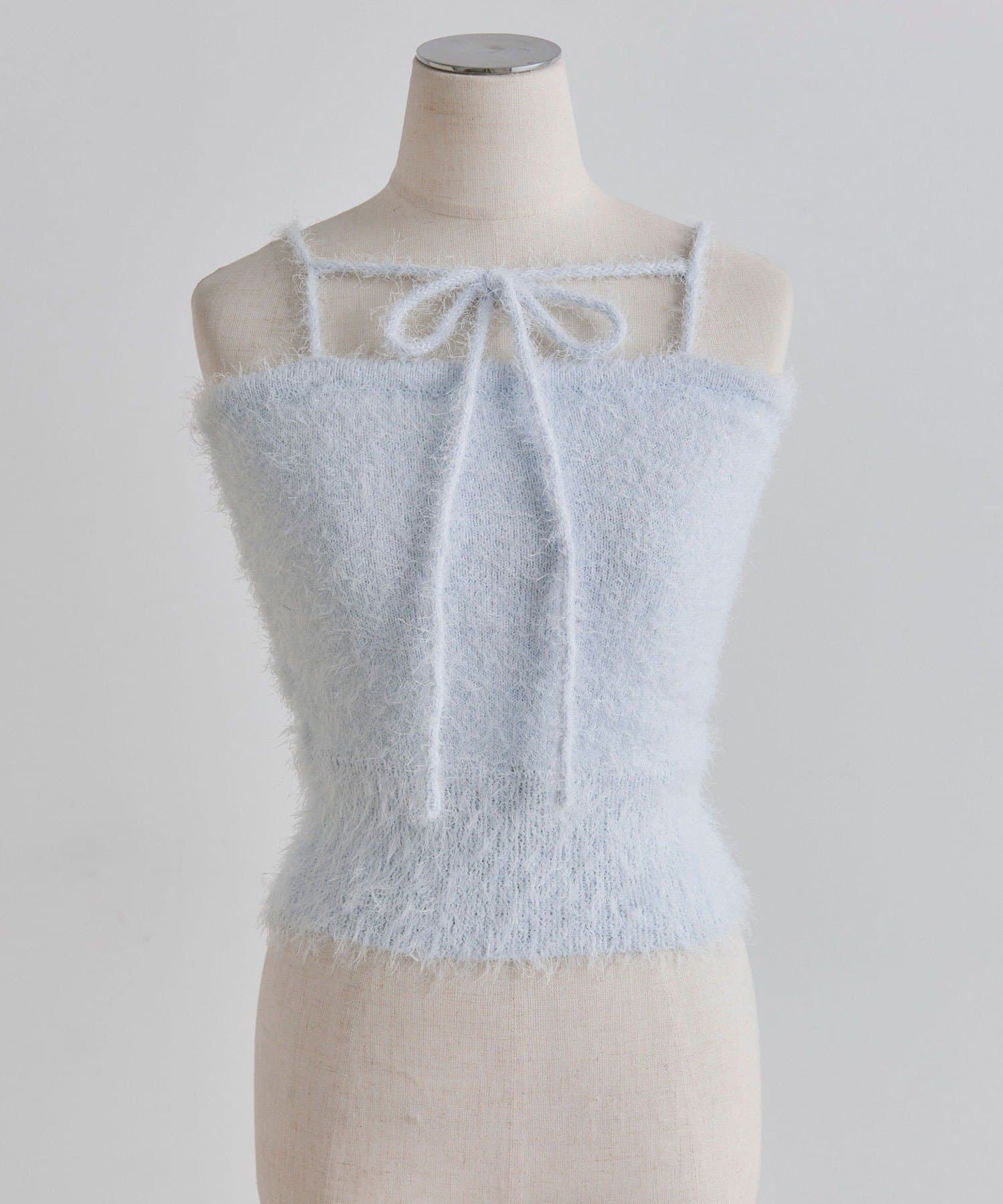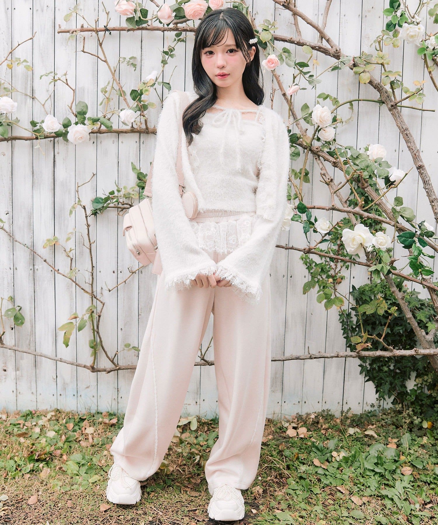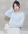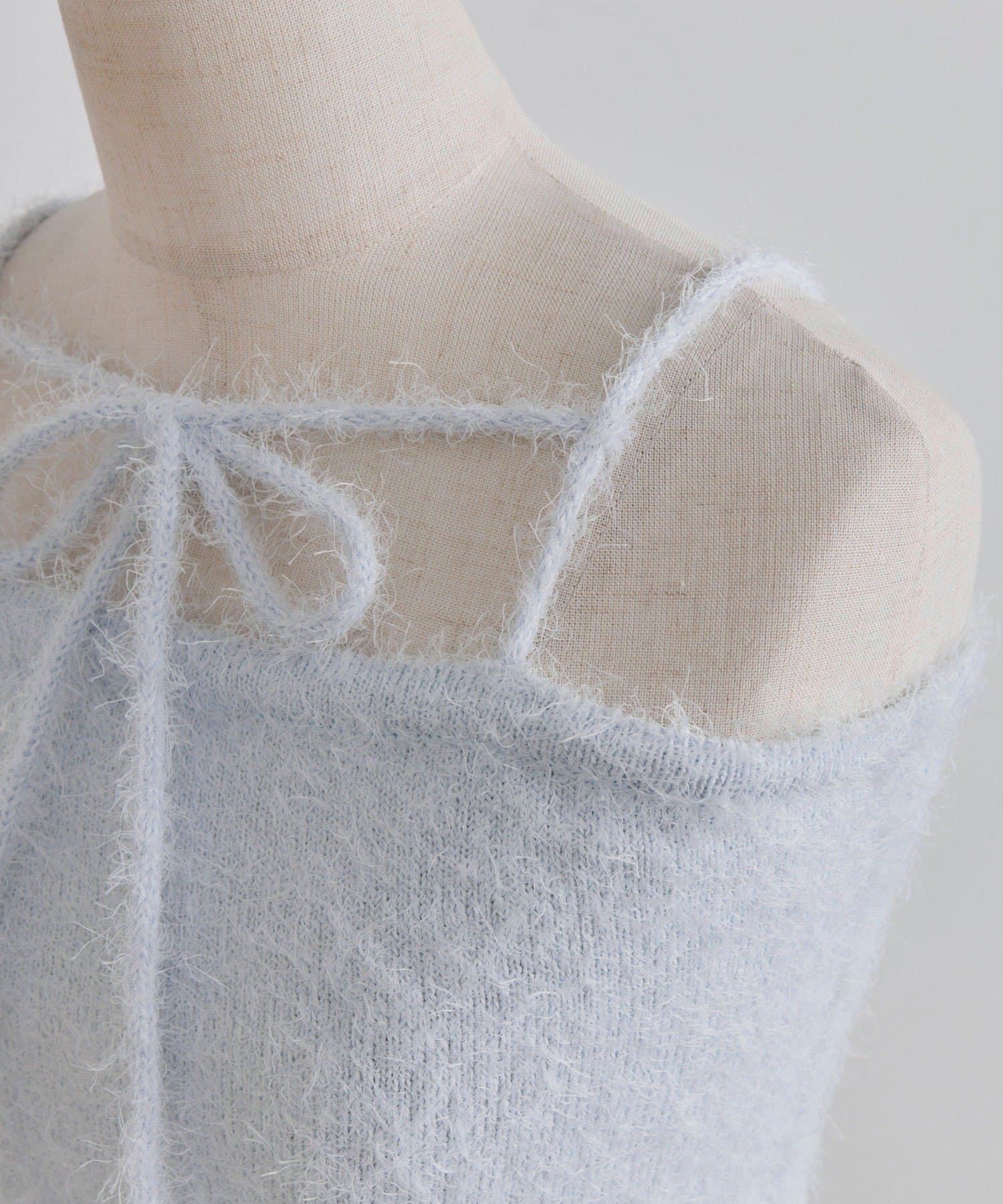 ・胸元にリボン付きでコーデに甘さをプラスするデザイン。