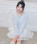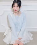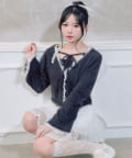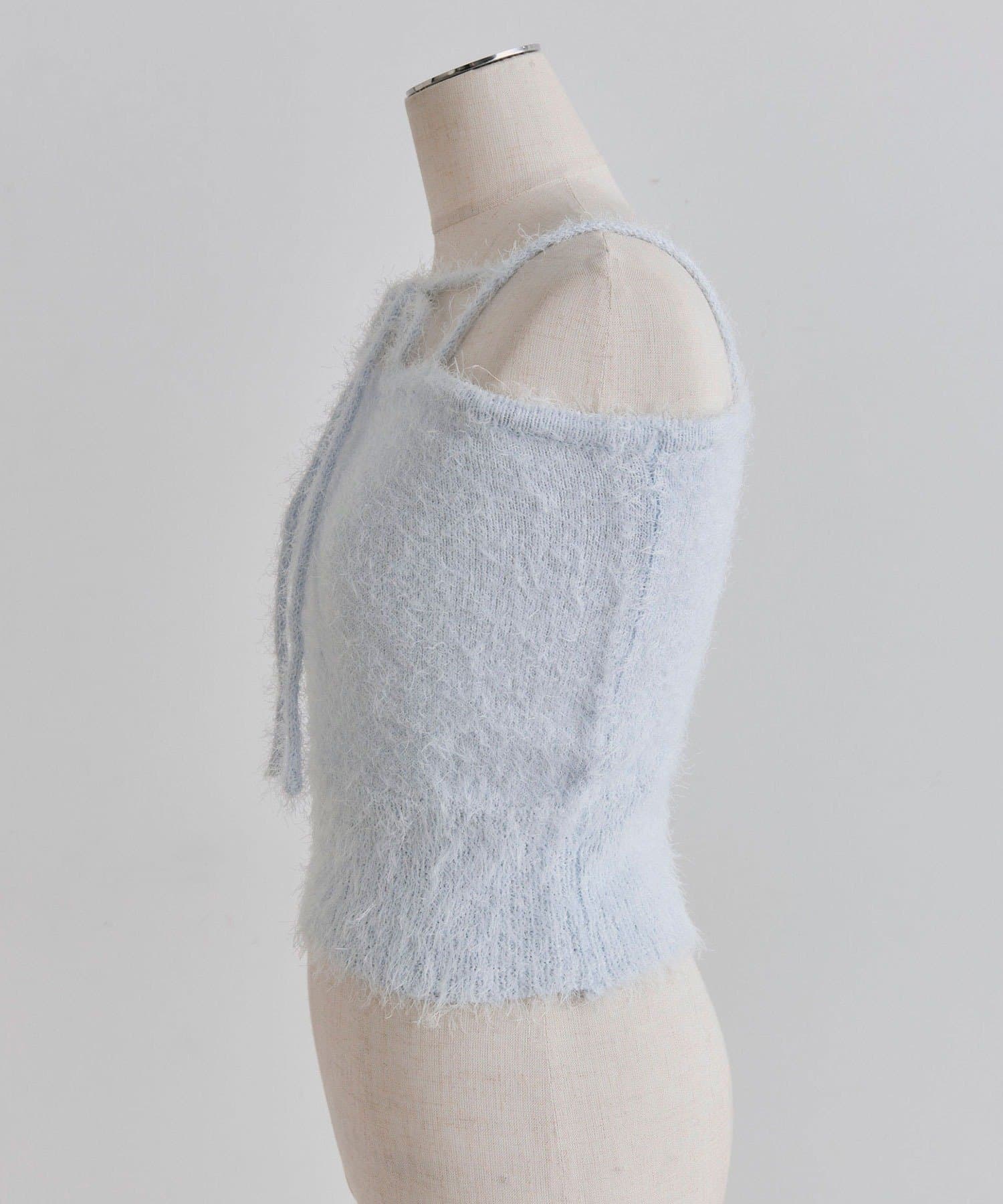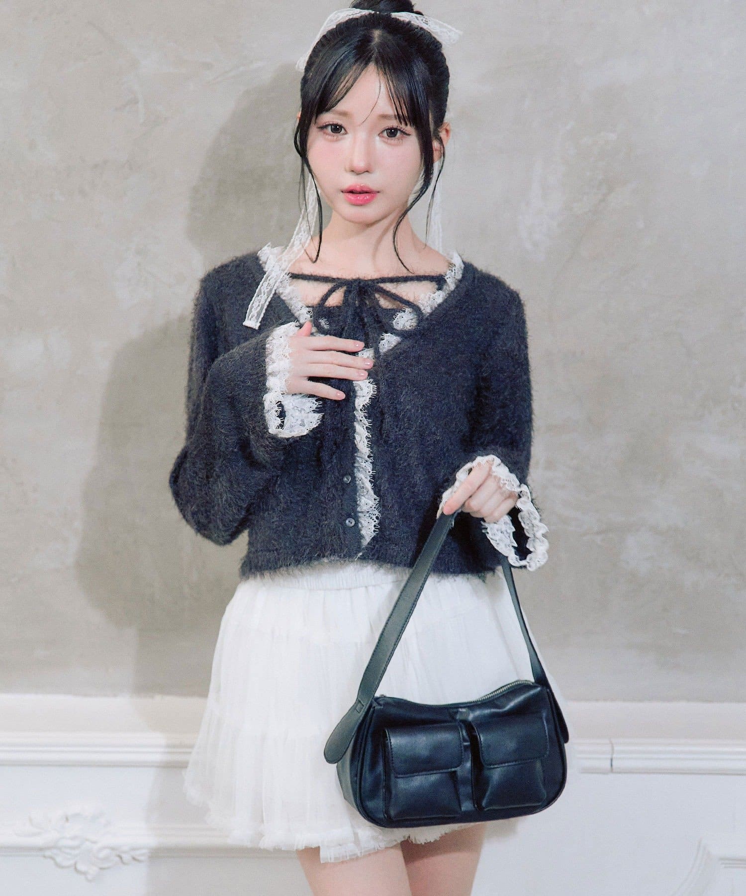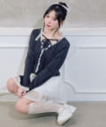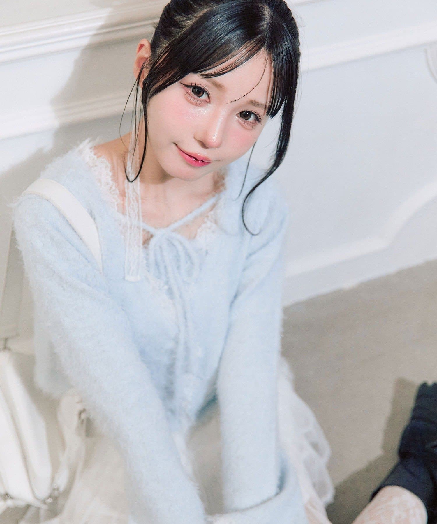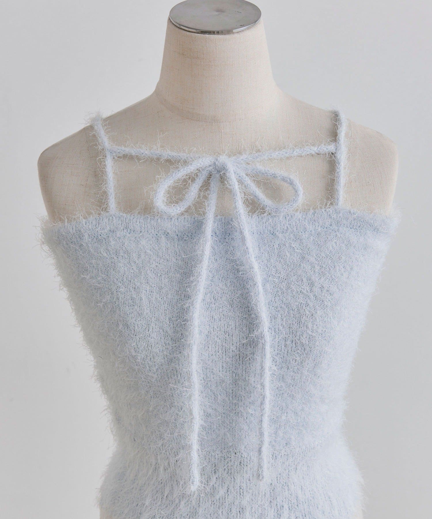 ・胸元にリボン付きでコーデに甘さをプラスするデザイン。