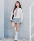 ・プリーツスカートでガーリーにも、デニム合わせでカジュアルにも着回せます。