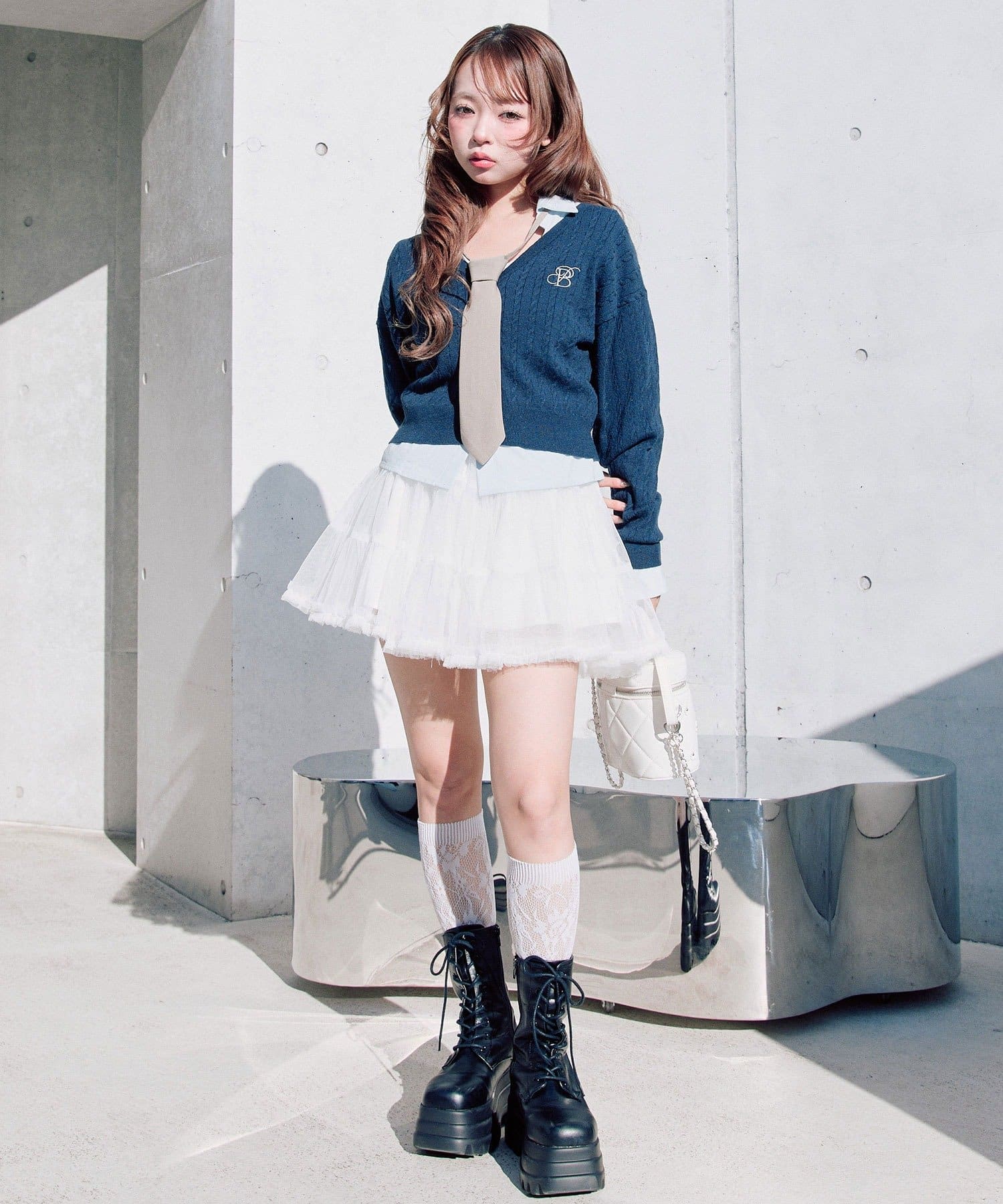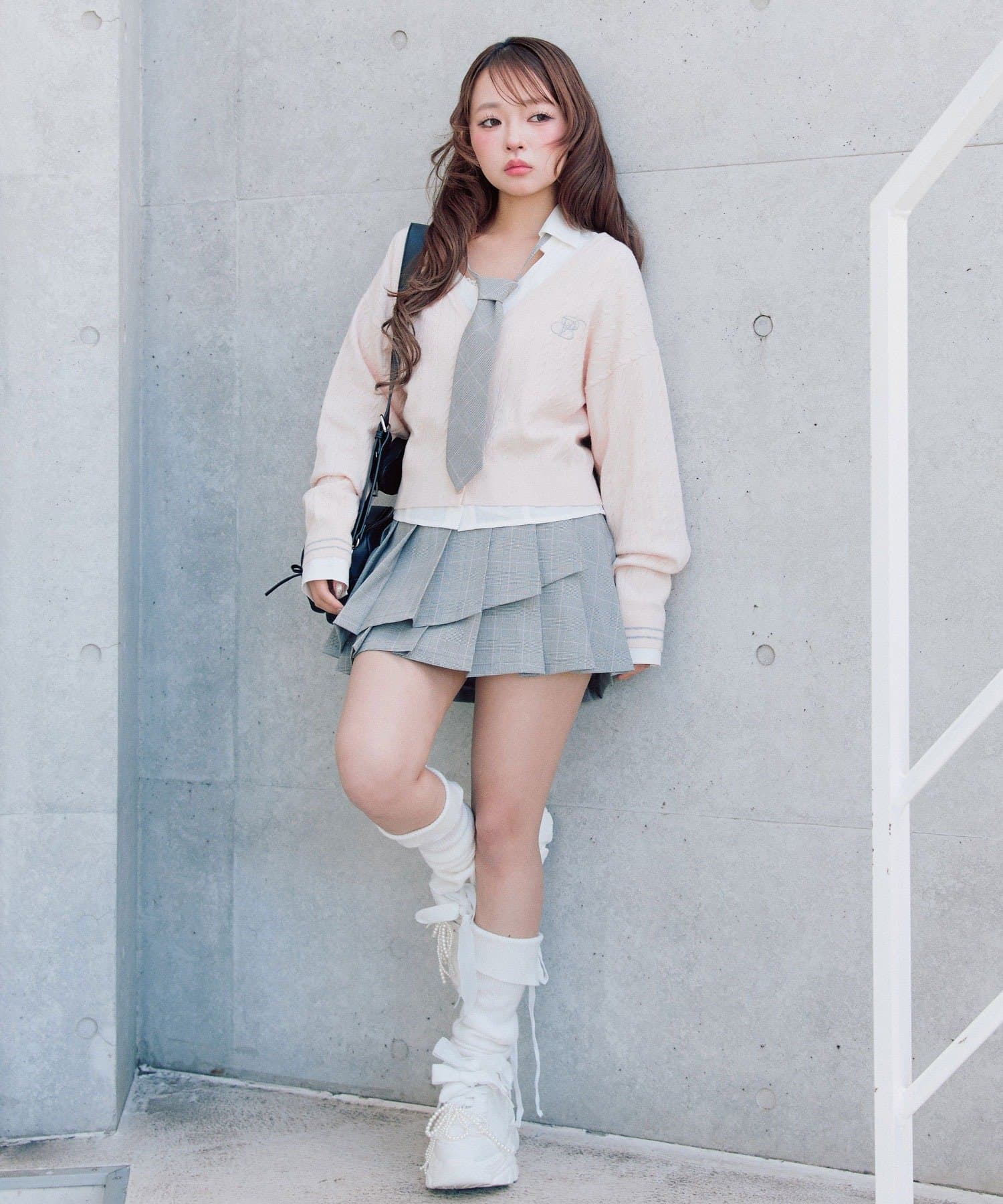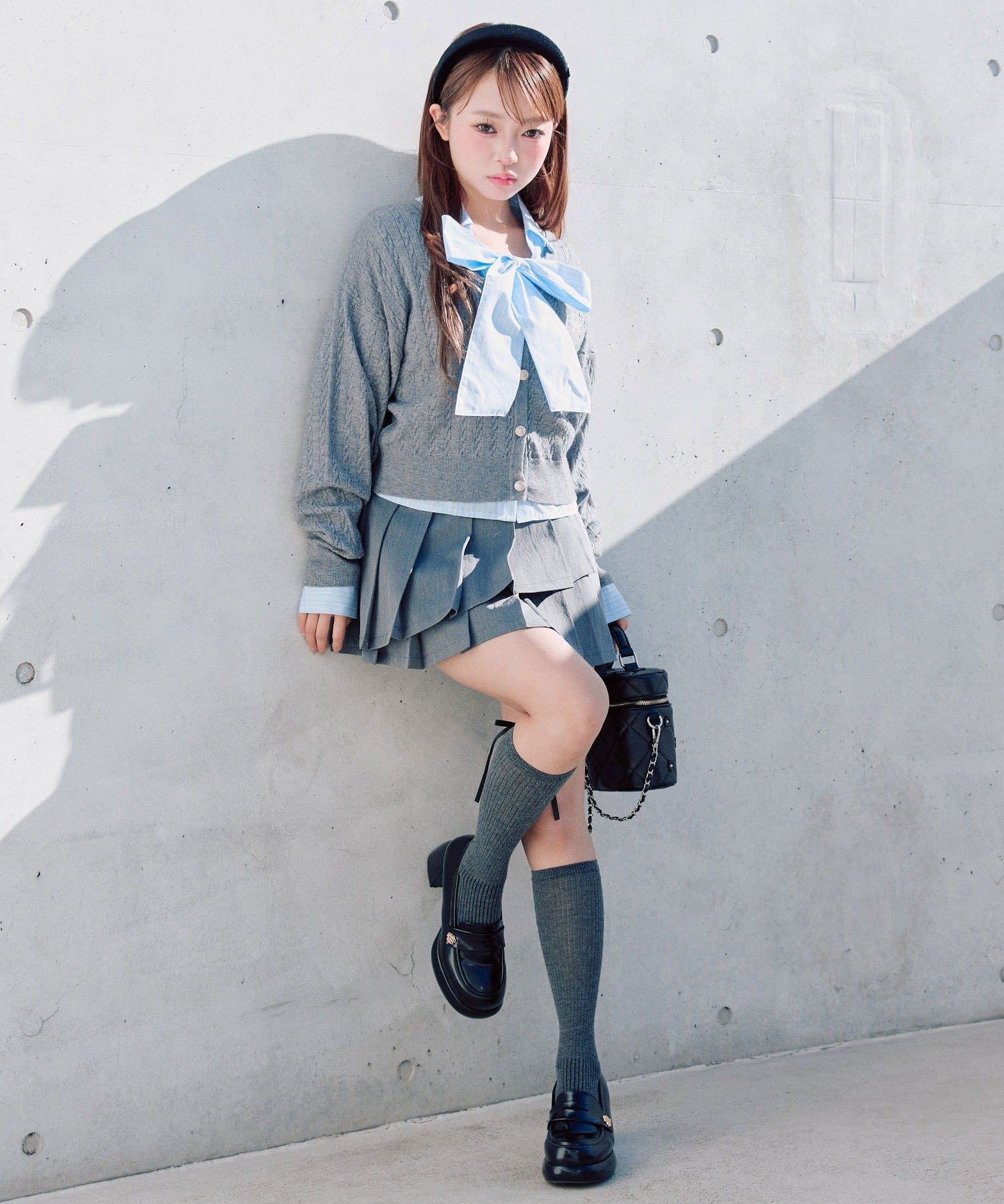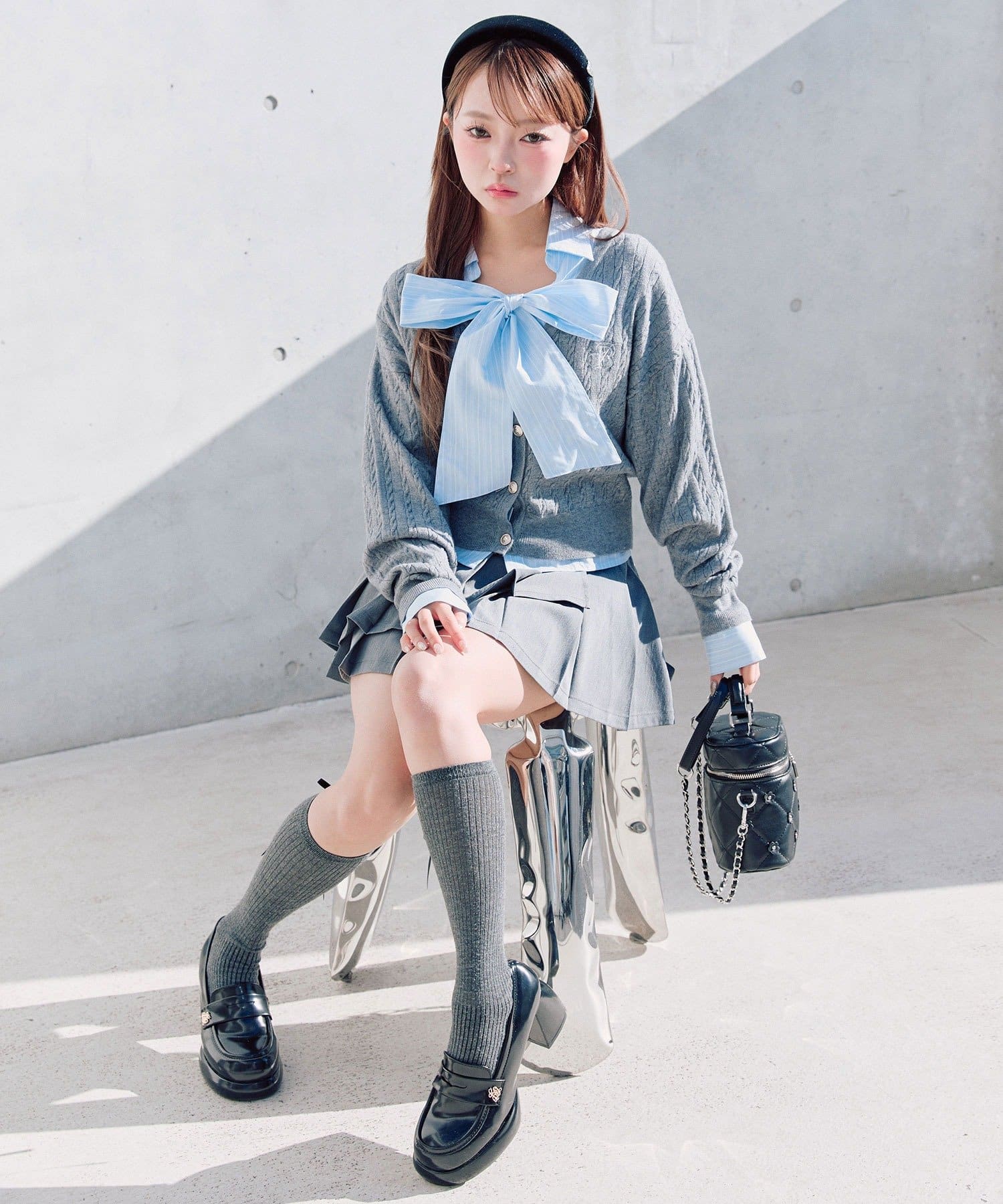 ・ボウタイブラウスやシャツをレイヤードした、王道プレッピーコーデがおすすめ。
