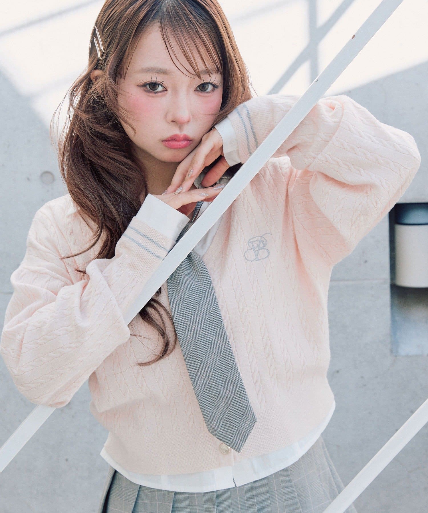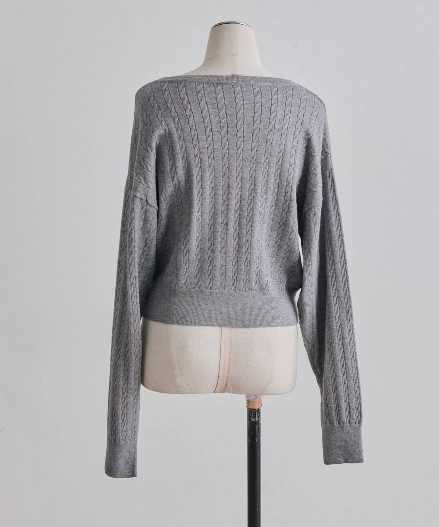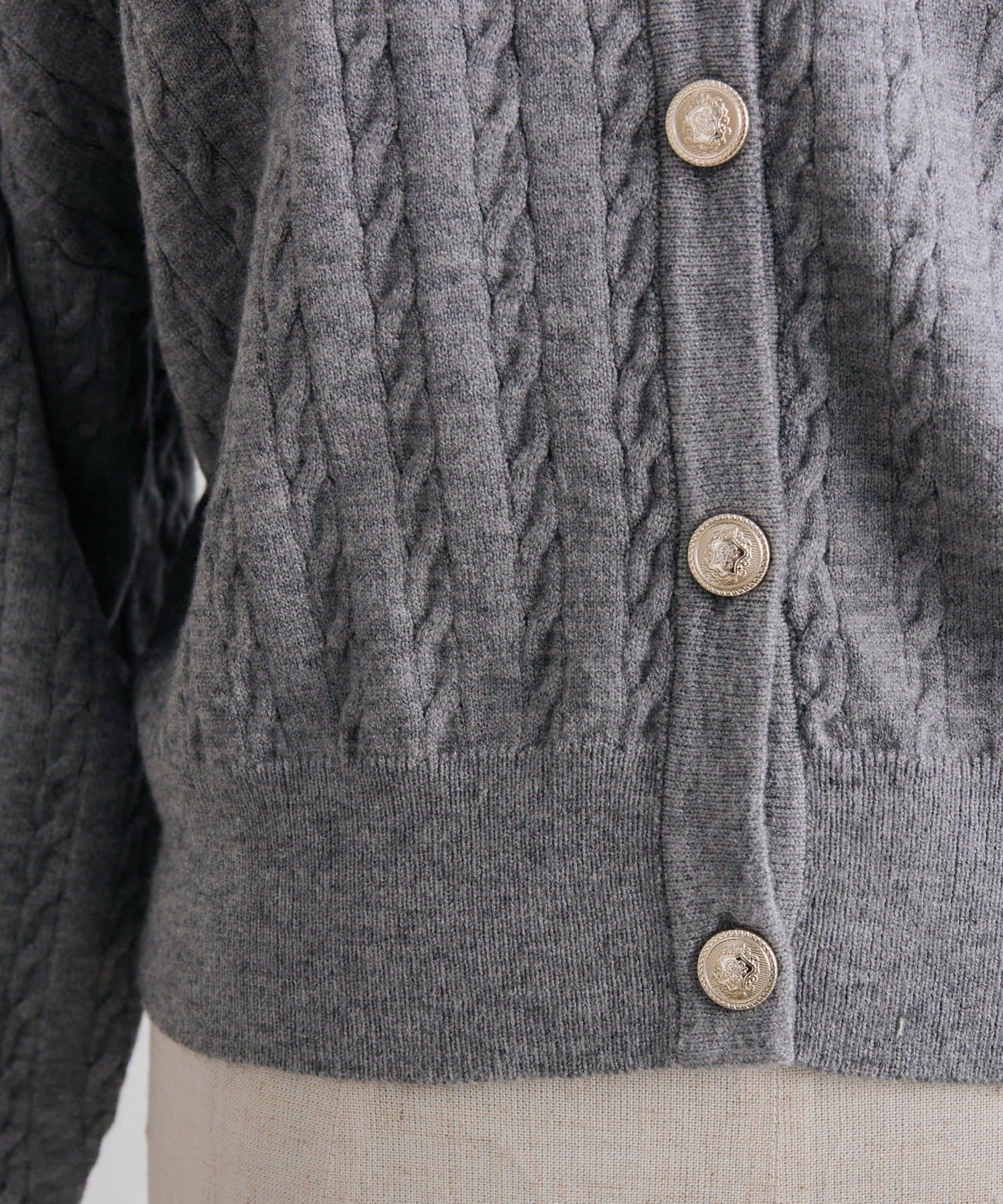 ・縦ラインを強調するケーブル編みが、程よい立体感と上品な印象を演出します。
