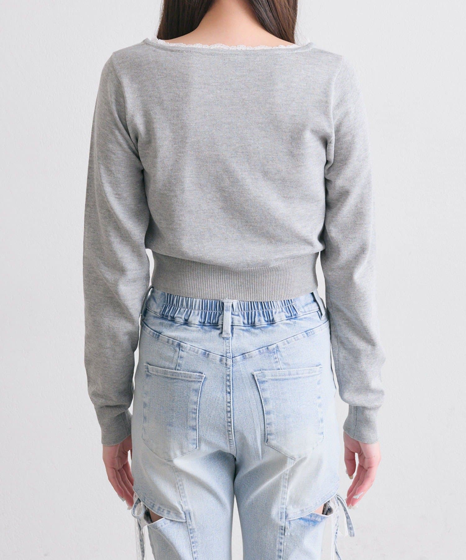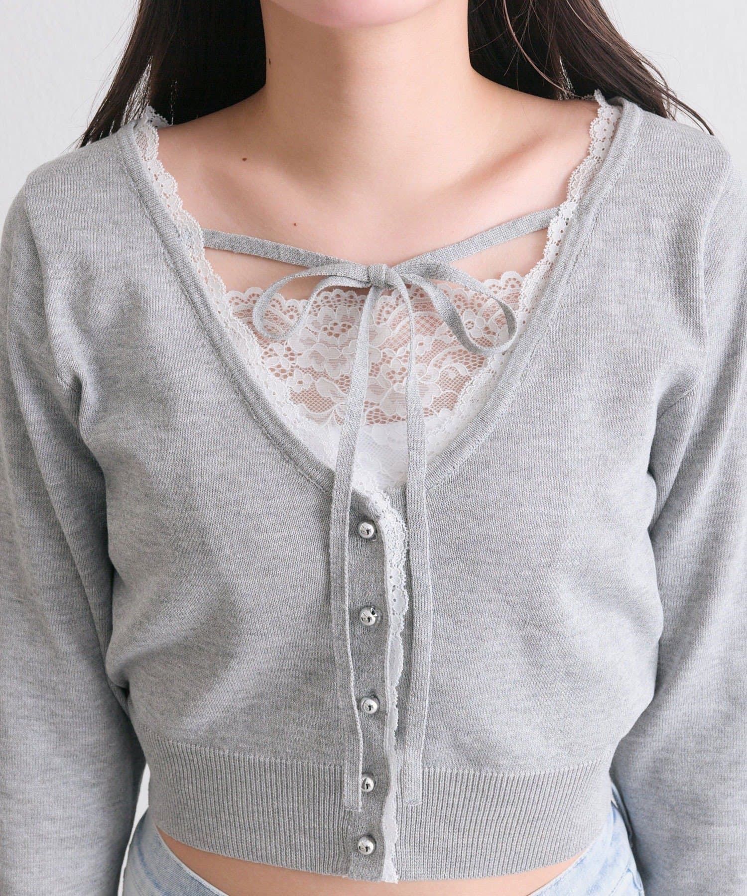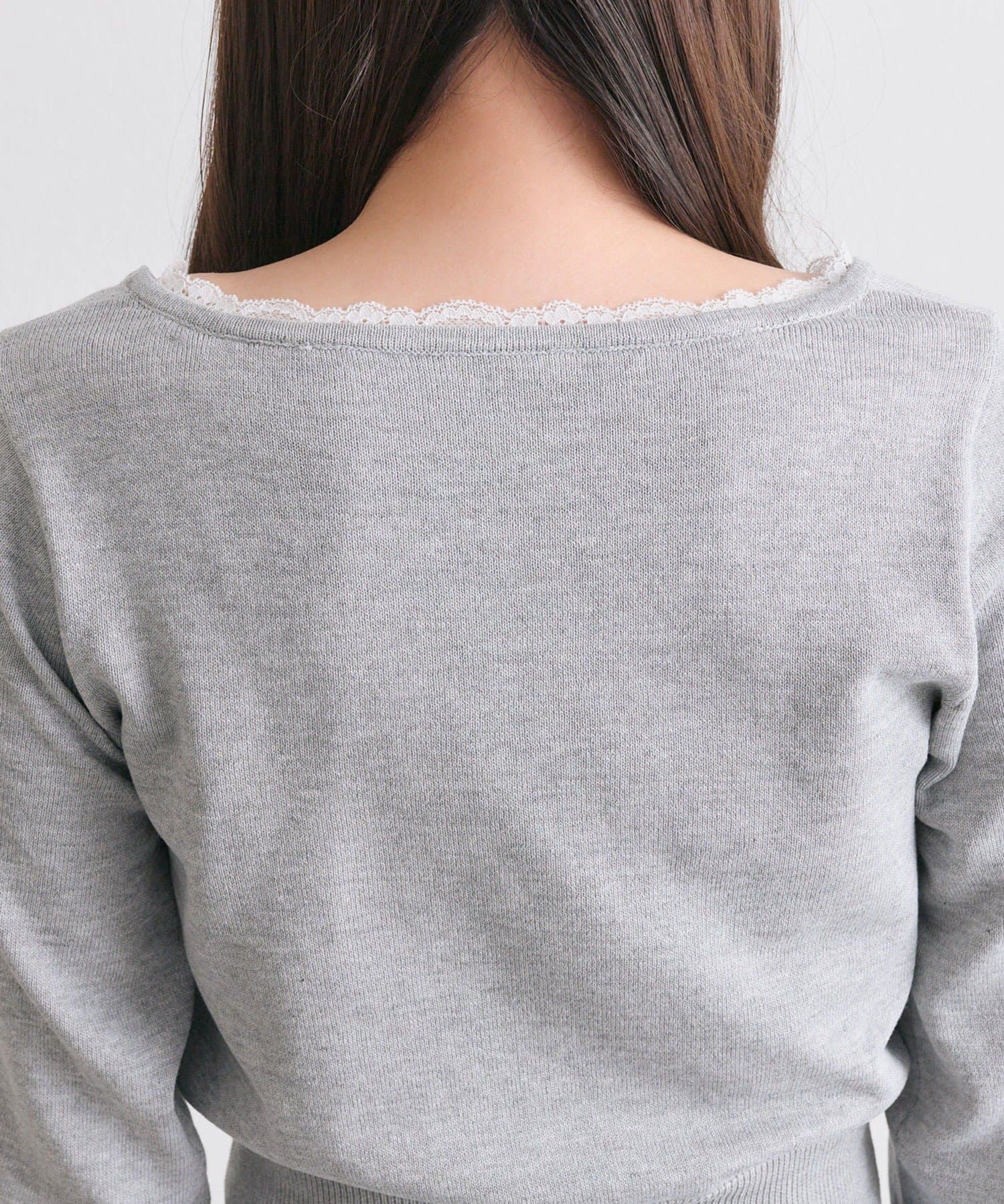 ・Vネックラインにあしらった繊細なレースで、デコルテをきれいに見せてくれます。