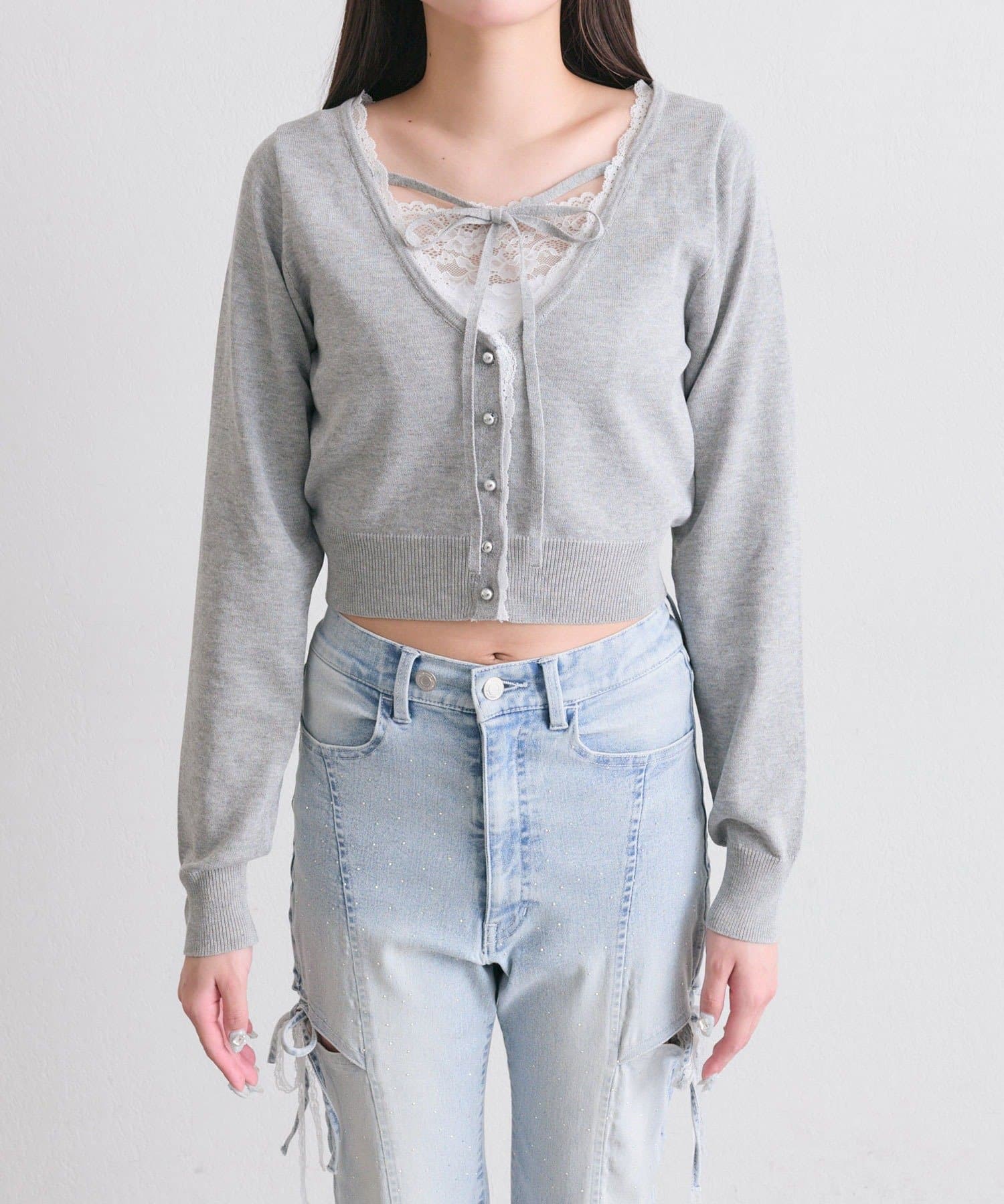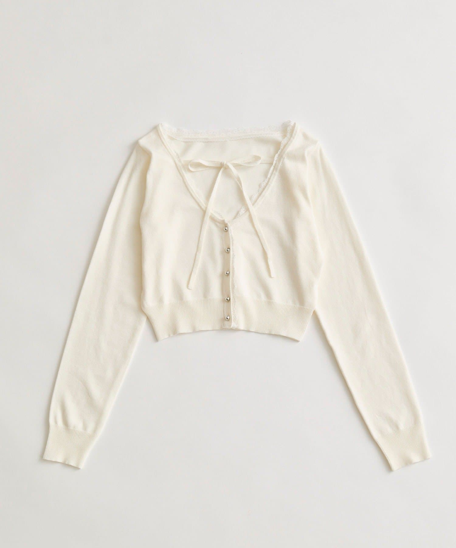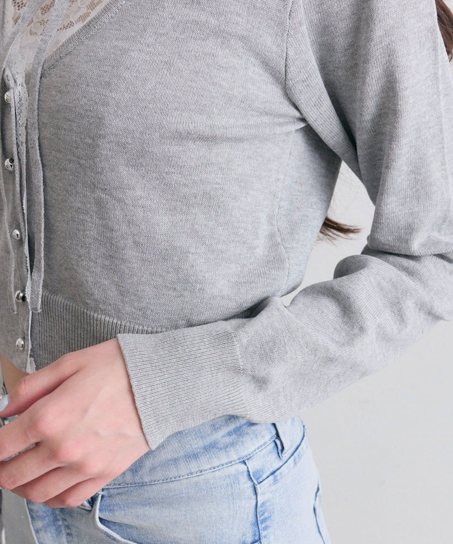 ・Vネックラインにあしらった繊細なレースで、デコルテをきれいに見せてくれます。