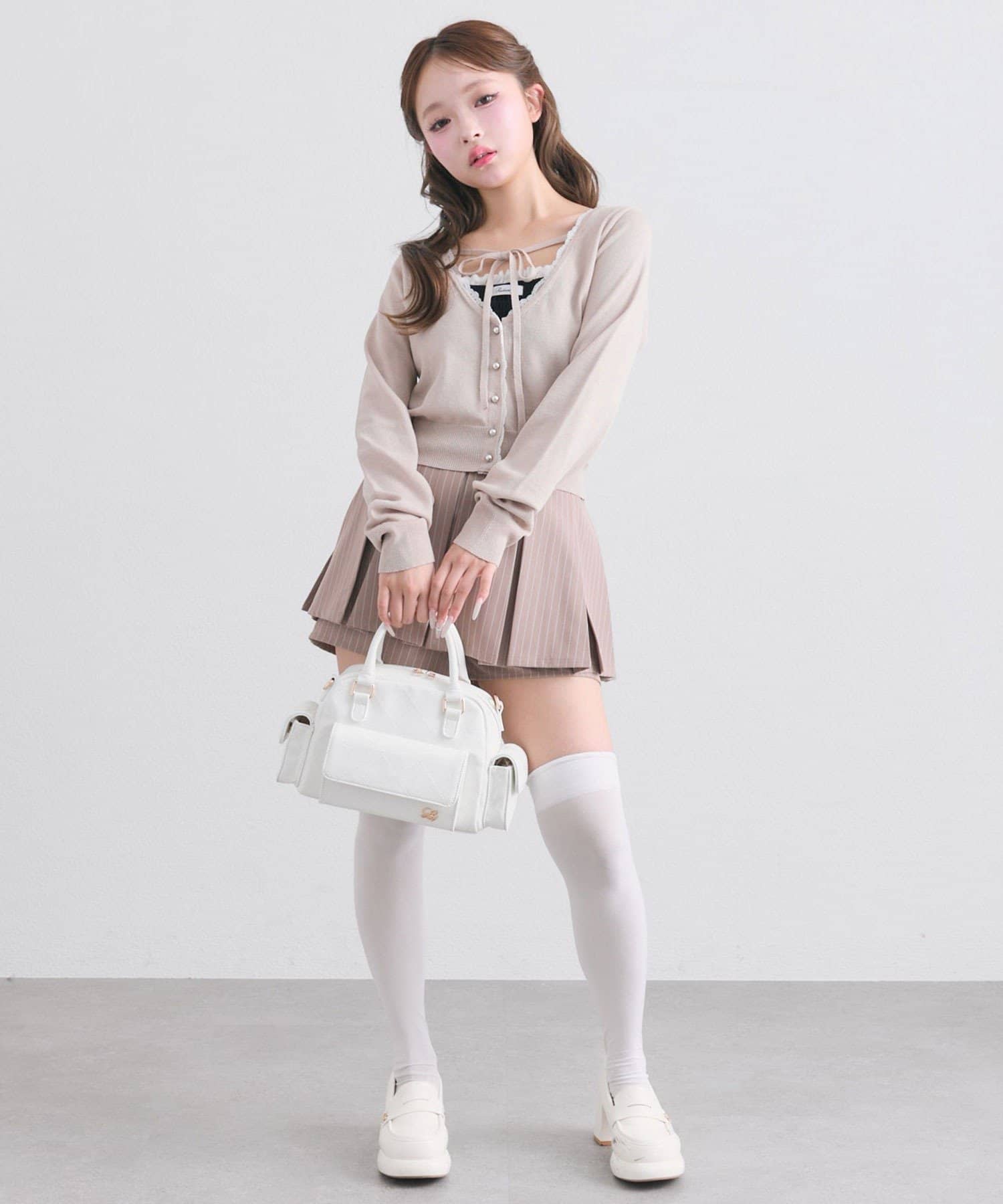 ・ミニスカートを合わせてとことんガーリーにまとめるのがおすすめ。