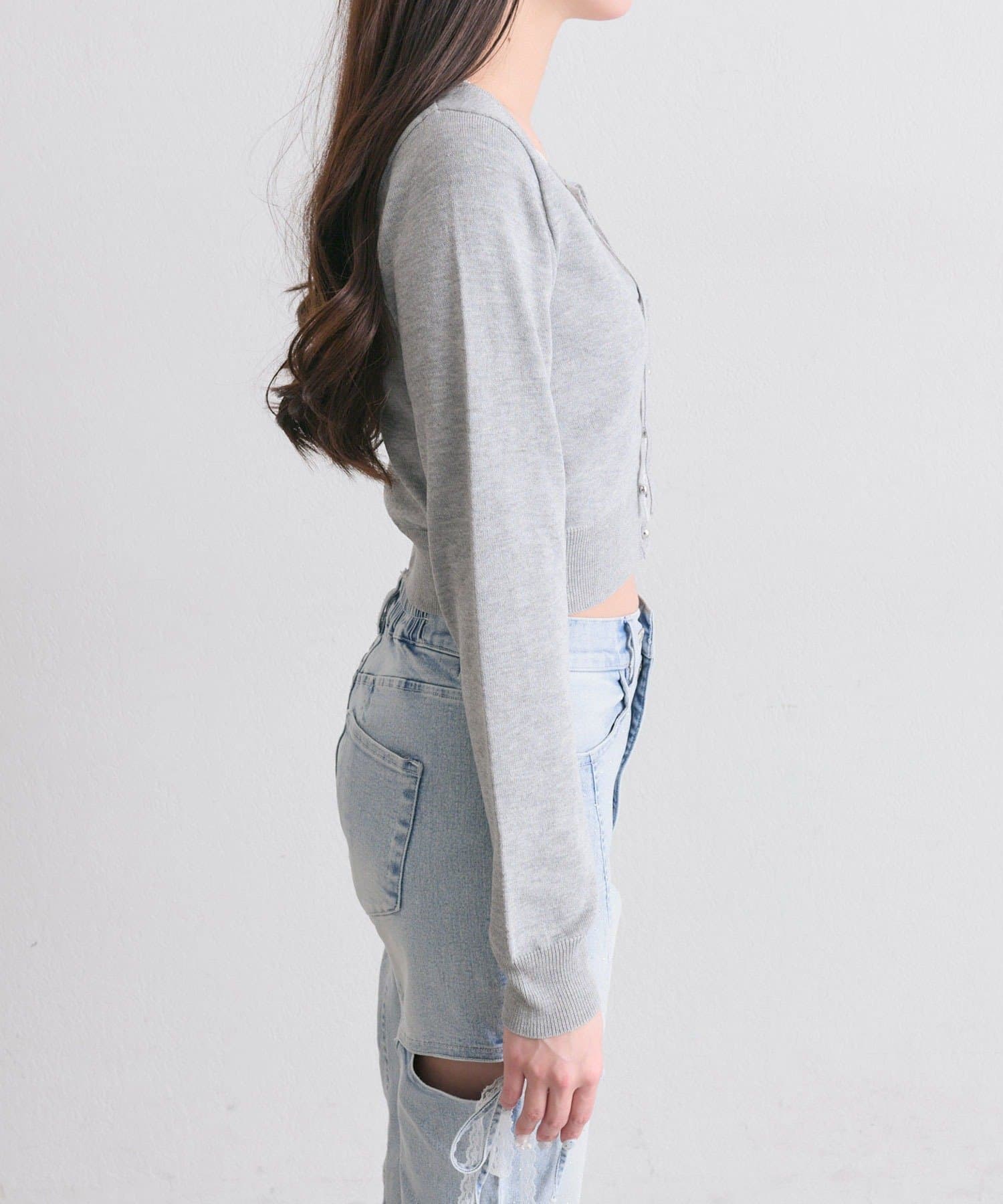 ・羽織りとしても、前を閉じてトップス風としても着られる万能カーデです。