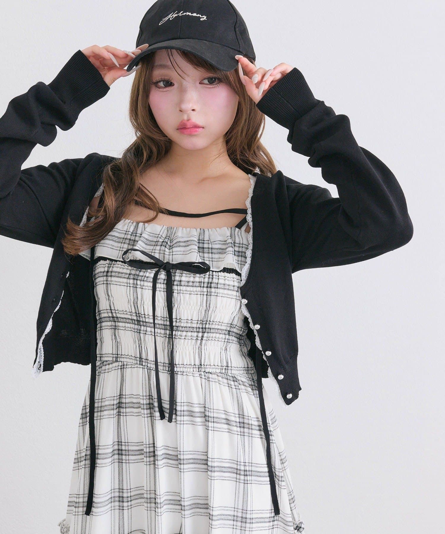 ・フロントで結ぶリボンが、顔まわりをぱっと華やかな印象に仕上げてくれます。