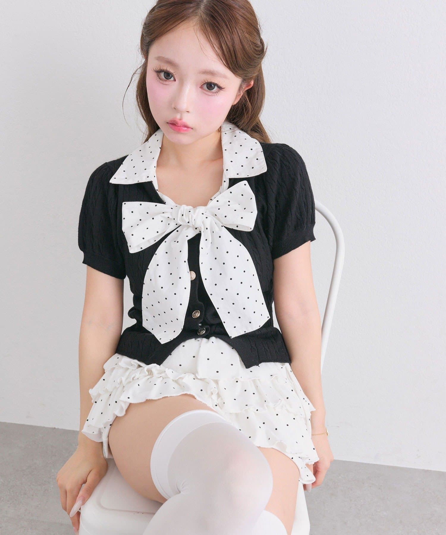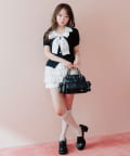 ・顔周りをパッと華やかにしてくれる、ボウタイリボンがポイント。