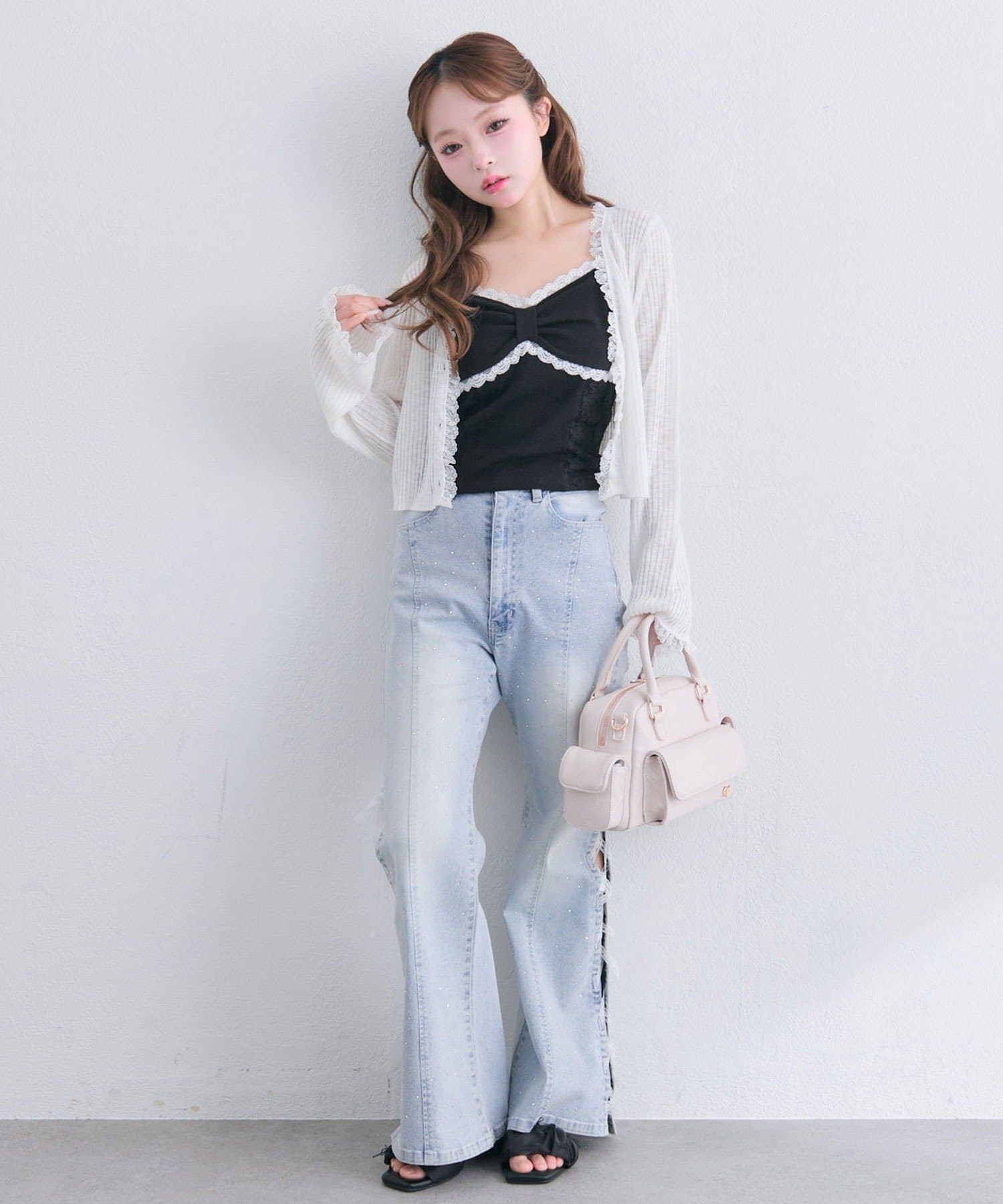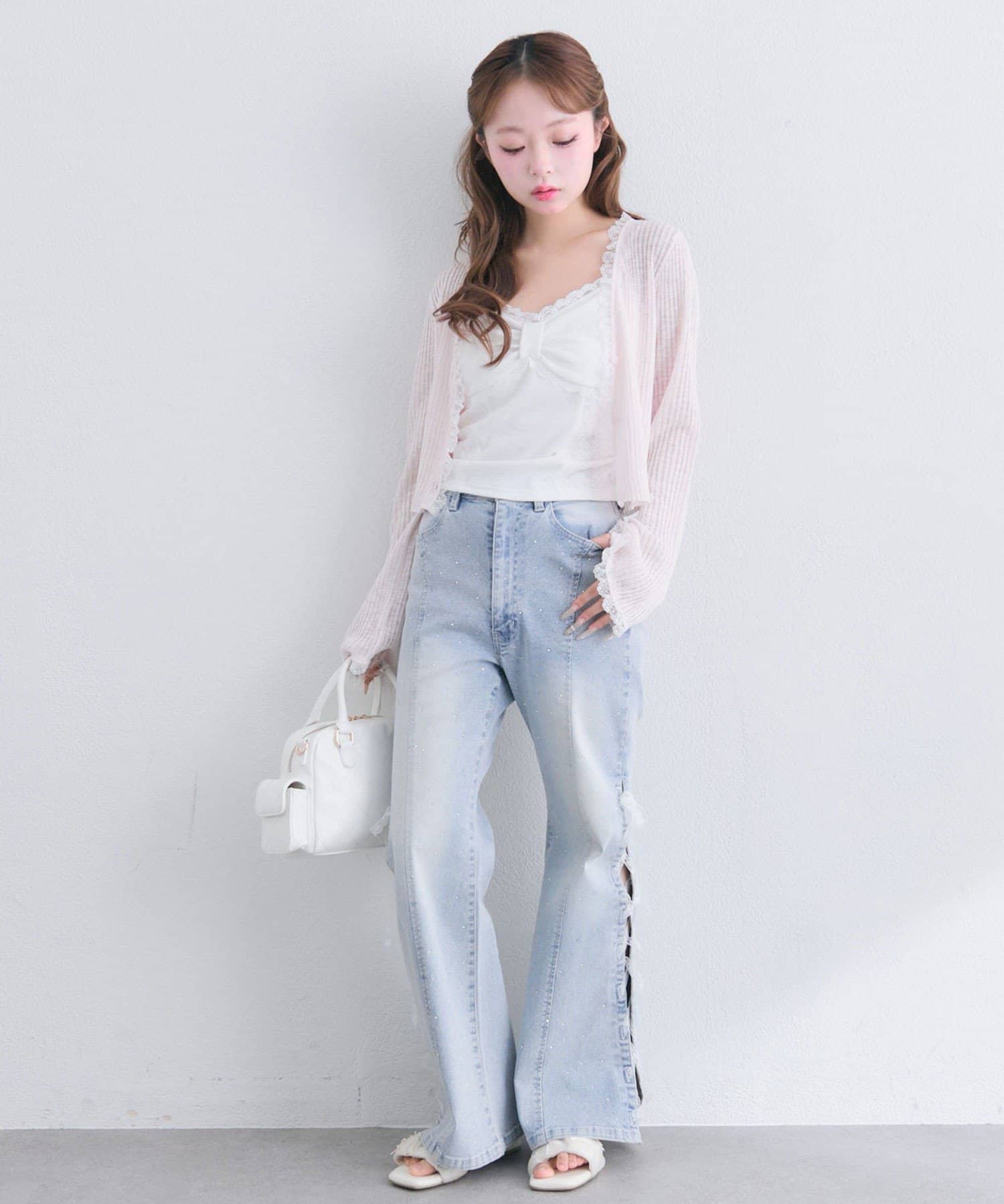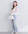 ・デニムパンツと合わせて、甘さを抑えたカジュアルミックスもおすすめ。
