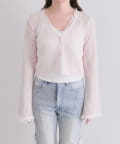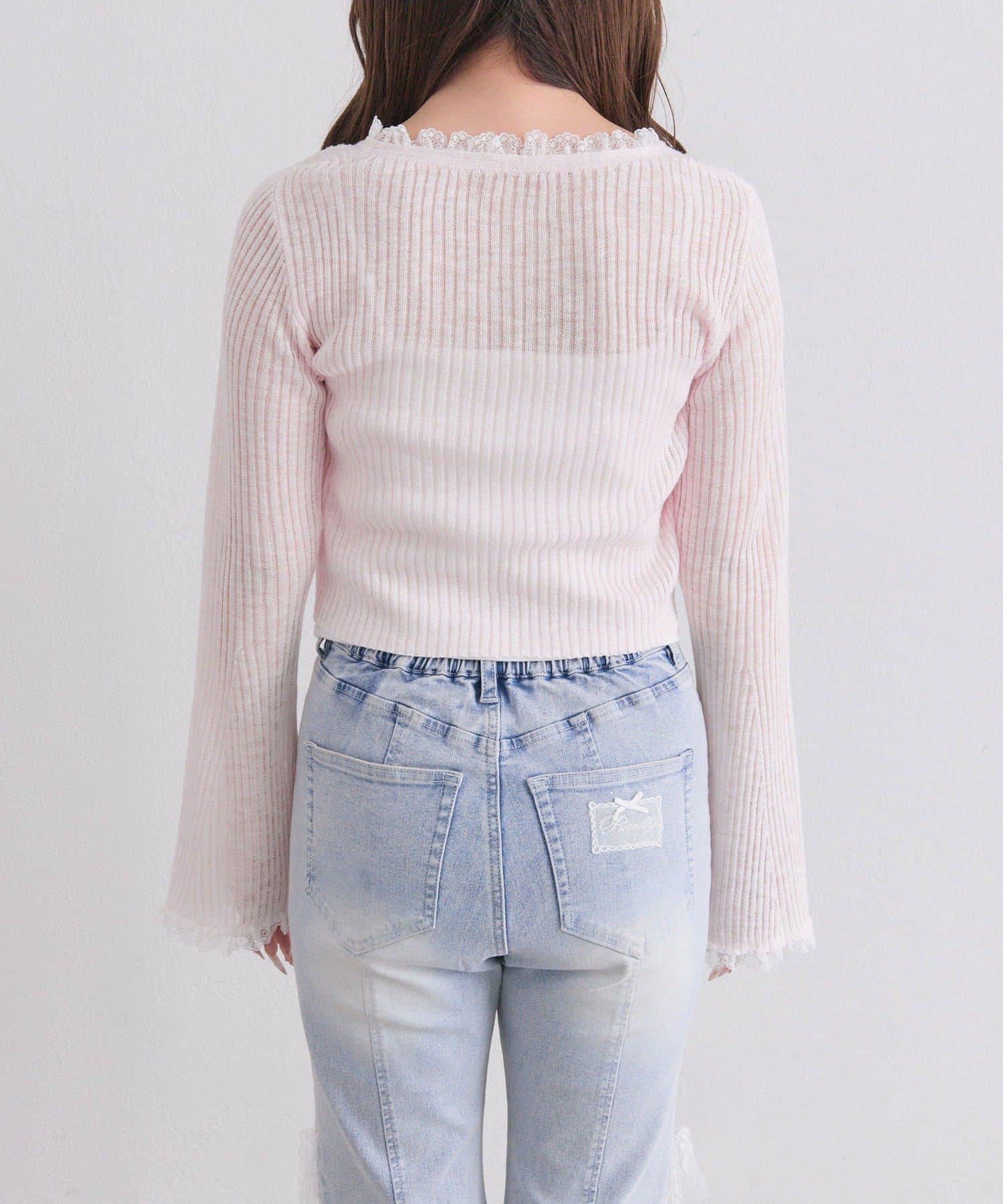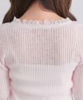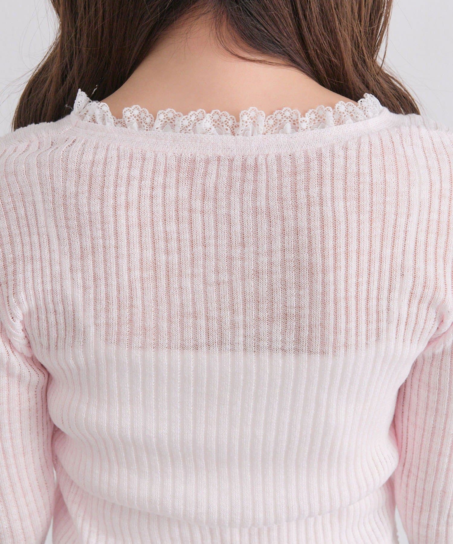 ・衿元やフレアに広がる袖口のレースで、どこから見てもかわいいデザイン。