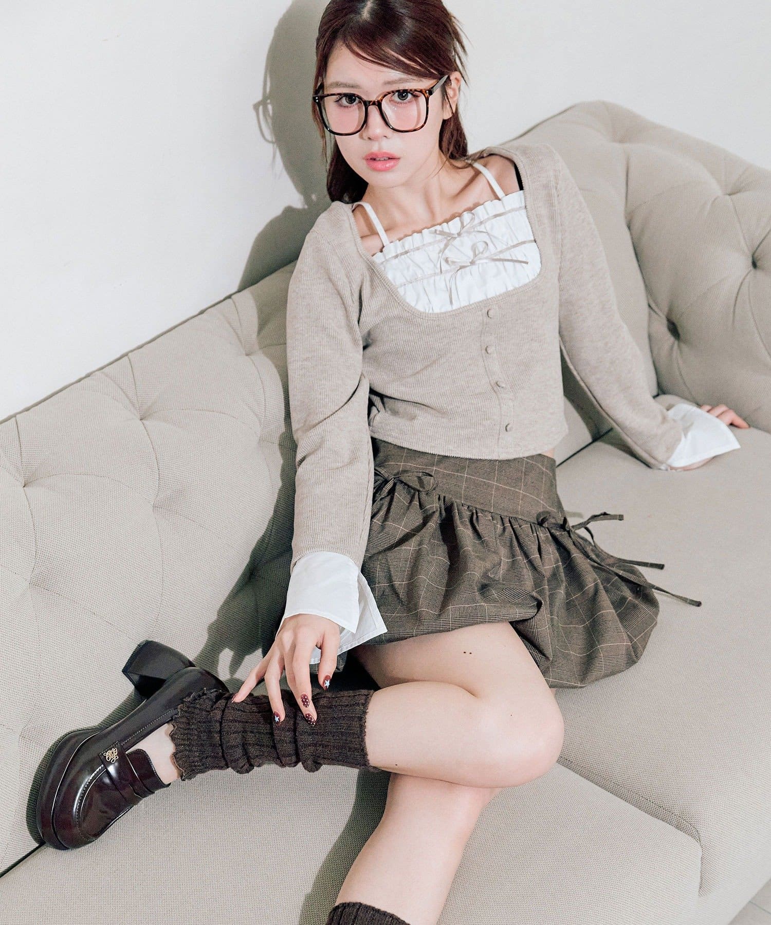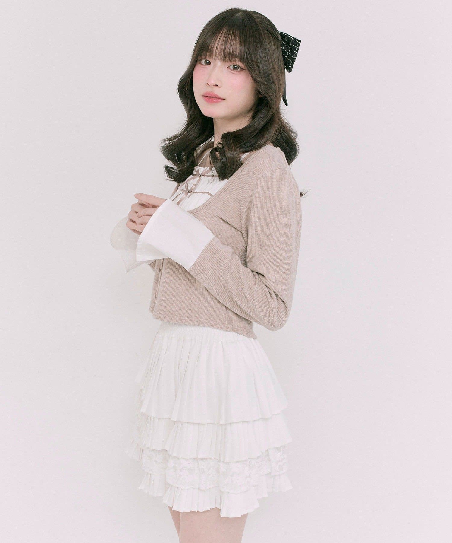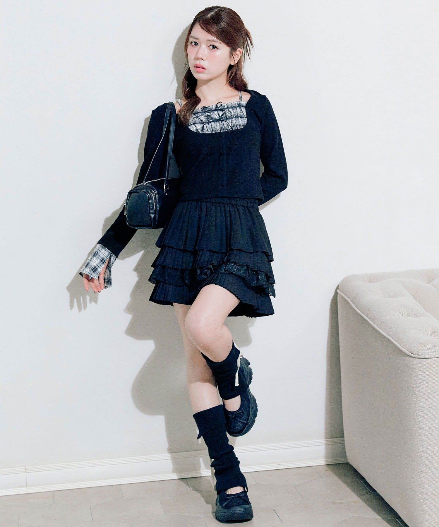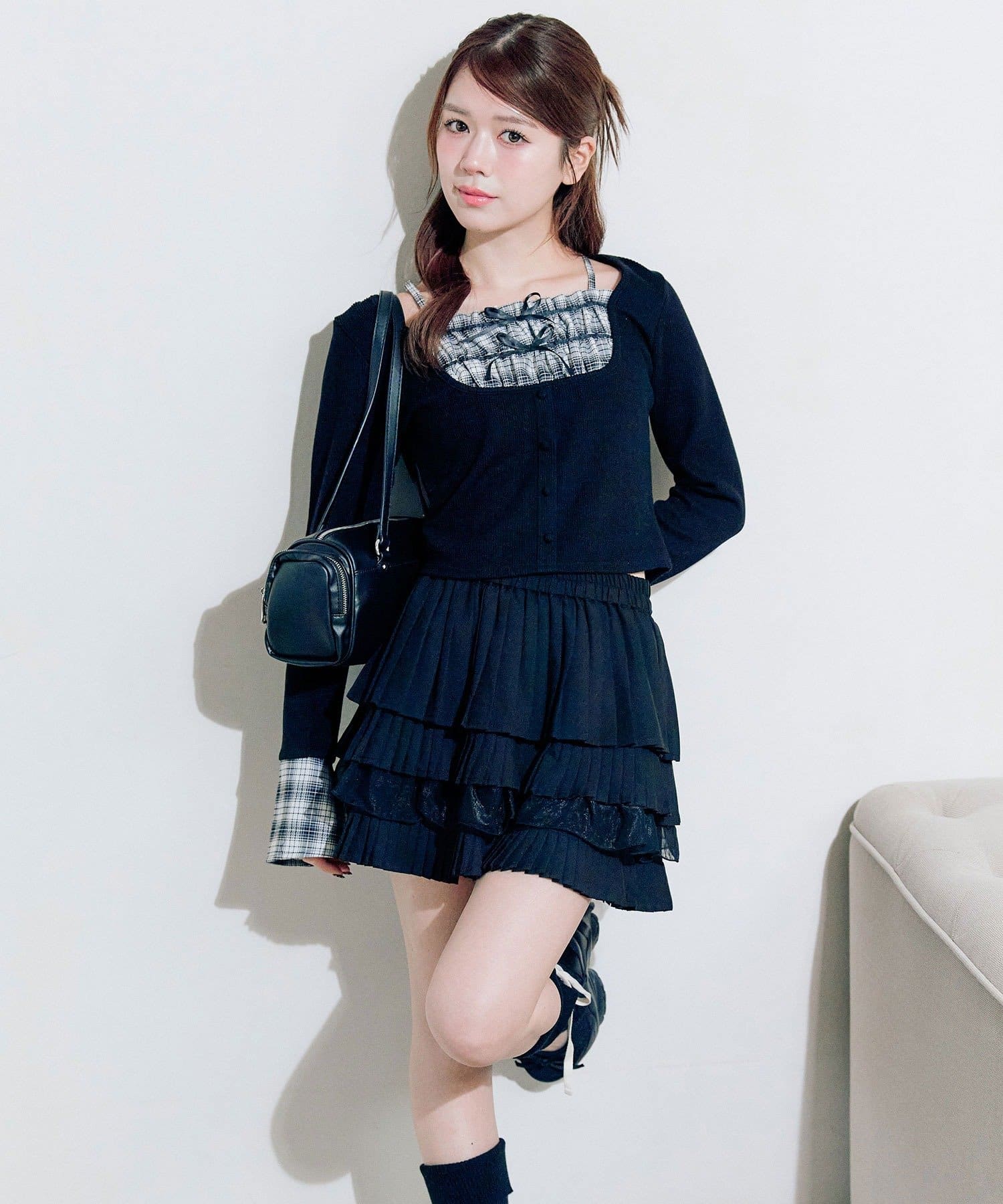 ・プリーツやティアードのミニスカート合わせで、韓国っぽガーリーにまとめるのがおすすめ。