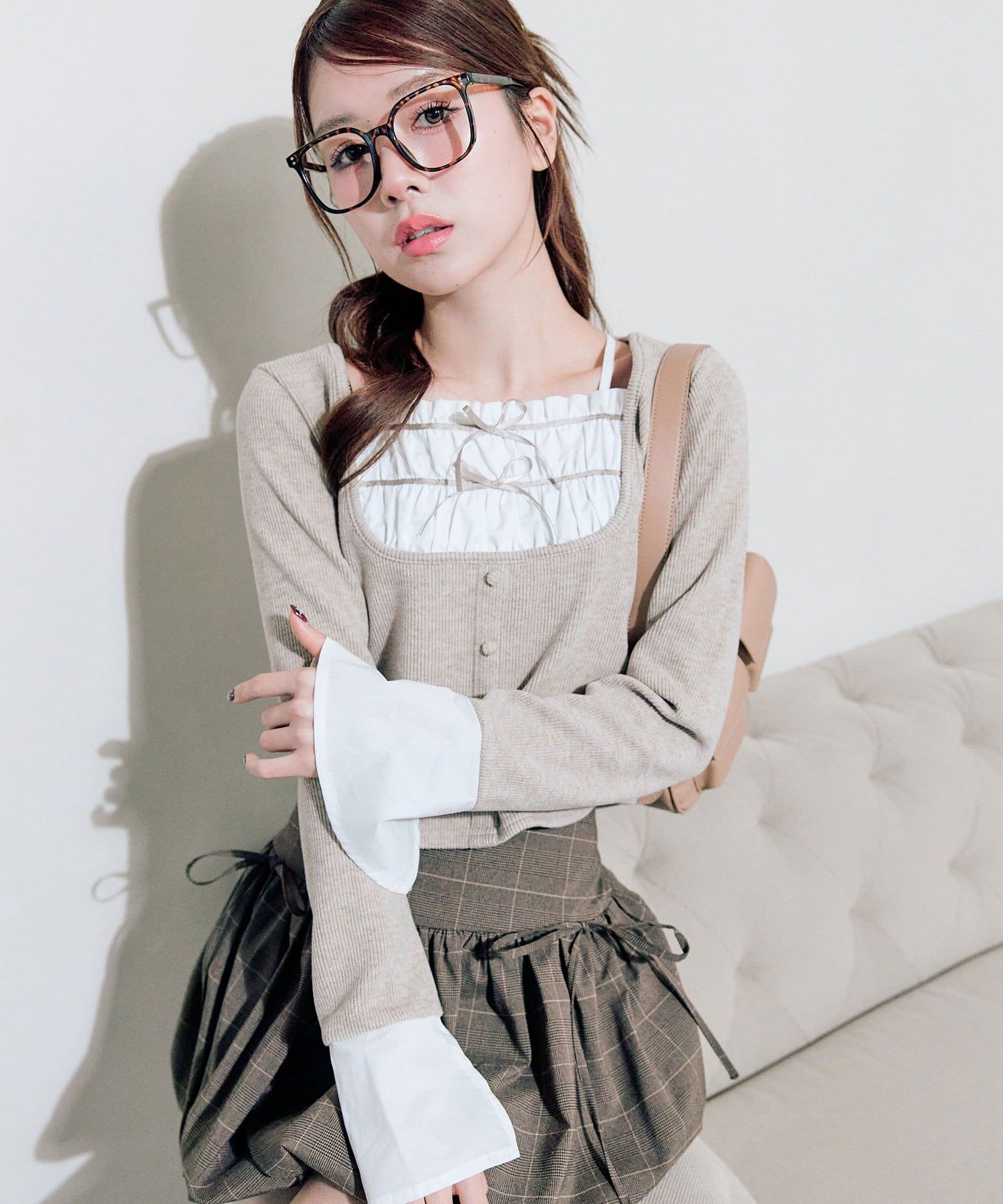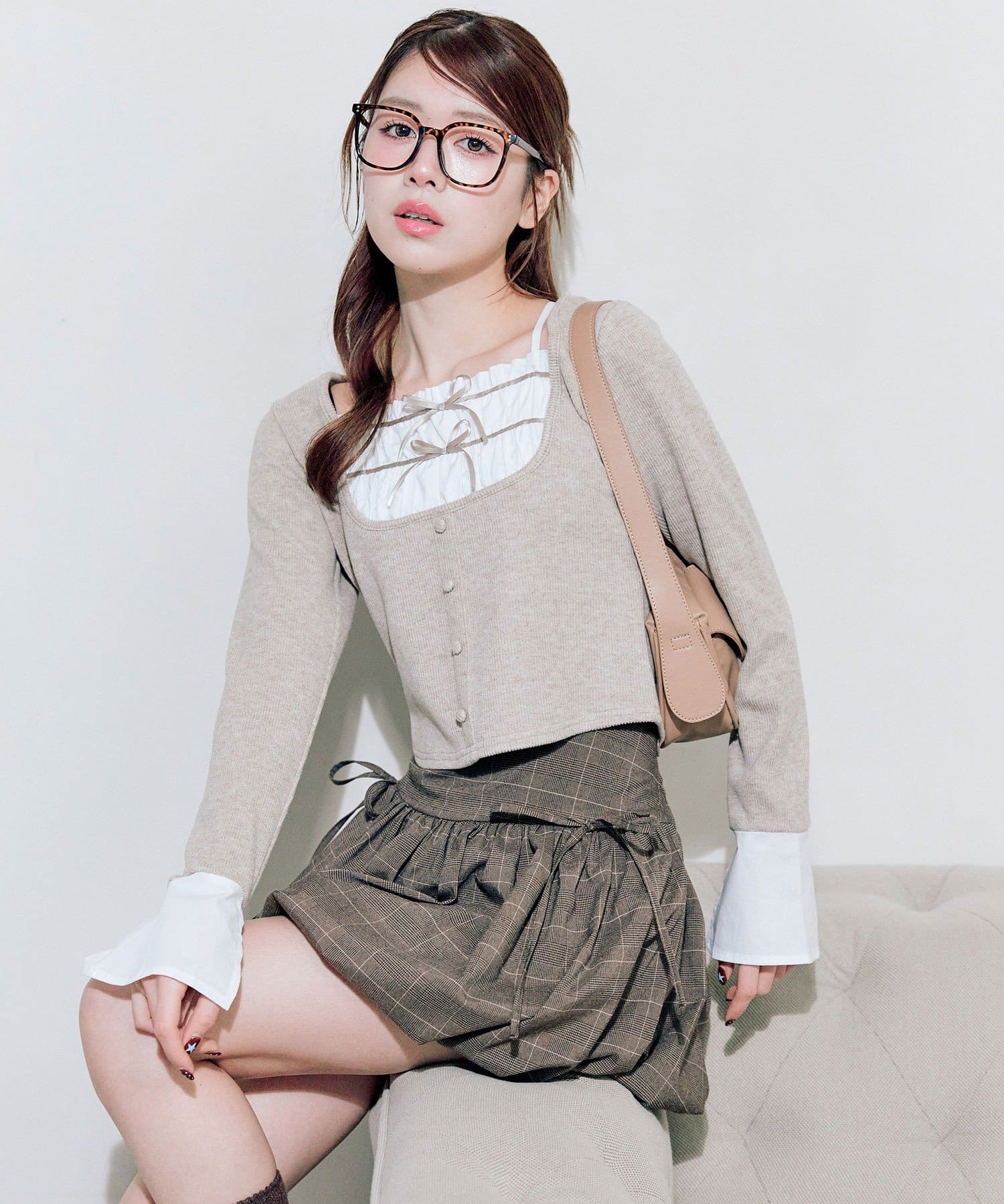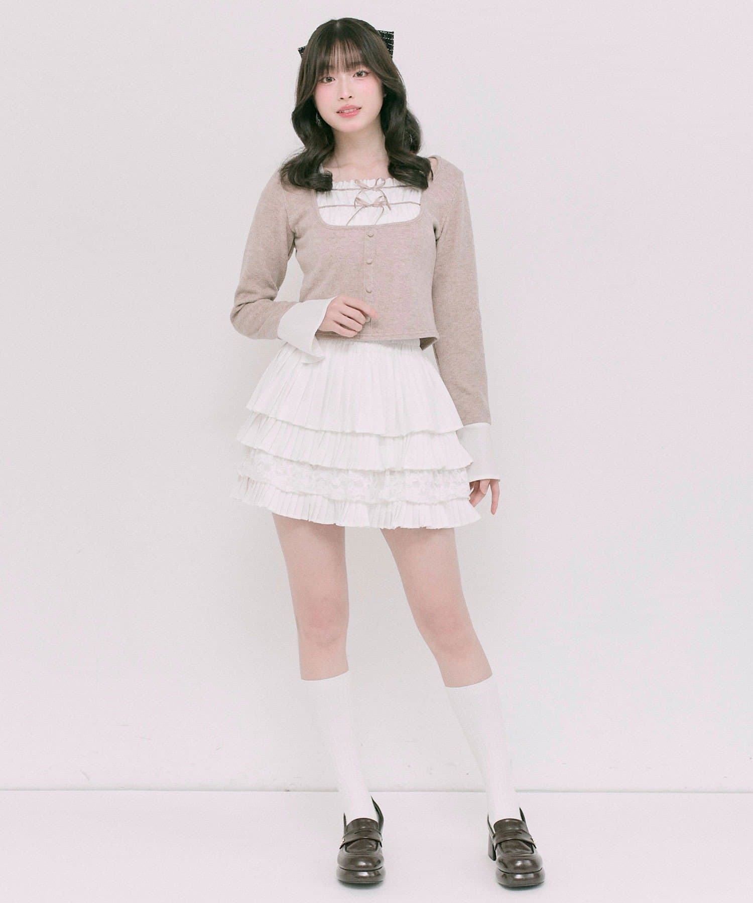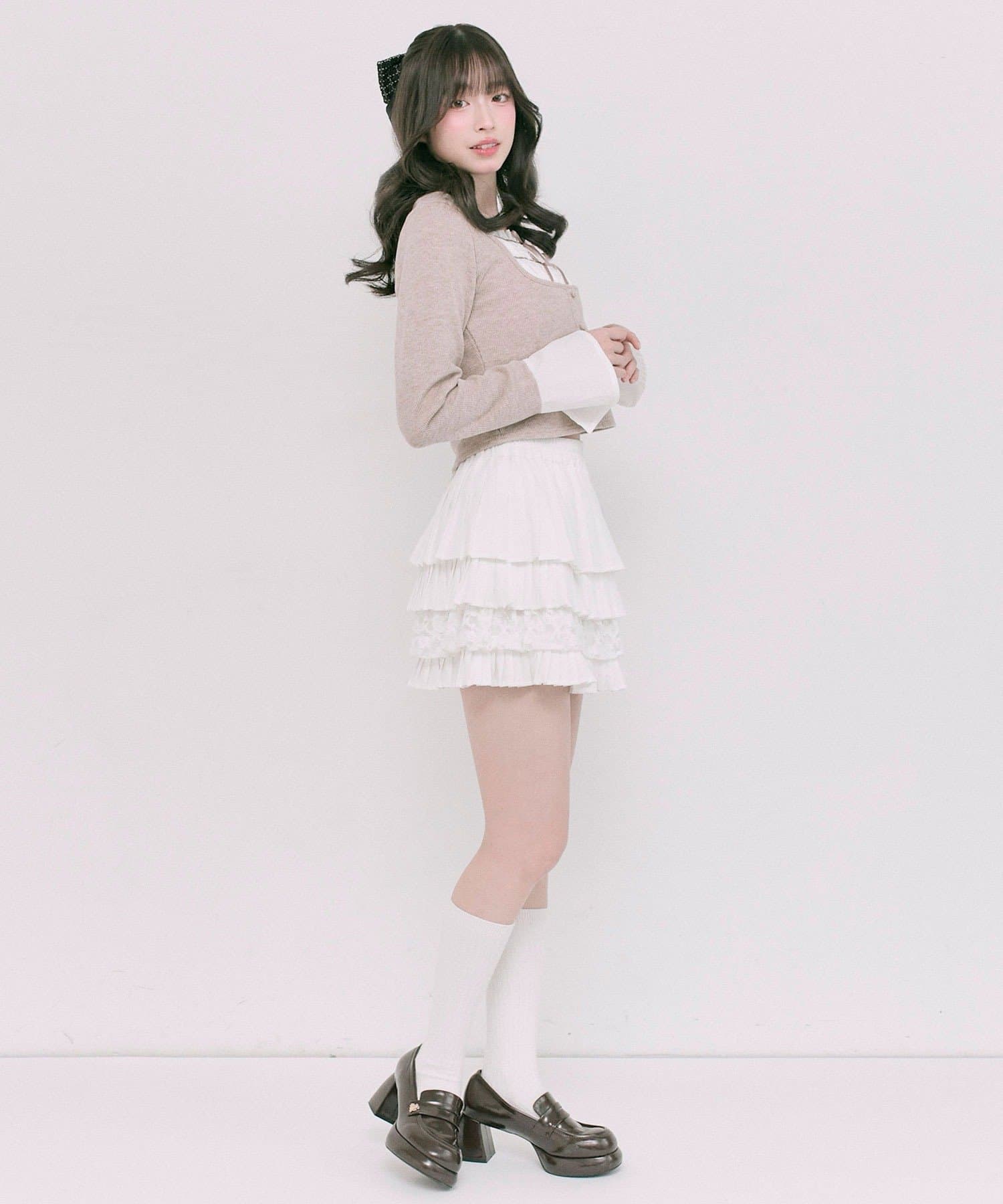 ・プリーツやティアードのミニスカート合わせで、韓国っぽガーリーにまとめるのがおすすめ。