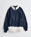 ・カジュアルなスウェット素材に、裾のレースや丸襟でガーリー要素をプラスしたデザイン。