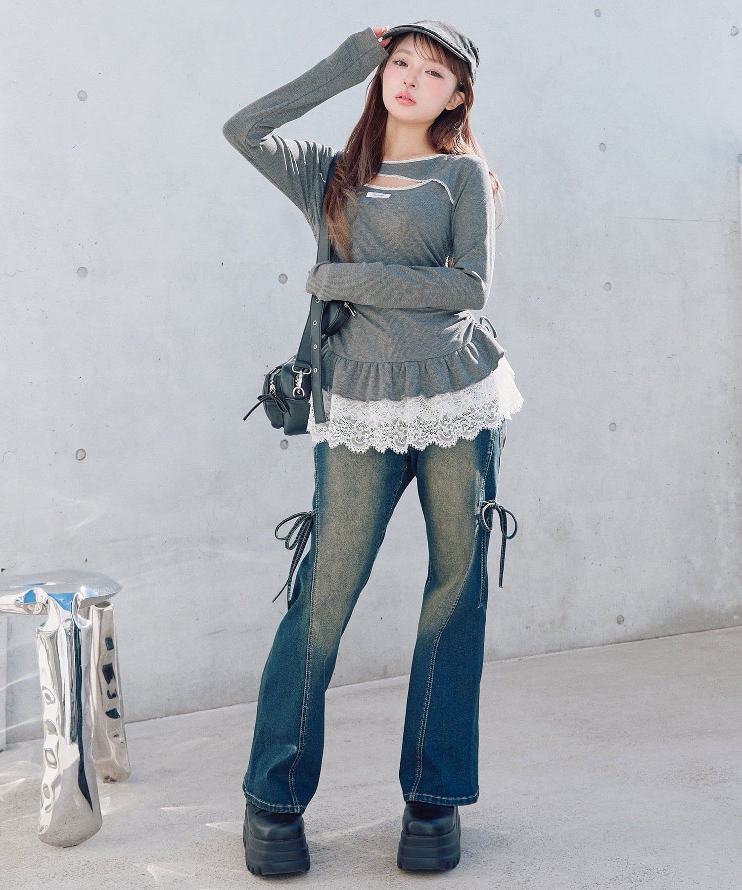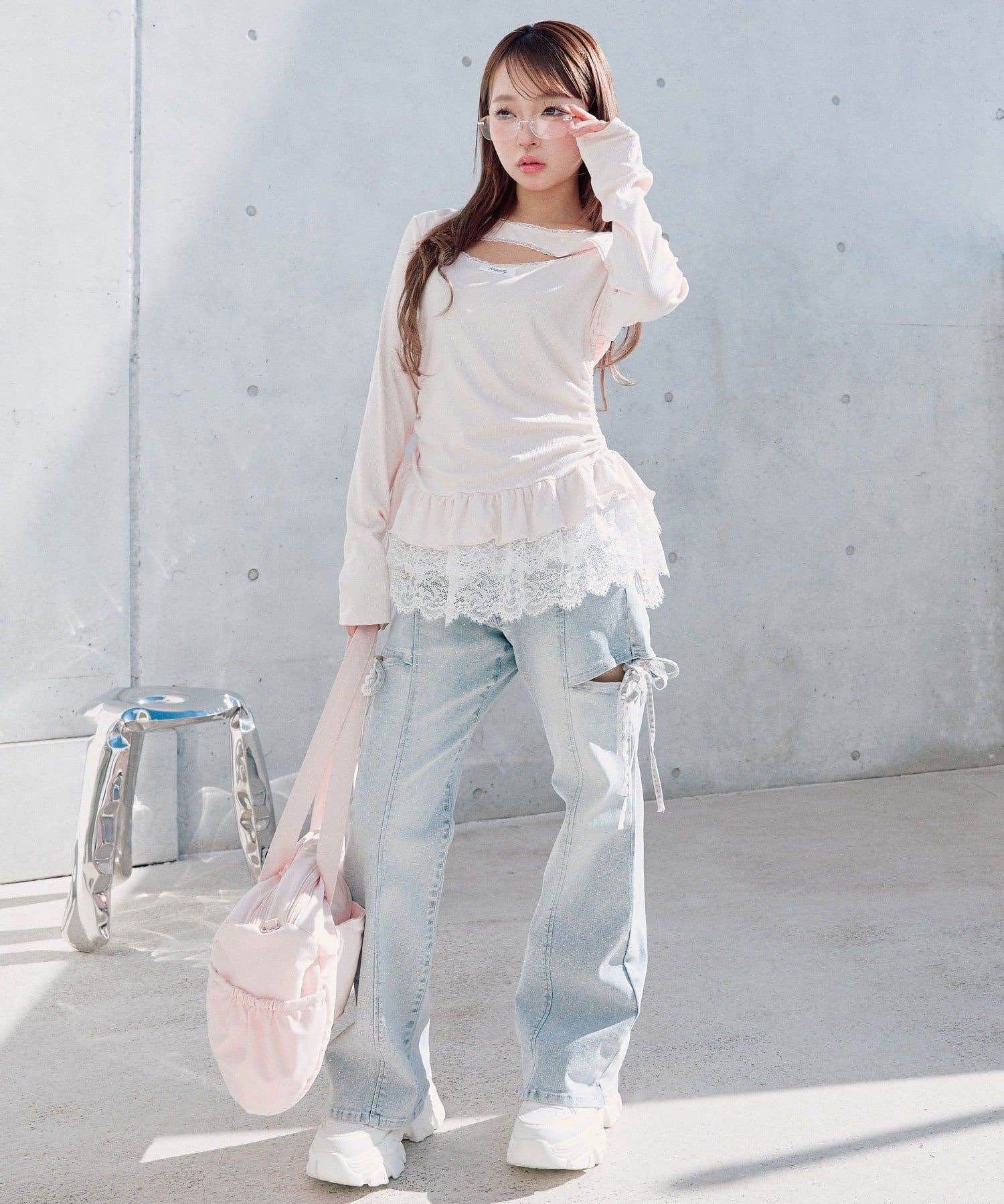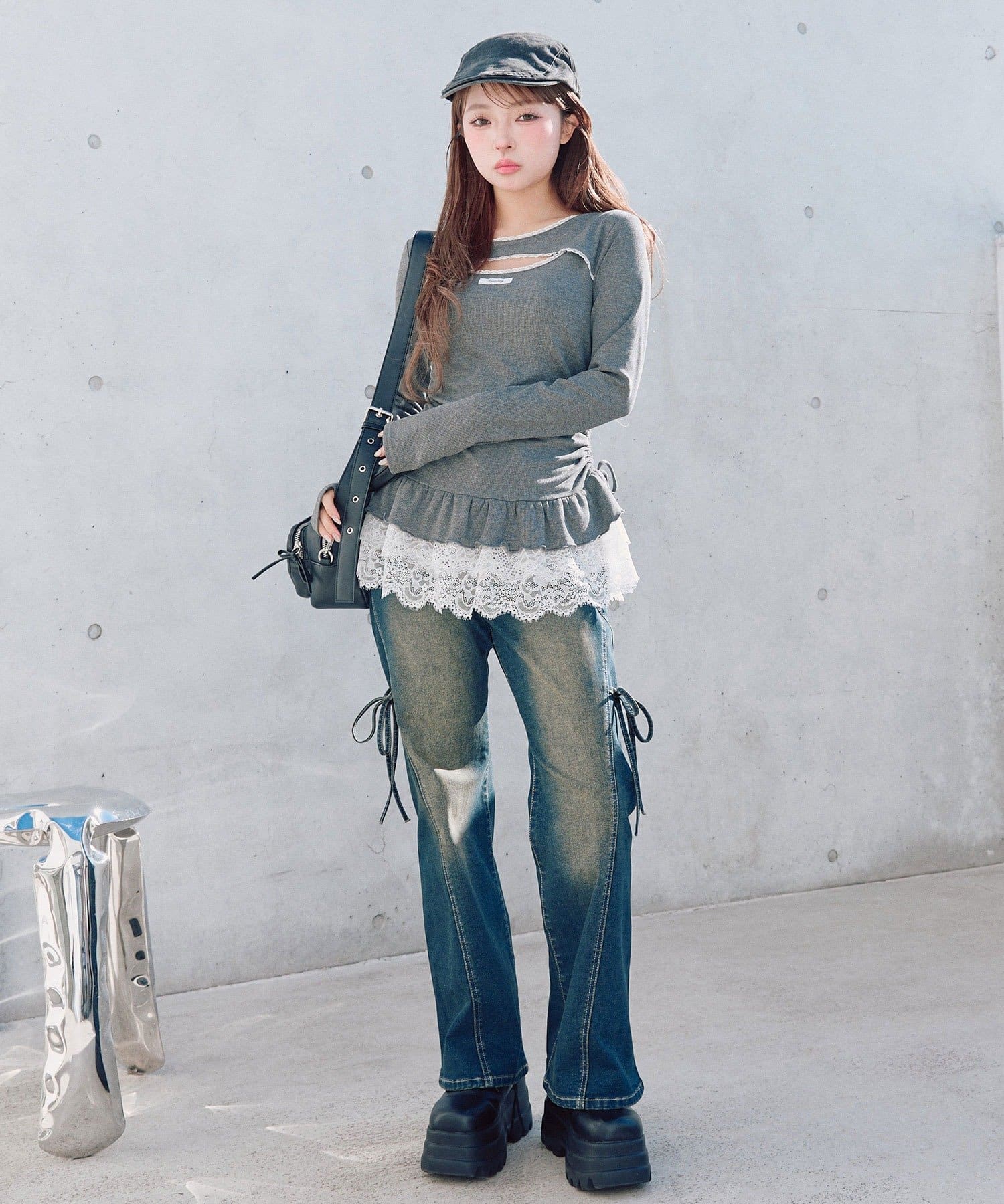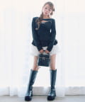 ・ミニボトムを合わせて韓国ガーリーにまとめてもかわいいです。
