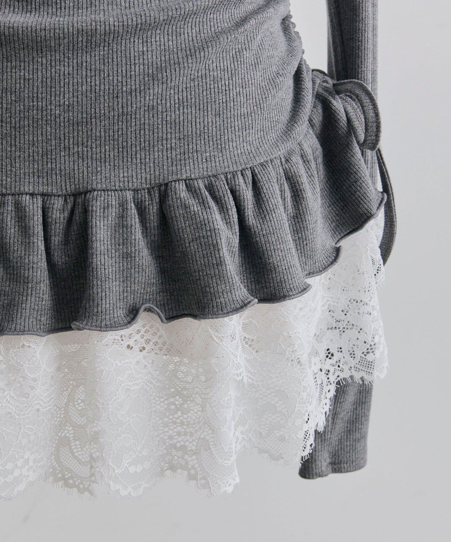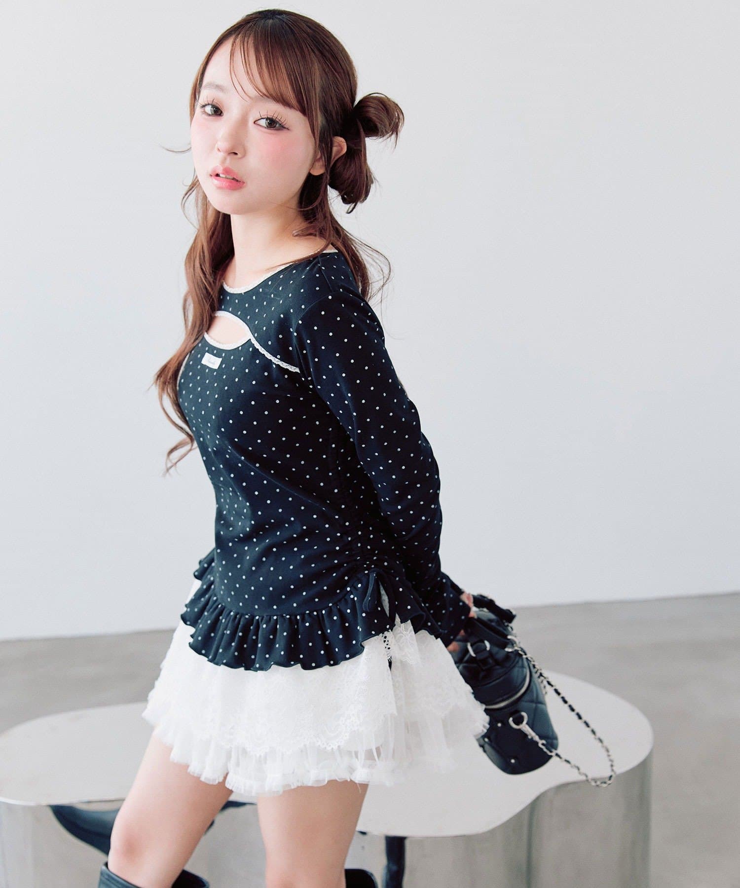 ・裾から覗くレースティアードが、華やかな印象を与えてくれるデザイン。