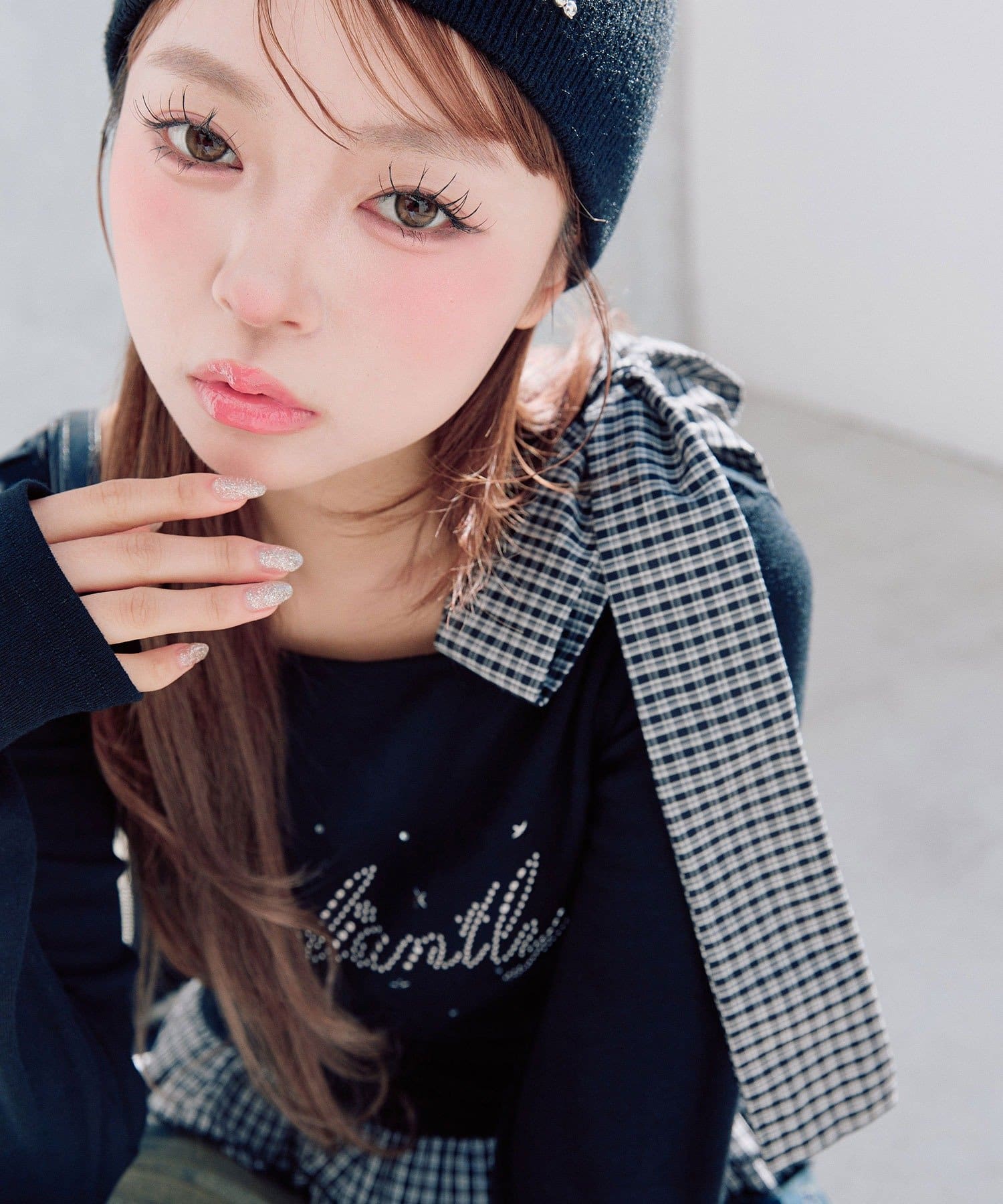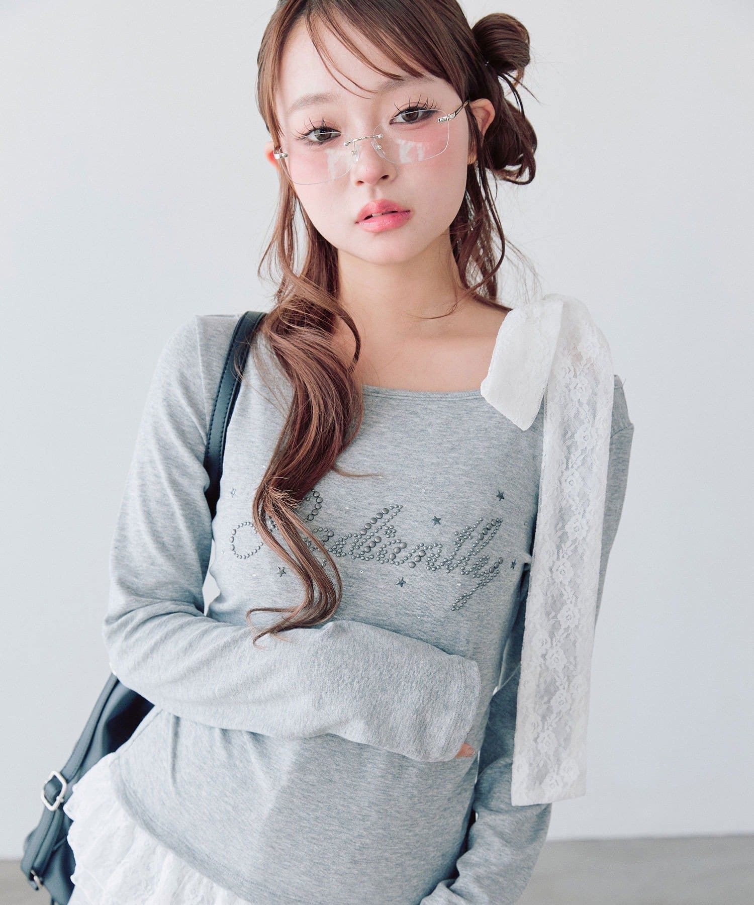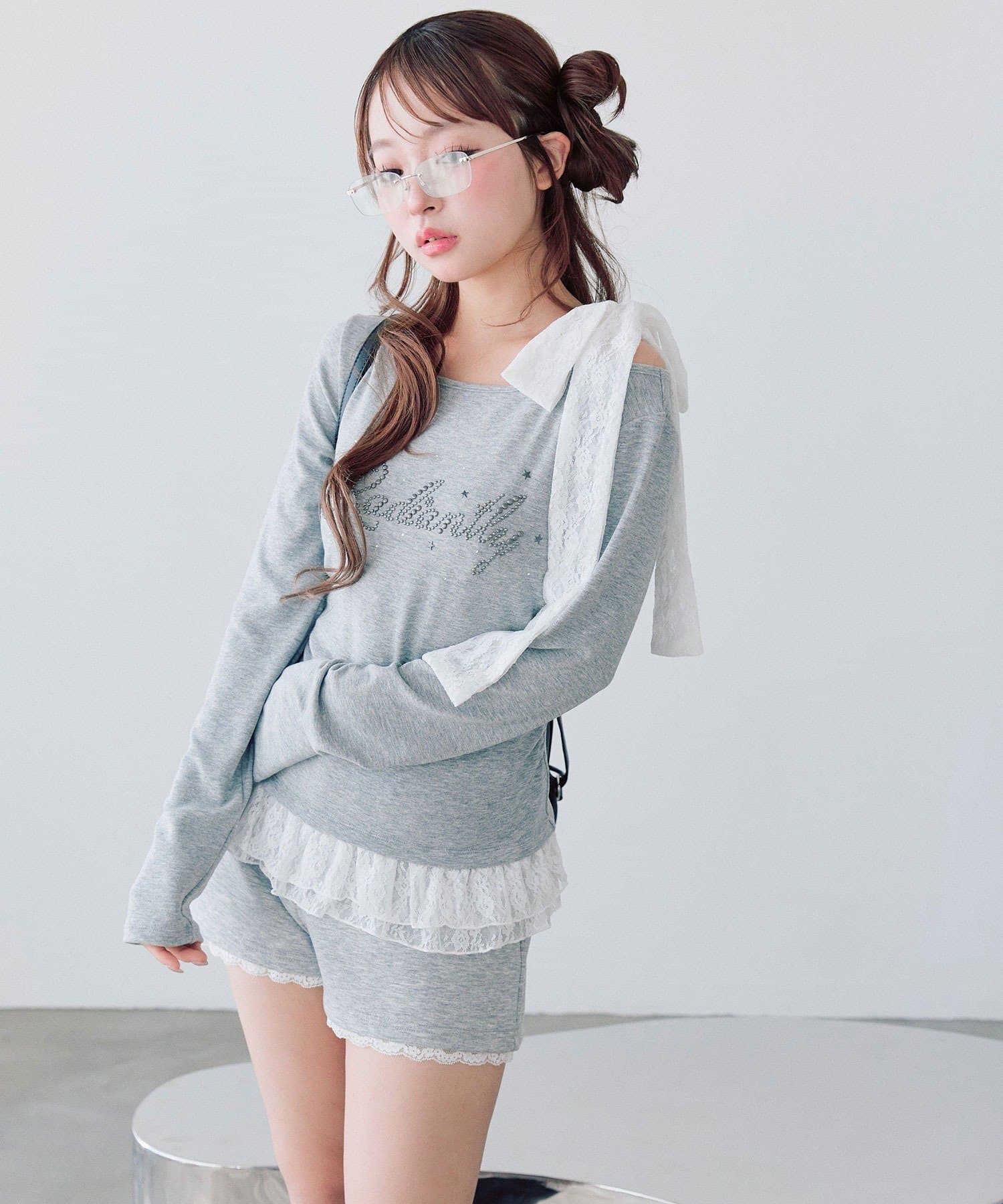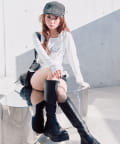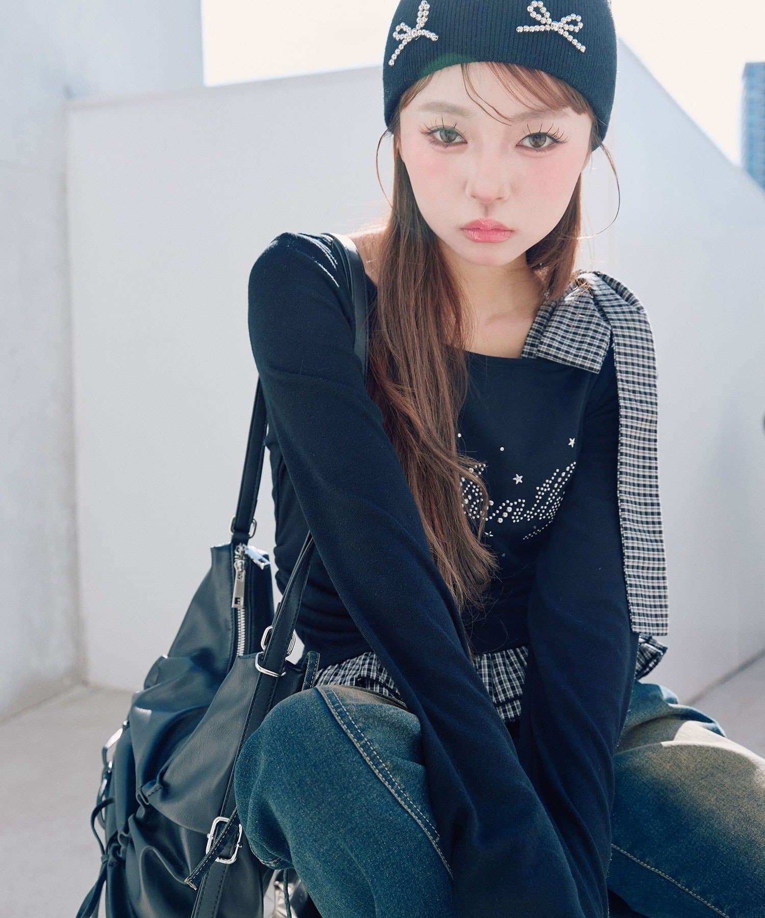 ・ミニボトムを合わせるとガーリーな着こなしになります。