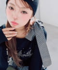 ・大きなチェック柄リボンが、顔周りを華やかに見せてくれるデザイン。